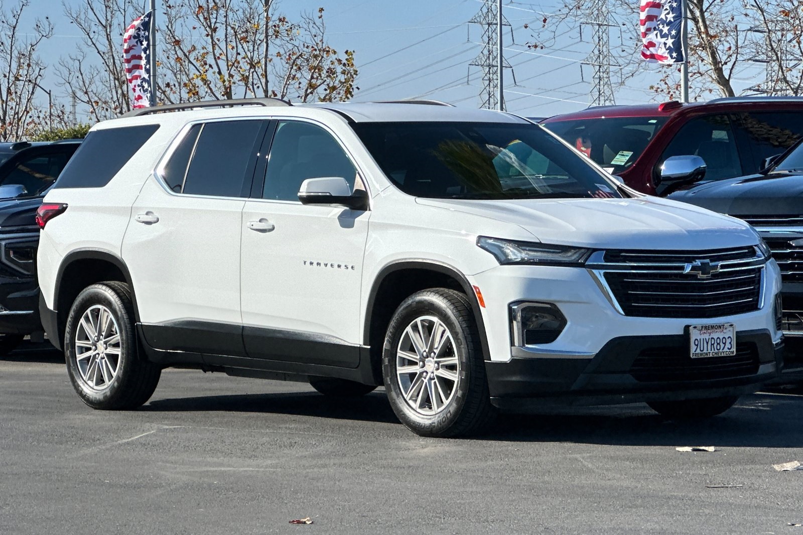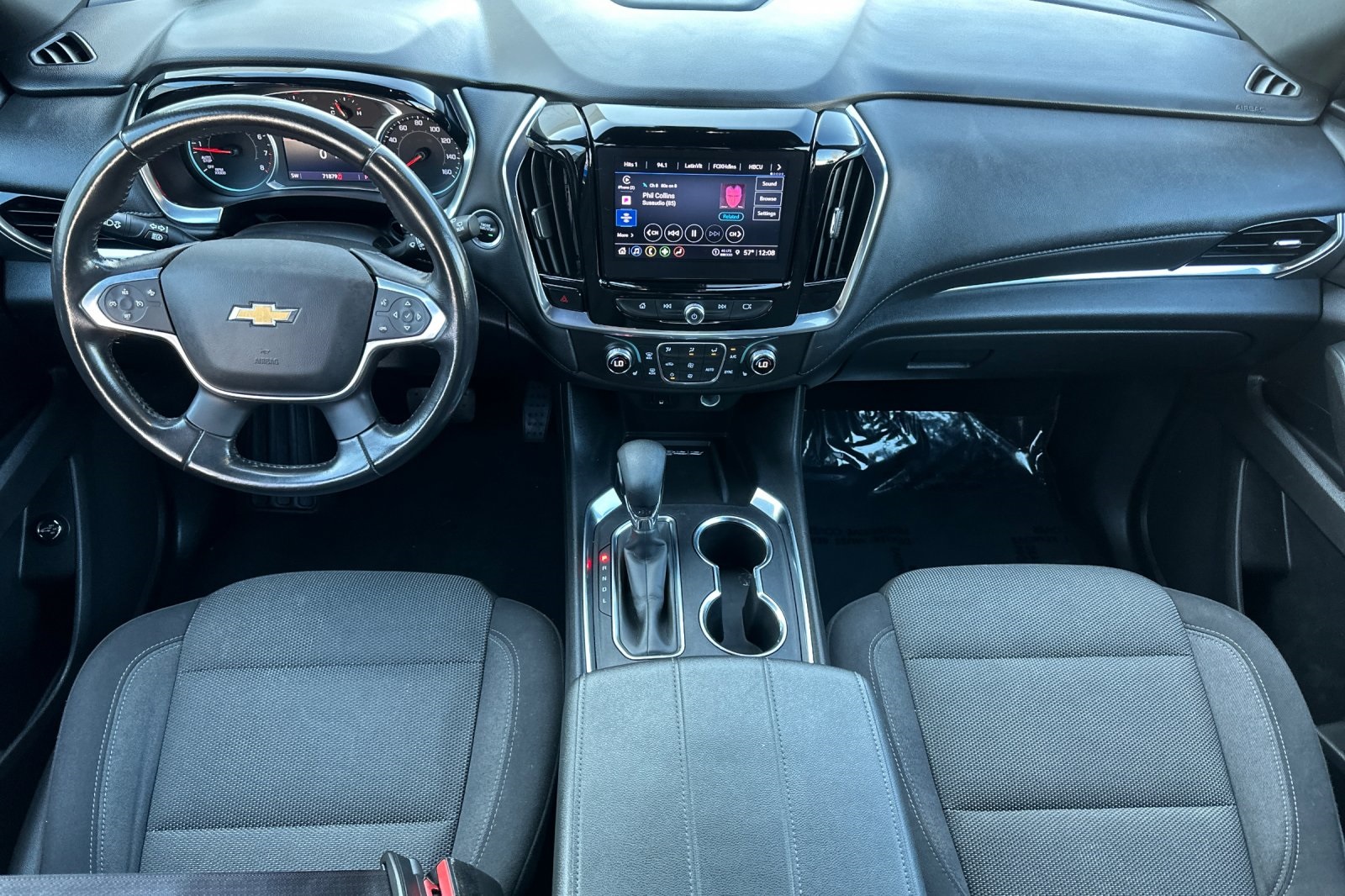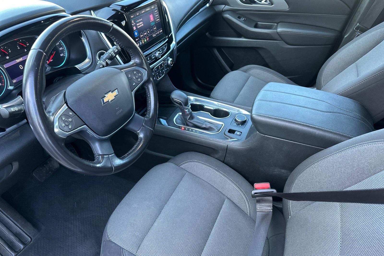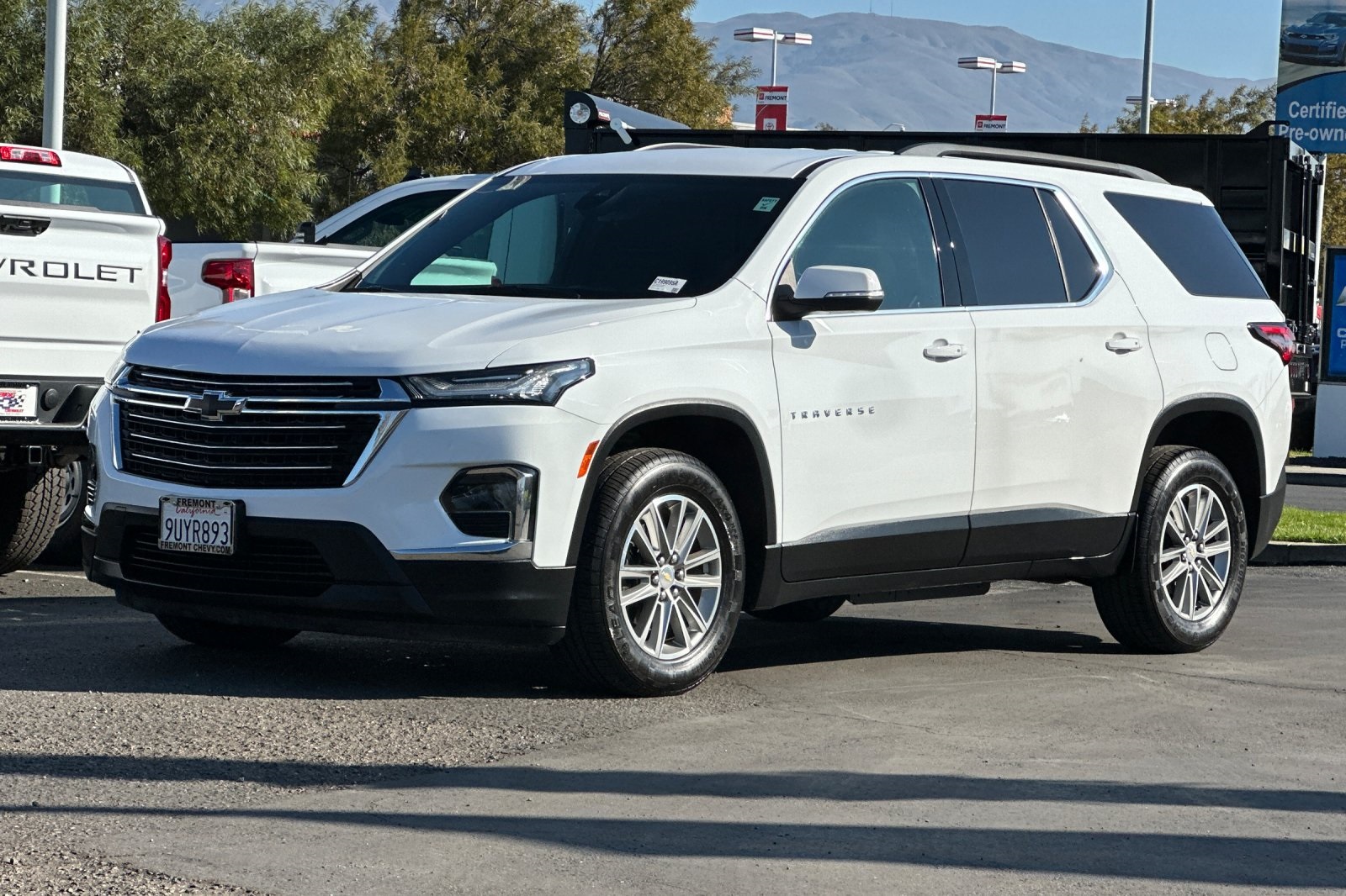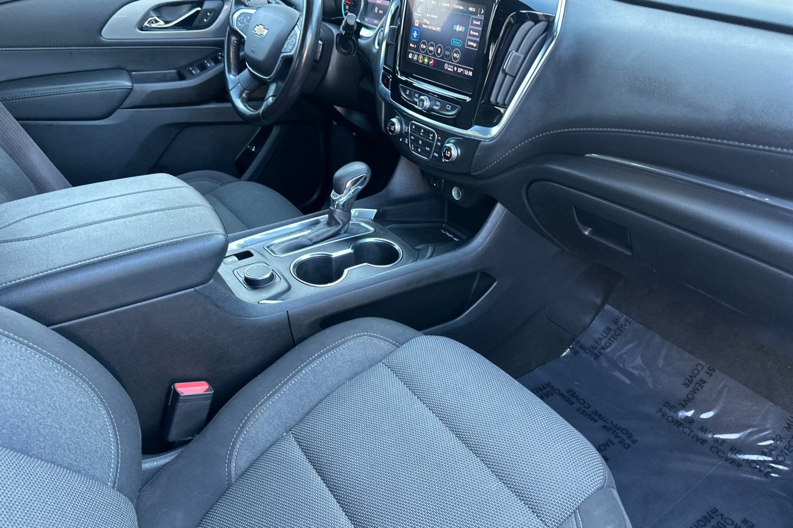 Clean CARFAX. Summit White 2022 Chevrolet Traverse LT 1LT FWD 9-Speed Automatic 3.6L V6 SIDI VVT NON-SMOKER, Backup Camera, Bluetooth, Alloy Wheels, Aluminum Wheels, Climate Package, Heat Package, Light Package, Remote Start, Traverse LT 1LT, 4D Sport Utility, 3.6L V6 SIDI VVT, 9-Speed Automatic, FWD, Summit White, Jet Black w/Premium Cloth Seat Trim, 2-Way Manual Front Passenger Seat Adjuster, 3.49 Axle Ratio, 3rd row seats: split-bench, 4-Wheel Disc Brakes, 4.2" Multi-Color Enhanced Driver Instrument Display, 6 Speakers, 6-Speaker Audio System Feature, 8-Way Power Driver Seat Adjuster, ABS brakes, Air Conditioning, Alloy wheels, AM/FM radio: SiriusXM, Apple CarPlay/Android Auto, Auto High-beam Headlights, Automatic temperature control, Black Roof Rails, Brake assist, Bumpers: body-color, Cargo Package (LPO), Compass, Convenience & Driver Confidence Package, Delay-off headlights, Driver door bin, Driver vanity mirror, Dual front impact airbags, Dual front side impact airbags, Electronic Stability Control, Emergency communication system: OnStar Guidance, Exterior Parking Camera Rear, Four wheel independent suspension, Front & Rear Black Bowtie Emblems (LPO), Front Bucket Seats, Front Center Armrest, Front dual zone A/C, Front License Plate Bracket Mounting Package, Front reading lights, Fully automatic headlights, Heated door mirrors, Heated Driver & Front Passenger Seats, Illuminated entry, Leather steering wheel, Low tire pressure warning, Not Equipped w/Dr & Fr Pass Heated or Ventilated Seats, Occupant sensing airbag, Outside temperature display, Overhead airbag, Overhead console, Panic alarm, Passenger door bin, Passenger vanity mirror, Power door mirrors, Power Driver Lumbar Control, Power driver seat, Power steering, Power windows, Preferred Equipment Group 1LT, Premium Cloth Seat Trim, Radio data system, Radio: Chevrolet Infotainment 3 Plus System, Radio: Chevrolet Infotainment System AM/FM Stereo, Rear air conditioning, Rear Park Assist w/Audible Warning, Rear Power Liftgate, Rear reading lights, Rear window defroster, Rear window wiper, Remote keyless entry, Remote Start, Retractable Cargo Shade, Roof rack: rails only, Security system, SiriusXM Radio, SiriusXM w/360L, Speed control, Speed-sensing steering, Spoiler, Steering wheel mounted audio controls, Tachometer, Telescoping steering wheel, Tilt steering wheel, Traction control, Trip computer, Turn signal indicator mirrors, Universal Home Remote, Variably intermittent wipers, Vertical Cargo Net (LPO), Voltmeter, Wheels: 18" Bright Silver-Painted Aluminum.