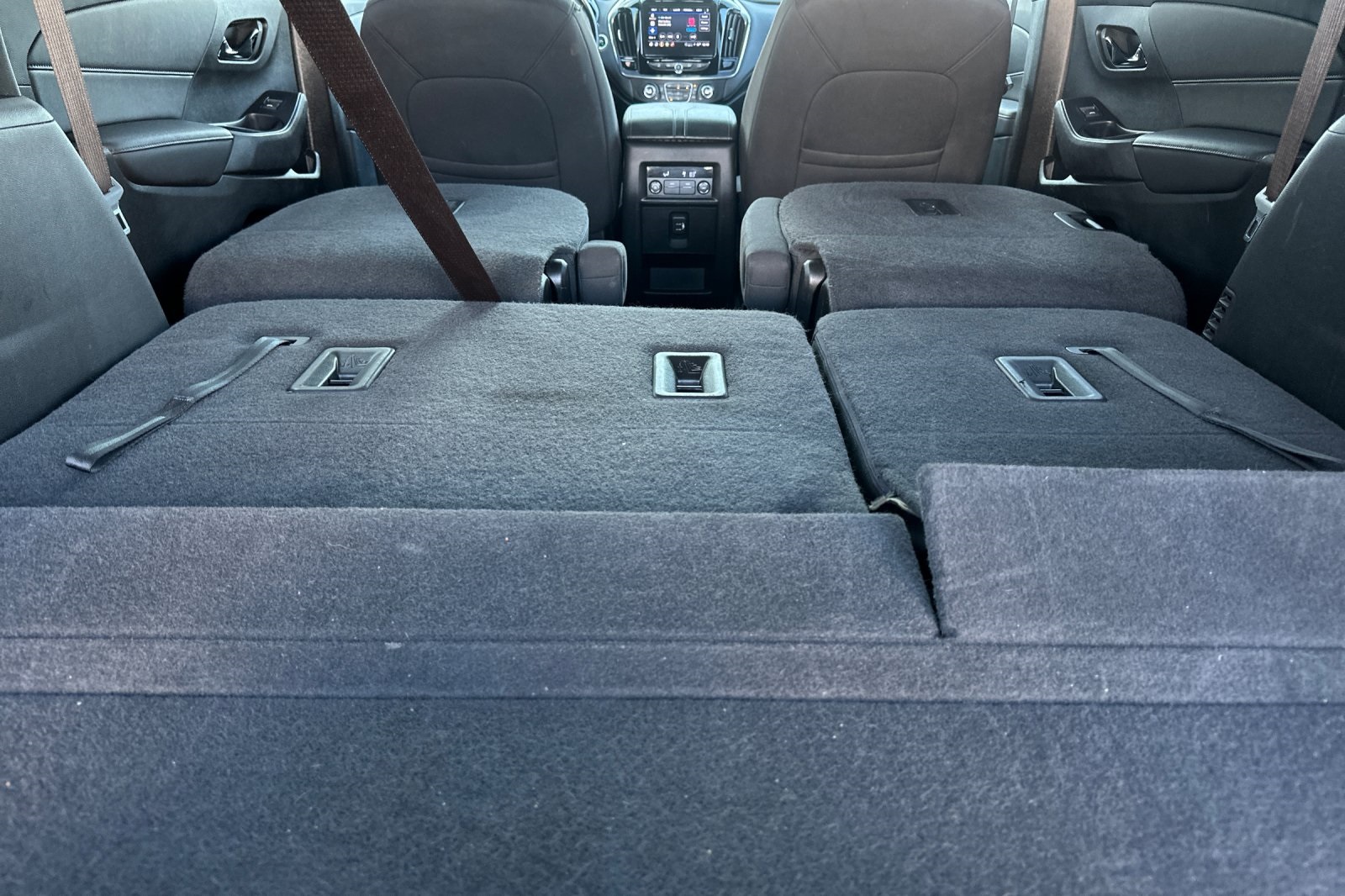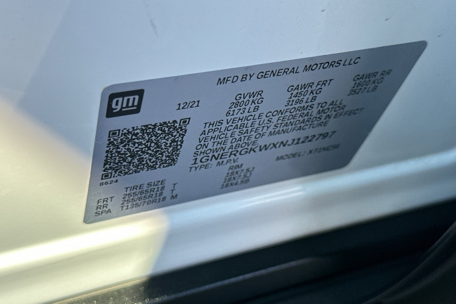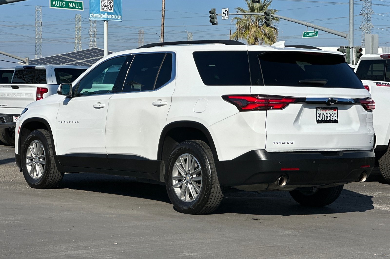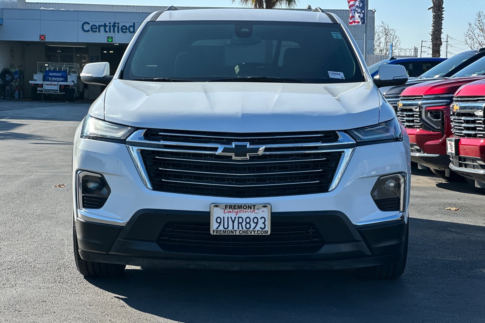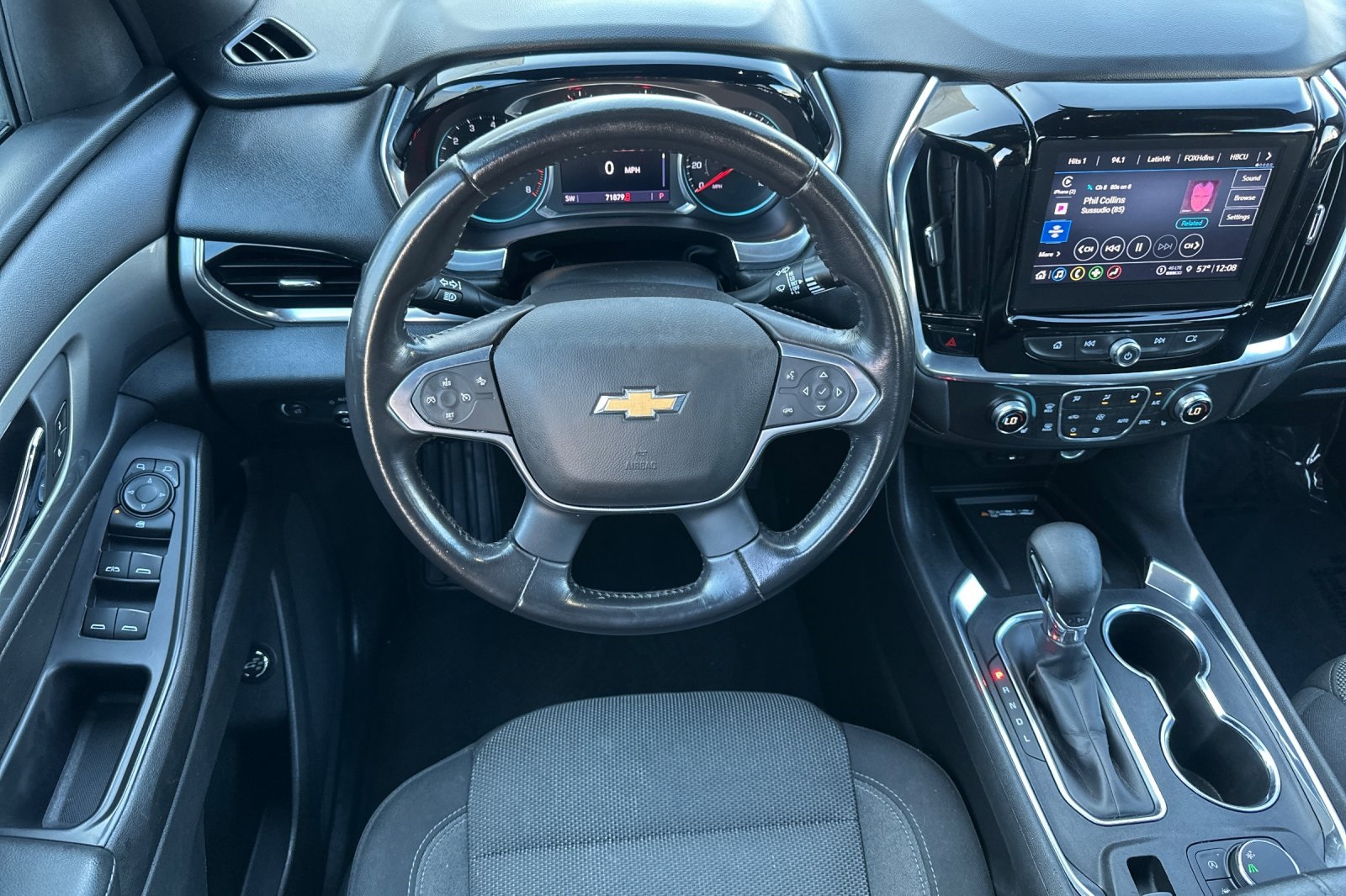 Clean CARFAX. Summit White 2022 Chevrolet Traverse LT 1LT FWD 9-Speed Automatic 3.6L V6 SIDI VVT NON-SMOKER, Backup Camera, Bluetooth, Alloy Wheels, Aluminum Wheels, Climate Package, Heat Package, Light Package, Remote Start, Traverse LT 1LT, 4D Sport Utility, 3.6L V6 SIDI VVT, 9-Speed Automatic, FWD, Summit White, Jet Black w/Premium Cloth Seat Trim, 2-Way Manual Front Passenger Seat Adjuster, 3.49 Axle Ratio, 3rd row seats: split-bench, 4-Wheel Disc Brakes, 4.2" Multi-Color Enhanced Driver Instrument Display, 6 Speakers, 6-Speaker Audio System Feature, 8-Way Power Driver Seat Adjuster, ABS brakes, Air Conditioning, Alloy wheels, AM/FM radio: SiriusXM, Apple CarPlay/Android Auto, Auto High-beam Headlights, Automatic temperature control, Black Roof Rails, Brake assist, Bumpers: body-color, Cargo Package (LPO), Compass, Convenience & Driver Confidence Package, Delay-off headlights, Driver door bin, Driver vanity mirror, Dual front impact airbags, Dual front side impact airbags, Electronic Stability Control, Emergency communication system: OnStar Guidance, Exterior Parking Camera Rear, Four wheel independent suspension, Front & Rear Black Bowtie Emblems (LPO), Front Bucket Seats, Front Center Armrest, Front dual zone A/C, Front License Plate Bracket Mounting Package, Front reading lights, Fully automatic headlights, Heated door mirrors, Heated Driver & Front Passenger Seats, Illuminated entry, Leather steering wheel, Low tire pressure warning, Not Equipped w/Dr & Fr Pass Heated or Ventilated Seats, Occupant sensing airbag, Outside temperature display, Overhead airbag, Overhead console, Panic alarm, Passenger door bin, Passenger vanity mirror, Power door mirrors, Power Driver Lumbar Control, Power driver seat, Power steering, Power windows, Preferred Equipment Group 1LT, Premium Cloth Seat Trim, Radio data system, Radio: Chevrolet Infotainment 3 Plus System, Radio: Chevrolet Infotainment System AM/FM Stereo, Rear air conditioning, Rear Park Assist w/Audible Warning, Rear Power Liftgate, Rear reading lights, Rear window defroster, Rear window wiper, Remote keyless entry, Remote Start, Retractable Cargo Shade, Roof rack: rails only, Security system, SiriusXM Radio, SiriusXM w/360L, Speed control, Speed-sensing steering, Spoiler, Steering wheel mounted audio controls, Tachometer, Telescoping steering wheel, Tilt steering wheel, Traction control, Trip computer, Turn signal indicator mirrors, Universal Home Remote, Variably intermittent wipers, Vertical Cargo Net (LPO), Voltmeter, Wheels: 18" Bright Silver-Painted Aluminum.