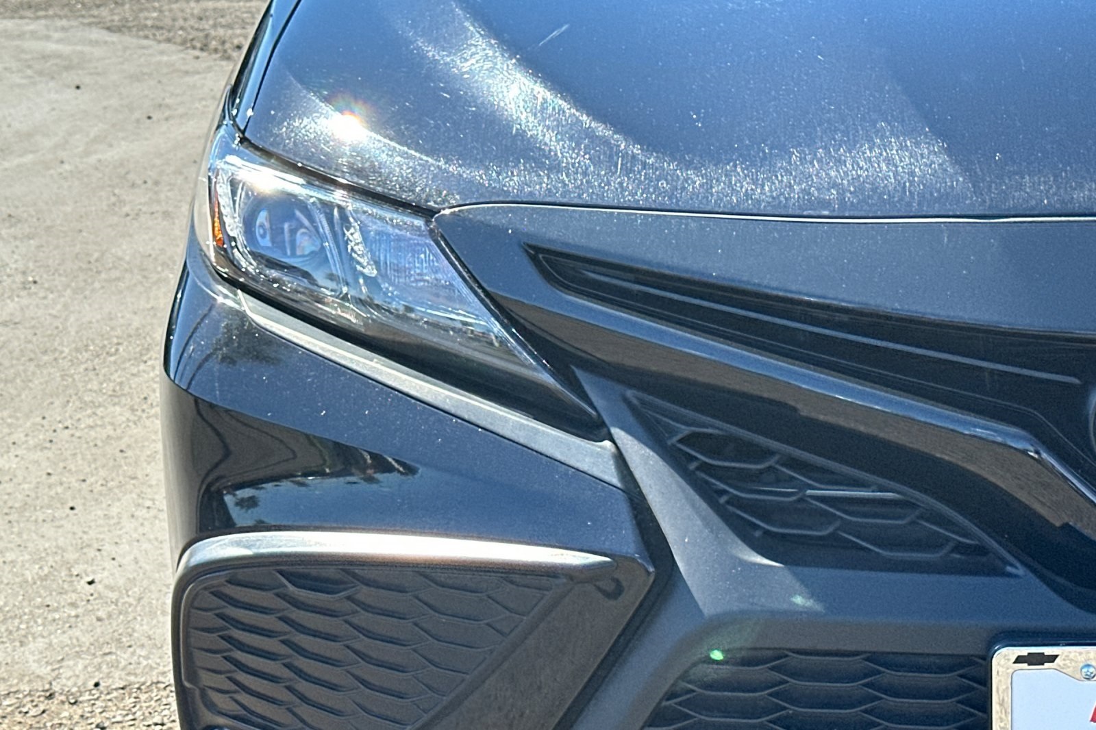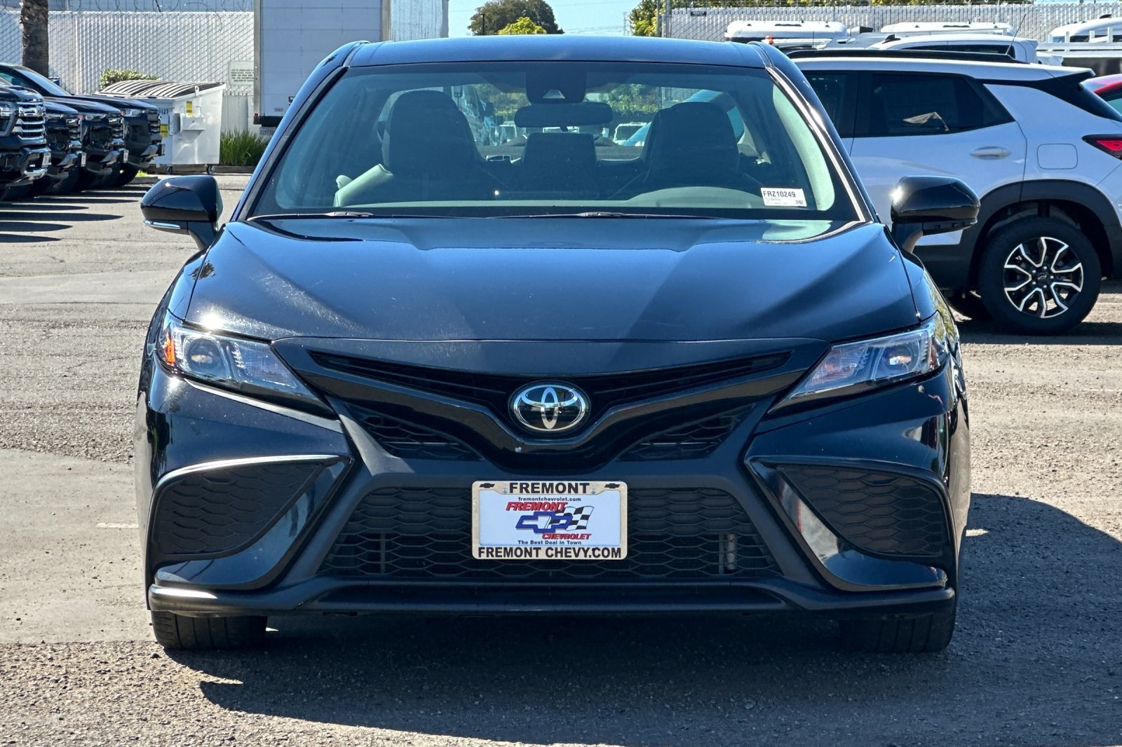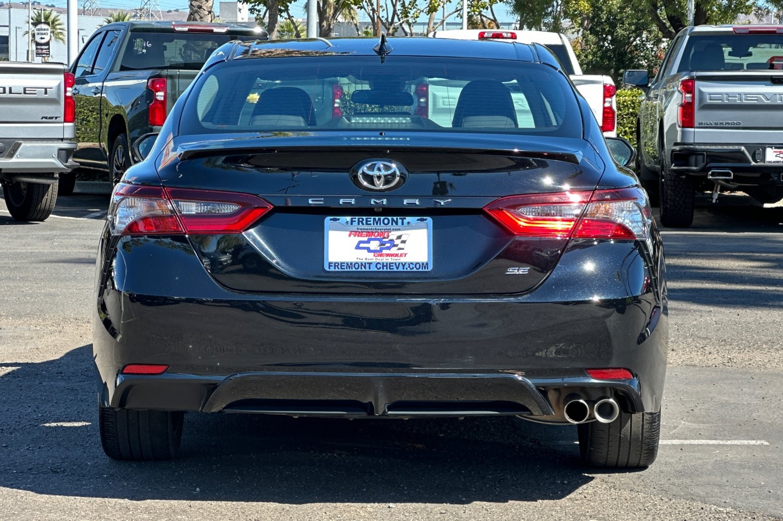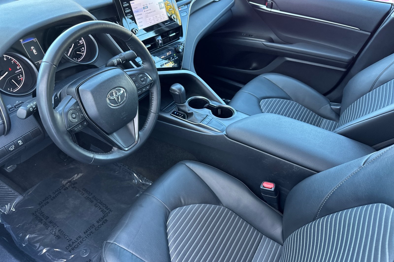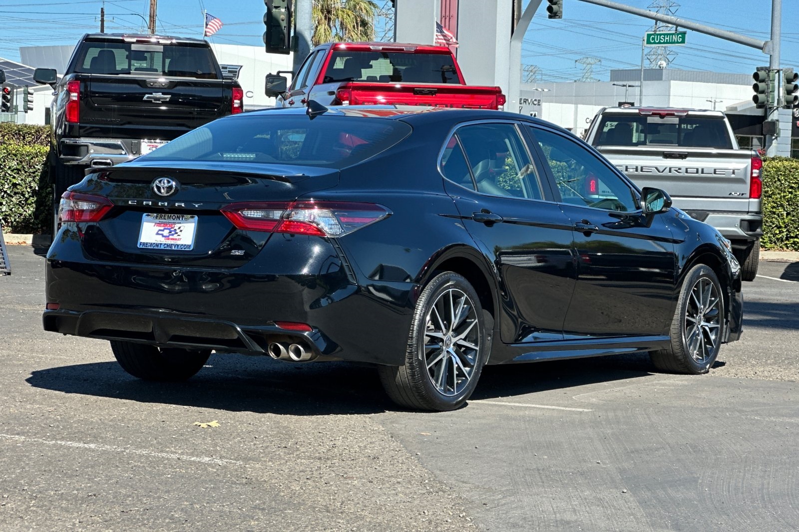 CARFAX One-Owner. Clean CARFAX. Midnight Black Metallic 2024 Toyota Camry SE FWD 8-Speed Automatic 2.5L I4 DOHC 16V CARFAX ONE OWNER, NON-SMOKER, Alloy Wheels, Aluminum Wheels, Light Package, Power Mirror Package, Power Package, Camry SE, 4D Sedan, 2.5L I4 DOHC 16V, 8-Speed Automatic, FWD, Midnight Black Metallic, Black w/Fabric Seat Trim, 18" x 8J Alloy Wheels, 4-Wheel Disc Brakes, 6 Speakers, ABS brakes, Air Conditioning, Alloy wheels, AM/FM radio: SiriusXM, Apple CarPlay/Android Auto, Auto High-beam Headlights, Automatic temperature control, Brake assist, Bumpers: body-color, Delay-off headlights, Driver door bin, Driver vanity mirror, Dual front impact airbags, Dual front side impact airbags, Electronic Stability Control, Emergency communication system: Safety Connect (1-year trial), Exterior Parking Camera Rear, Four wheel independent suspension, Front Bucket Seats, Front Center Armrest, Front dual zone A/C, Front reading lights, Fully automatic headlights, Heated door mirrors, Illuminated entry, Knee airbag, Leather steering wheel, Low tire pressure warning, Occupant sensing airbag, Outside temperature display, Overhead airbag, Overhead console, Panic alarm, Passenger door bin, Passenger vanity mirror, Power door mirrors, Power driver seat, Power steering, Power windows, Radio data system, Radio: Audio, Rear seat center armrest, Rear side impact airbag, Rear window defroster, Remote keyless entry, Security system, Speed control, Speed-sensing steering, Split folding rear seat, Spoiler, Sport SofTex Seat Trim w/Fabric Inserts, Steering wheel mounted audio controls, Tachometer, Telescoping steering wheel, Tilt steering wheel, Traction control, Trip computer, Turn signal indicator mirrors.