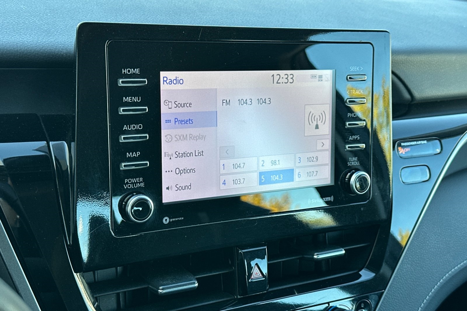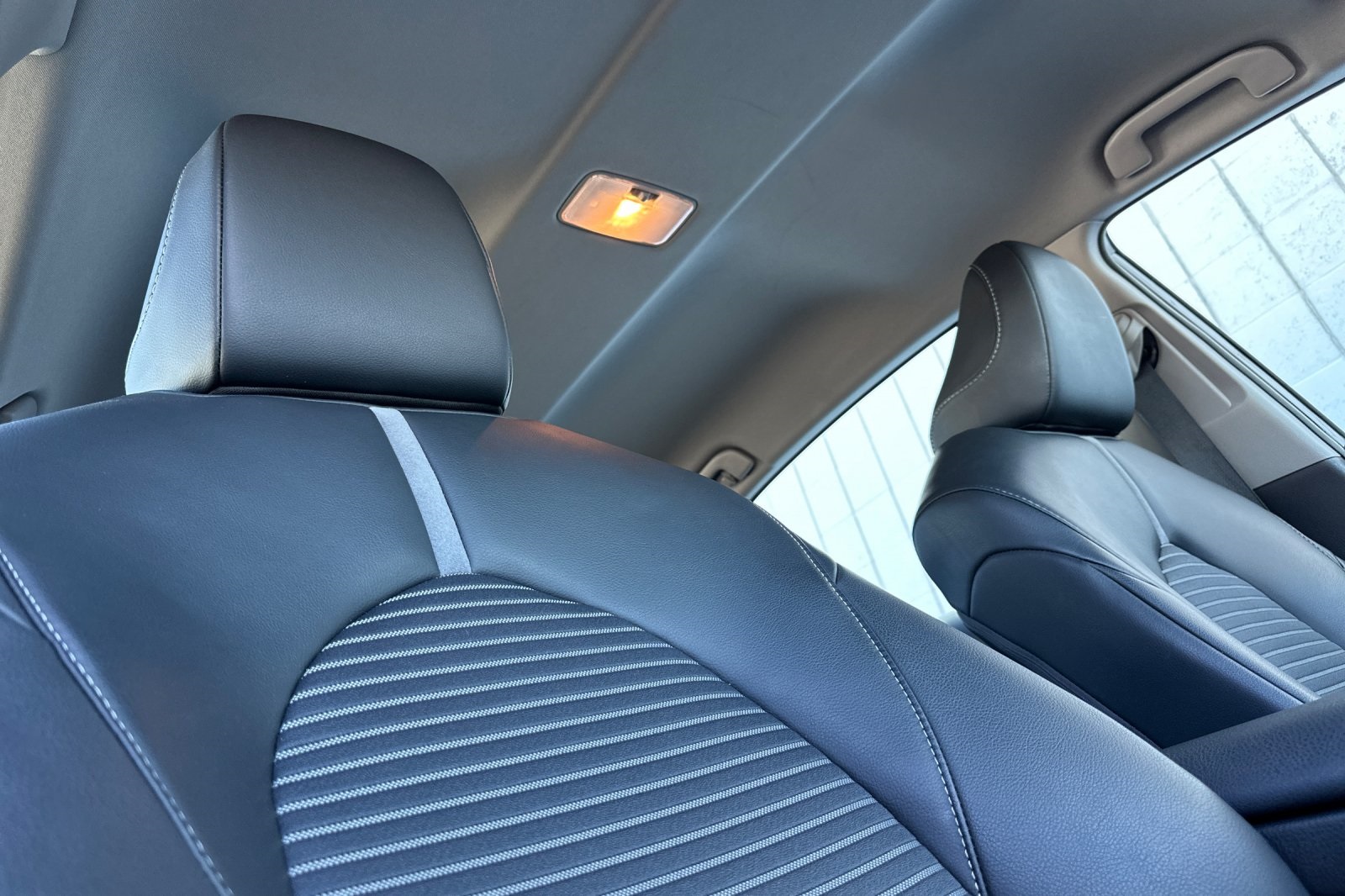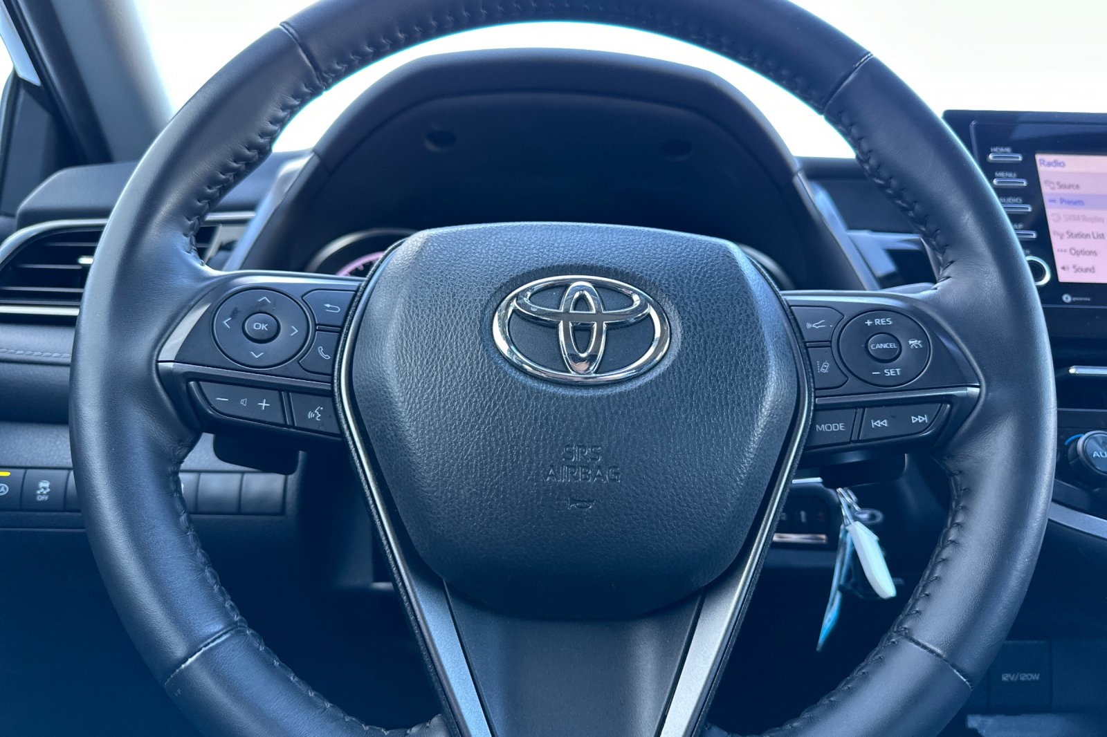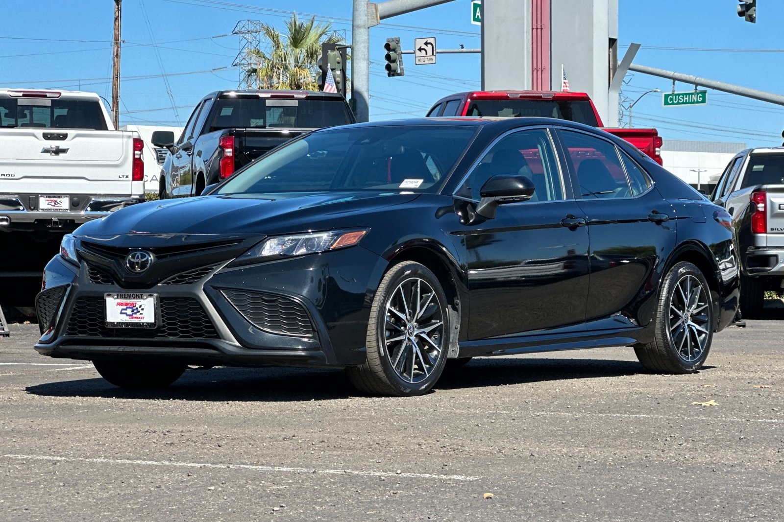 CARFAX One-Owner. Clean CARFAX. Midnight Black Metallic 2024 Toyota Camry SE FWD 8-Speed Automatic 2.5L I4 DOHC 16V CARFAX ONE OWNER, NON-SMOKER, Alloy Wheels, Aluminum Wheels, Light Package, Power Mirror Package, Power Package, Camry SE, 4D Sedan, 2.5L I4 DOHC 16V, 8-Speed Automatic, FWD, Midnight Black Metallic, Black w/Fabric Seat Trim, 18" x 8J Alloy Wheels, 4-Wheel Disc Brakes, 6 Speakers, ABS brakes, Air Conditioning, Alloy wheels, AM/FM radio: SiriusXM, Apple CarPlay/Android Auto, Auto High-beam Headlights, Automatic temperature control, Brake assist, Bumpers: body-color, Delay-off headlights, Driver door bin, Driver vanity mirror, Dual front impact airbags, Dual front side impact airbags, Electronic Stability Control, Emergency communication system: Safety Connect (1-year trial), Exterior Parking Camera Rear, Four wheel independent suspension, Front Bucket Seats, Front Center Armrest, Front dual zone A/C, Front reading lights, Fully automatic headlights, Heated door mirrors, Illuminated entry, Knee airbag, Leather steering wheel, Low tire pressure warning, Occupant sensing airbag, Outside temperature display, Overhead airbag, Overhead console, Panic alarm, Passenger door bin, Passenger vanity mirror, Power door mirrors, Power driver seat, Power steering, Power windows, Radio data system, Radio: Audio, Rear seat center armrest, Rear side impact airbag, Rear window defroster, Remote keyless entry, Security system, Speed control, Speed-sensing steering, Split folding rear seat, Spoiler, Sport SofTex Seat Trim w/Fabric Inserts, Steering wheel mounted audio controls, Tachometer, Telescoping steering wheel, Tilt steering wheel, Traction control, Trip computer, Turn signal indicator mirrors.