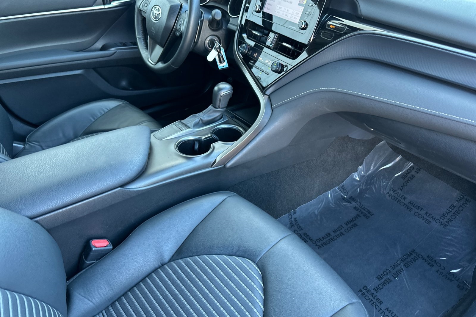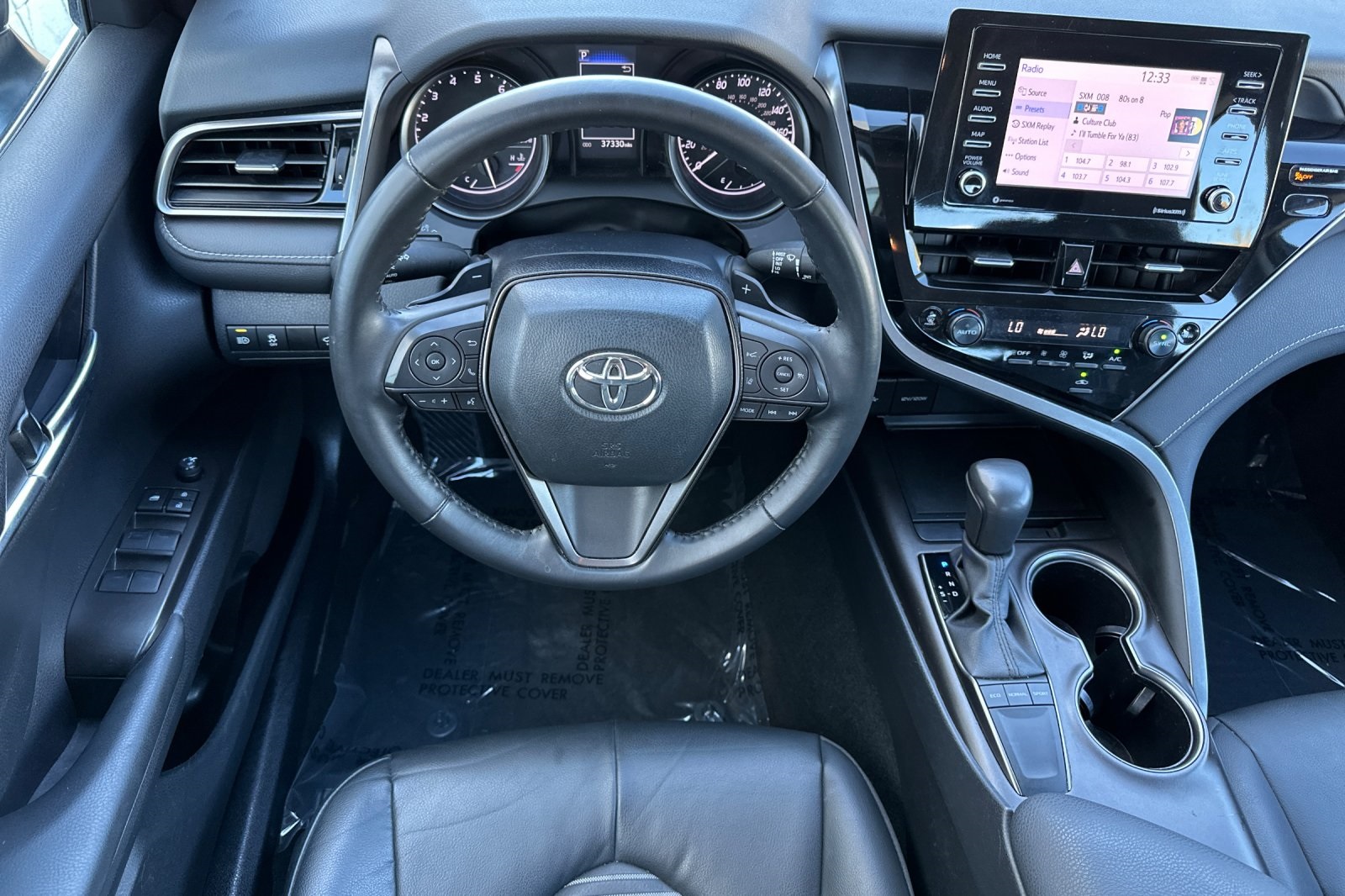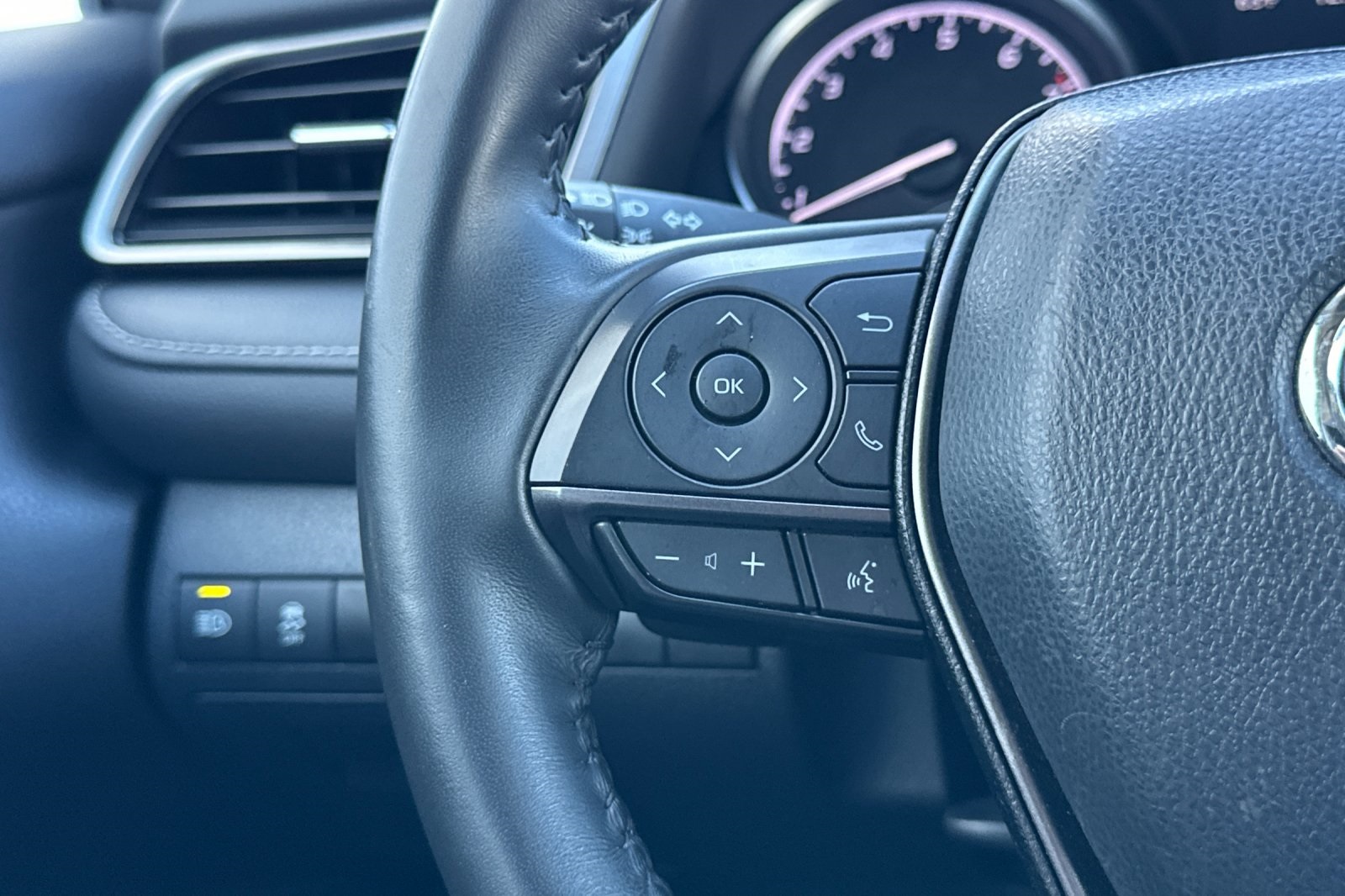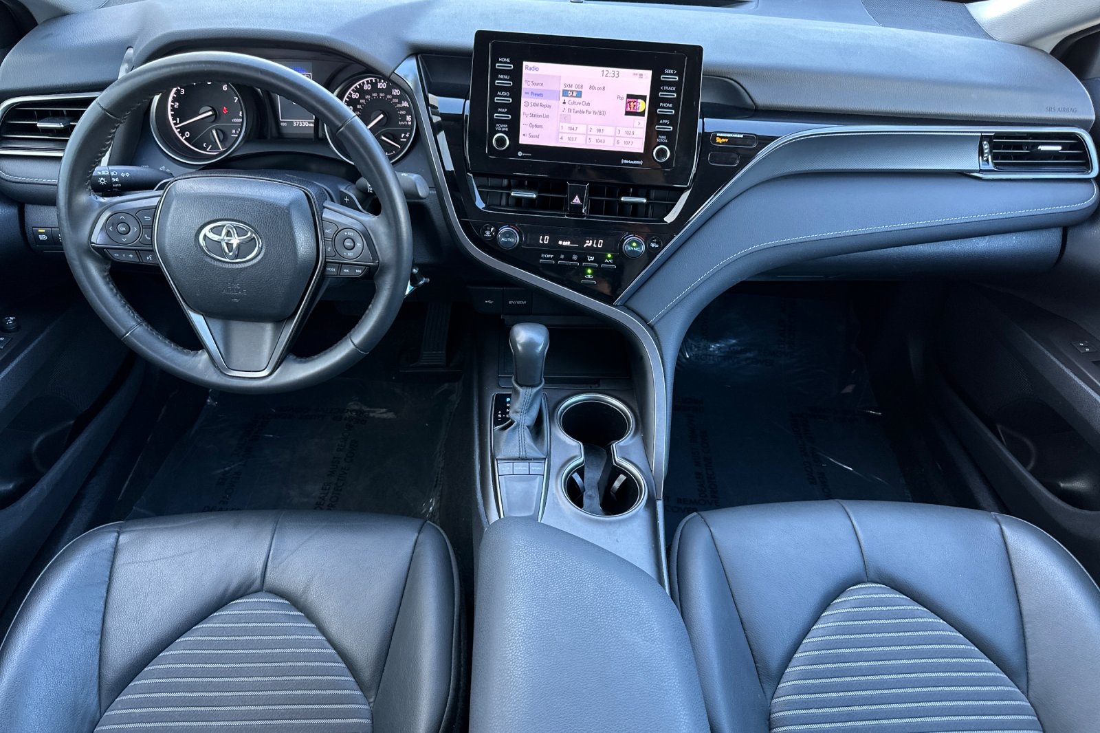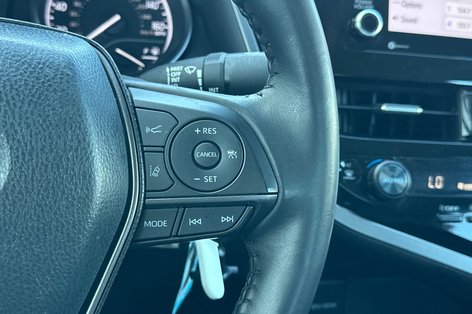 CARFAX One-Owner. Clean CARFAX. Midnight Black Metallic 2024 Toyota Camry SE FWD 8-Speed Automatic 2.5L I4 DOHC 16V CARFAX ONE OWNER, NON-SMOKER, Alloy Wheels, Aluminum Wheels, Light Package, Power Mirror Package, Power Package, Camry SE, 4D Sedan, 2.5L I4 DOHC 16V, 8-Speed Automatic, FWD, Midnight Black Metallic, Black w/Fabric Seat Trim, 18" x 8J Alloy Wheels, 4-Wheel Disc Brakes, 6 Speakers, ABS brakes, Air Conditioning, Alloy wheels, AM/FM radio: SiriusXM, Apple CarPlay/Android Auto, Auto High-beam Headlights, Automatic temperature control, Brake assist, Bumpers: body-color, Delay-off headlights, Driver door bin, Driver vanity mirror, Dual front impact airbags, Dual front side impact airbags, Electronic Stability Control, Emergency communication system: Safety Connect (1-year trial), Exterior Parking Camera Rear, Four wheel independent suspension, Front Bucket Seats, Front Center Armrest, Front dual zone A/C, Front reading lights, Fully automatic headlights, Heated door mirrors, Illuminated entry, Knee airbag, Leather steering wheel, Low tire pressure warning, Occupant sensing airbag, Outside temperature display, Overhead airbag, Overhead console, Panic alarm, Passenger door bin, Passenger vanity mirror, Power door mirrors, Power driver seat, Power steering, Power windows, Radio data system, Radio: Audio, Rear seat center armrest, Rear side impact airbag, Rear window defroster, Remote keyless entry, Security system, Speed control, Speed-sensing steering, Split folding rear seat, Spoiler, Sport SofTex Seat Trim w/Fabric Inserts, Steering wheel mounted audio controls, Tachometer, Telescoping steering wheel, Tilt steering wheel, Traction control, Trip computer, Turn signal indicator mirrors.