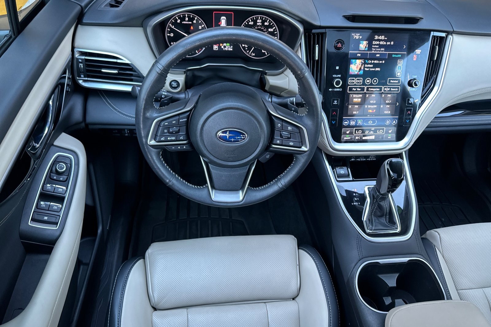 CARFAX One-Owner. Clean CARFAX. Crystal Black Silica 2024 Subaru Outback Limited AWD CVT Lineartronic 2.5L 4-Cylinder DOHC 16V CARFAX ONE OWNER, NON-SMOKER, Leather Seats, Backup Camera, Bluetooth, Alloy Wheels, Aluminum Wheels, Climate Package, Heat Package, Light Package, Power Mirror Package, Power Package, Outback Limited, 4D Sport Utility, 2.5L 4-Cylinder DOHC 16V, CVT Lineartronic, AWD, Crystal Black Silica, Ivory Leather, 12 Speakers, 3.90 Axle Ratio, 4-Wheel Disc Brakes, ABS brakes, Air Conditioning, Alloy wheels, AM/FM radio: SiriusXM, Auto High-beam Headlights, Auto-Dimming Exterior Mirror w/Approach Light, Auto-dimming Rear-View mirror, Automatic temperature control, Brake assist, Bumpers: body-color, Cargo Net, Compass, Driver door bin, Driver vanity mirror, DriverFocus (Driver Monitoring System), Dual front impact airbags, Dual front side impact airbags, Electronic Stability Control, Emergency communication system: STARLINK Safety Plus (3-year free trial), Exterior Parking Camera Rear, Four wheel independent suspension, Front Bucket Seats, Front Center Armrest w/Storage, Front dual zone A/C, Front fog lights, Front reading lights, Fully automatic headlights, Garage door transmitter: HomeLink, harman/kardon® Speakers, Heated door mirrors, Heated Front Bucket Seats, Heated front seats, Heated rear seats, Heated Steering Wheel, Illuminated entry, Knee airbag, Leather Shift Knob, Leather steering wheel, Low tire pressure warning, Memory seat, Occupant sensing airbag, Outside temperature display, Overhead airbag, Overhead console, Panic alarm, Passenger door bin, Passenger vanity mirror, Perforated Leather-Trimmed Upholstery, Power door mirrors, Power driver seat, Power Liftgate, Power Moonroof, Power Moonroof & Htd Steering Wheel & Nav System, Power passenger seat, Power steering, Power windows, Radio: Subaru STARLINK 11.6" Multimedia Nav System, Radio: Subaru STARLINK 11.6" Multimedia Plus Sys, Rear Bumper Cover, Rear seat center armrest, Rear window defroster, Rear window wiper, Remote keyless entry, Roof rack, Security system, Speed control, Speed-sensing steering, Split folding rear seat, Spoiler, Steering wheel mounted audio controls, Tachometer, Telescoping steering wheel, Tilt steering wheel, Traction control, Trip computer, Turn signal indicator mirrors, Variably intermittent wipers, Wheels: 18" x 7J Black Aluminum-Alloy.