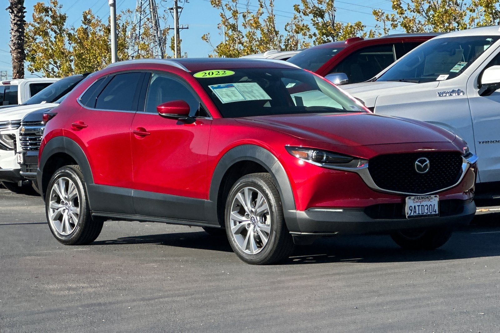 Soul Red Crystal Metallic 2022 Mazda CX-30 2.5 S Premium Package AWD 6-Speed Automatic SKYACTIV® 2.5L 4-Cylinder DOHC 16V NON-SMOKER, Leather Seats, Backup Camera, Bluetooth, Alloy Wheels, Aluminum Wheels, Audio Package, Climate Package, Heat Package, Light Package, Power Mirror Package, Power Package, Sound Package, Sunroof/Moonroof, CX-30 2.5 S Premium Package, 4D Sport Utility, SKYACTIV® 2.5L 4-Cylinder DOHC 16V, 6-Speed Automatic, AWD, Soul Red Crystal Metallic, Black w/Leather Seat Trim, 3.850 Axle Ratio, 4-Wheel Disc Brakes, 8 Speakers, ABS brakes, Air Conditioning, Alloy wheels, AppLink/Apple CarPlay and Android Auto, Auto High-beam Headlights, Automatic temperature control, Bose Audio Credit, Brake assist, Bumpers: body-color, Compass, Delay-off headlights, Driver door bin, Driver vanity mirror, Dual front impact airbags, Dual front side impact airbags, Electronic Stability Control, Emergency communication system: Mazda Connected Services (Automatic 911 Dialing), Exterior Parking Camera Rear, Front Bucket Seats, Front Center Armrest, Front dual zone A/C, Front reading lights, Front wheel independent suspension, Fully automatic headlights, Heads-Up Display, Heated Front Bucket Seats, Heated front seats, High Wall All-Weather Floor Mats, Illuminated entry, Knee airbag, Leather Seat Trim, Leather Shift Knob, Leather steering wheel, Low tire pressure warning, MAZDA CONNECT Infotainment System, Memory seat, Navigation system: MAZDA CONNECT, Occupant sensing airbag, Outside temperature display, Overhead airbag, Overhead console, Panic alarm, Passenger door bin, Passenger vanity mirror, Power door mirrors, Power driver seat, Power Liftgate, Power moonroof, Power steering, Power windows, Radio data system, Radio: AM/FM/HD Audio System w/Mazda Navigation, Rain sensing wipers, Rear seat center armrest, Rear window defroster, Rear window wiper, Remote keyless entry, Roof rack: rails only, Soul Red Crystal Metallic Paint, Speed control, Speed-sensing steering, Split folding rear seat, Spoiler, Steering wheel mounted audio controls, Tachometer, Telescoping steering wheel, Tilt steering wheel, Traction control, Trip computer, Turn signal indicator mirrors, Variably intermittent wipers, Wheels: 18" x 7J Aluminum Alloy.