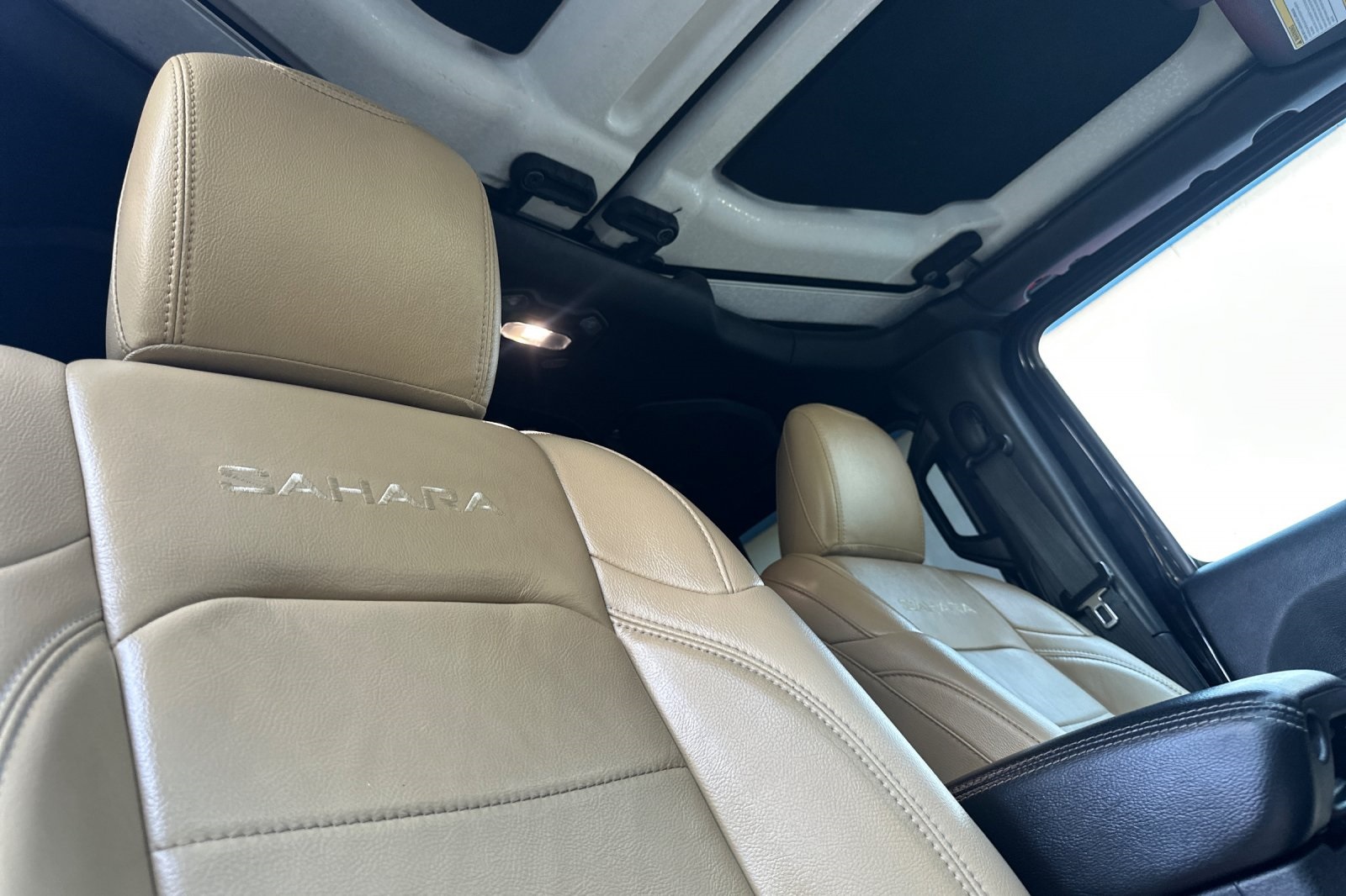 New Price! Black Clearcoat 2018 Jeep Wrangler Unlimited Sahara 4WD 8-Speed Automatic 2.0L I4 DOHC NON-SMOKER, Navigation System, Premium Sound Package, Leather Seats, Backup Camera, Bluetooth, Alloy Wheels, Aluminum Wheels, Audio Package, Climate Package, Heat Package, Light Package, Power Mirror Package, Power Package, Remote Start, Wrangler Unlimited Sahara, 4D Sport Utility, 2.0L I4 DOHC, 8-Speed Automatic, 4WD, Black Clearcoat, Black w/Premium Cloth Low-Back Bucket Seats or Leather Trimmed Bucket Seats, 1-Year SiriusXM Guardian Trial, 1-Yr SiriusXM Radio Service, 3.45 Rear Axle Ratio, 4-Wheel Disc Brakes, 5-Year SiriusXM Traffic Service, 5-Year SiriusXM Travel Link Service, 8 Speakers, 8.4" Touchscreen Display, ABS brakes, Air Conditioning, Alloy wheels, Alpine Premium Audio System, AM/FM radio: SiriusXM, Apple CarPlay (DISC), Apple CarPlay/Android Auto, Auto-Dimming Rear-View Mirror, Automatic temperature control, Blind Spot & Cross Path Detection, Body Color 3-Piece Hard Top, Brake assist, Cloth Low-Back Bucket Seats, Cold Weather Group, Compass, Daytime Running Lamps LED Accents, Delay-off headlights, Driver door bin, Driver vanity mirror, Dual front impact airbags, Dual front side impact airbags, Electronic Infotainment System Group, Electronic Stability Control, For More Info, Call 800-643-2112, Freedom Panel Storage Bag, Front Bucket Seats, Front Center Armrest w/Storage, Front dual zone A/C, Front fog lights, Front LED Fog Lamps, Front License Plate Bracket (DISC), Front reading lights, Fully automatic headlights, Garage door transmitter, GPS Navigation, HD Radio, Heated door mirrors, Heated Front Seats, Heated Steering Wheel, Heavy Duty Suspension w/Gas Shocks, Illuminated entry, Integrated roll-over protection, Leather steering wheel, LED Lighting Group, LED Reflector Headlamps, LED Taillamps, Low tire pressure warning, MOPAR All-Weather Floor Mats, MOPAR Hardtop Headliner, Non-Lock Fuel Cap w/o Discriminator, Occupant sensing airbag, Outside temperature display, Panic alarm, ParkSense Rear Park Assist System, ParkView Rear Back-Up Camera, Passenger door bin, Passenger vanity mirror, Power door mirrors, Power steering, Power windows, Quick Order Package 28G, Radio data system, Radio: Uconnect 4 w/7" Display, Radio: Uconnect 4C Nav w/8.4" Display, Rear reading lights, Rear Window Defroster, Rear Window Wiper/Washer, Remote keyless entry, Remote Proximity Keyless Entry, Remote Start System, Roadside Assistance & 9-1-1 Call, Safety Group, Security system, SiriusXM Satellite Radio (DISC), SiriusXM Traffic Plus, SiriusXM Travel Link, Speed control, Split folding rear seat, Steering wheel mounted audio controls, Tachometer, Telescoping steering wheel, Tilt steering wheel, Traction control, Trip computer, Variably intermittent wipers, Voltmeter, Wheels: 18" x 7.5" Polished w/Gray Spokes, Wheels: 18" x 7.5" Tech Gray Polished Face.