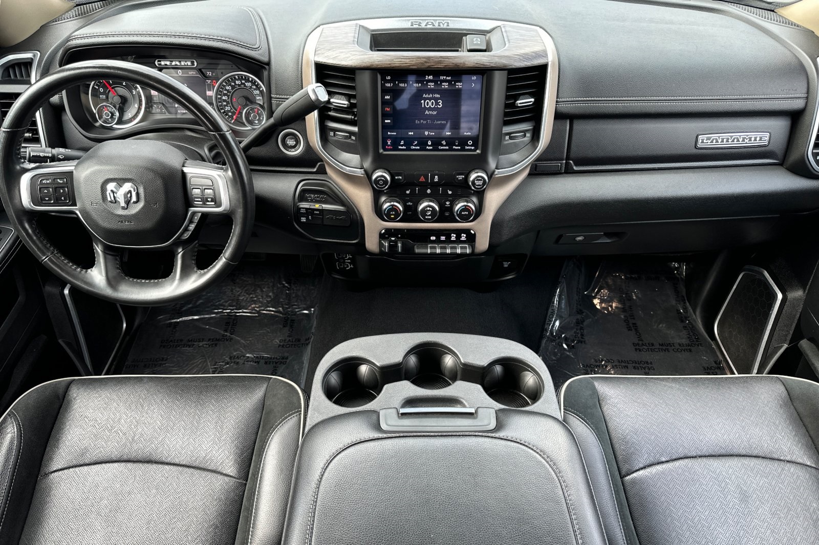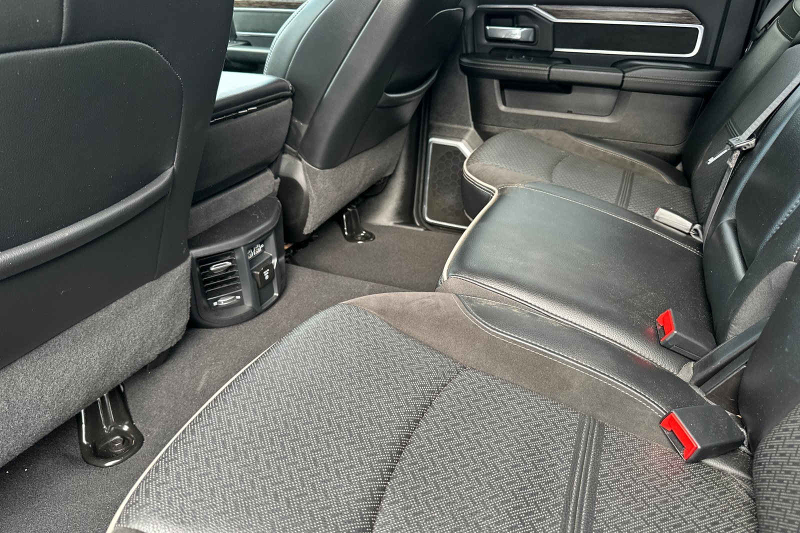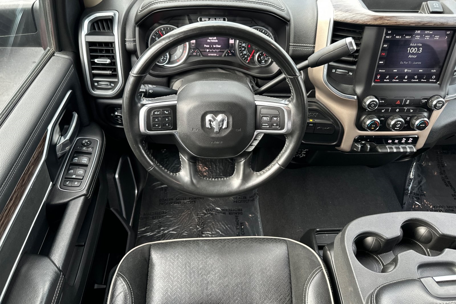 Clean CARFAX. Granite Crystal Metallic Clearcoat 2021 Ram 2500 Laramie 4WD 6-Speed Automatic Cummins 6.7L I6 Turbodiesel NON-SMOKER, Backup Camera, Bluetooth, Alloy Wheels, Aluminum Wheels, Climate Package, Heat Package, Light Package, Power Mirror Package, Power Package, Remote Start, Tow Package, Trailer Package, 2500 Laramie, 4D Crew Cab, Cummins 6.7L I6 Turbodiesel, 6-Speed Automatic, 4WD, Granite Crystal Metallic Clearcoat, Black w/Leather Trim 40/20/40 Bench Seat, 1 Year Telematics Service, 10 Speakers, 115V Auxiliary Rear Power Outlet, 2 Way Rear Headrest Seat, 220 Amp Alternator, 3.73 Axle Ratio, 4 Way Front Headrests, 4-Wheel Disc Brakes, 8.4" Touchscreen Display, ABS brakes, Active Noise Control System, Adjustable pedals, Air Conditioning, Alloy wheels, AM/FM radio: SiriusXM, Anti-Spin Differential Rear Axle, Apple CarPlay, Apple CarPlay/Android Auto, Auto-dimming Rear-View mirror, Automatic temperature control, Brake assist, Bumpers: chrome, Compass, Delay-off headlights, Driver door bin, Driver vanity mirror, Dual front impact airbags, Dual front side impact airbags, Electronic Stability Control, Electronically Controlled Throttle, Front Center Armrest w/Storage, Front dual zone A/C, Front fog lights, Front License Plate Bracket, Front reading lights, Front Seat Back Map Pockets, Fully automatic headlights, Garage door transmitter, Google Android Auto, GPS Antenna Input, Heated door mirrors, Heated Front Seats, Heated front seats, Heated Steering Wheel, Heated steering wheel, Illuminated entry, Integrated Center Stack Radio, Integrated Voice Command w/Bluetooth, Leather steering wheel, Leather Trim 40/20/40 Bench Seat, Low tire pressure warning, Manufacturer's Statement of Origin, Occupant sensing airbag, Outside temperature display, Overhead airbag, Overhead console, Panic alarm, ParkView Rear Back-Up Camera, Passenger door bin, Passenger vanity mirror, Power 2-Way Driver Lumbar Adjust, Power 2-Way Passenger Lumbar Adjust, Power Adjust 8-Way Driver Seat, Power Adjust 8-Way Front Passenger Seat, Power door mirrors, Power driver seat, Power passenger seat, Power steering, Power windows, Quick Order Package 2HH Laramie, Radio data system, Radio: Uconnect 4 w/8.4" Display, RAM Telematics, Rear 60/40 Folding Seat, Rear reading lights, Rear seat center armrest, Rear step bumper, Rear window defroster, Remote keyless entry, Security system, SiriusXM Satellite Radio, Speed control, Split folding rear seat, Steering wheel mounted audio controls, Tachometer, Tilt steering wheel, Tip Start, Tow Hooks, Traction control, Trip computer, Turn signal indicator mirrors, Variably intermittent wipers, Vendor Painted Cargo Box Tracking, Voltmeter, Wheels: 18" x 8.0" Polished Aluminum.