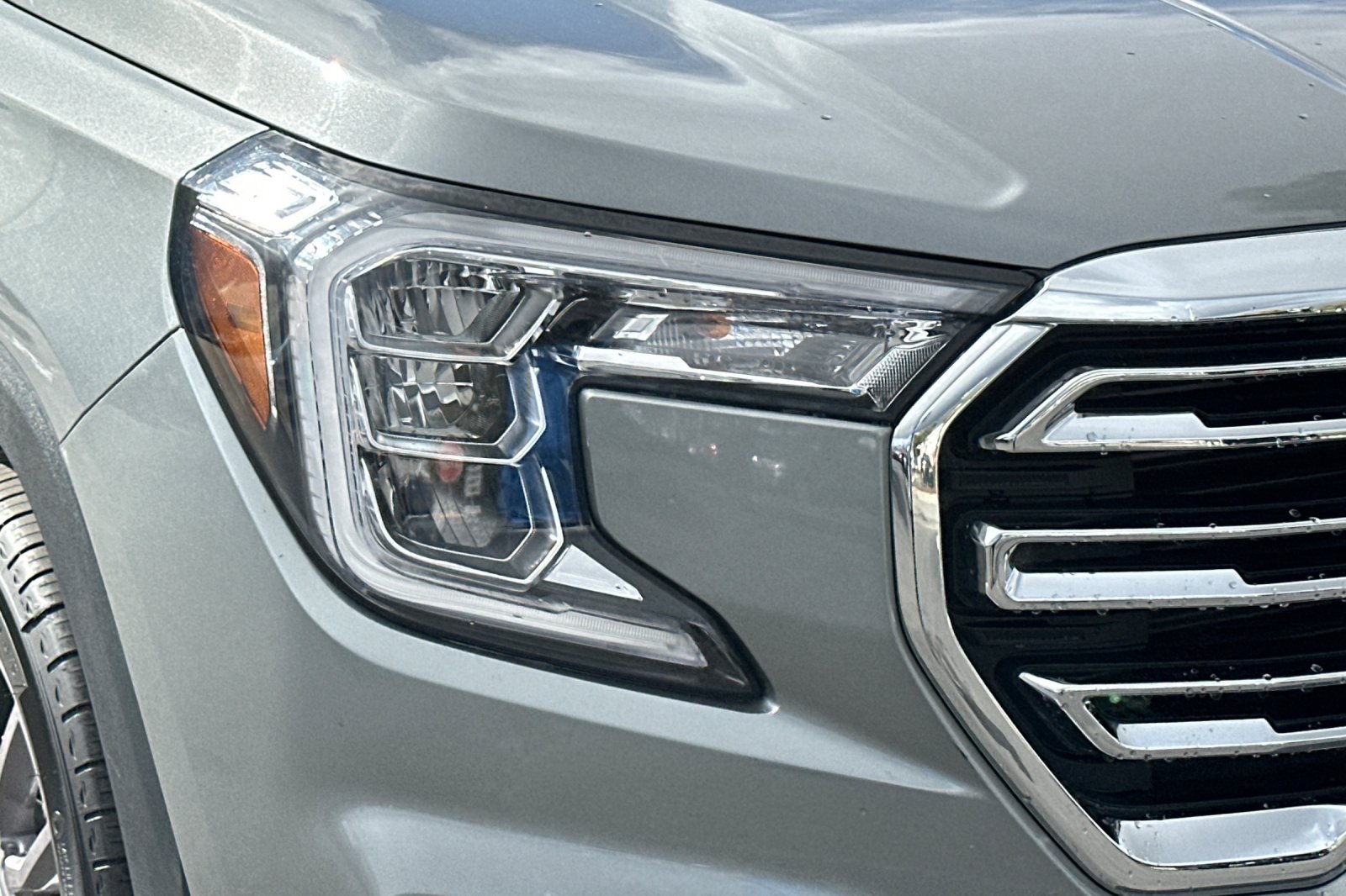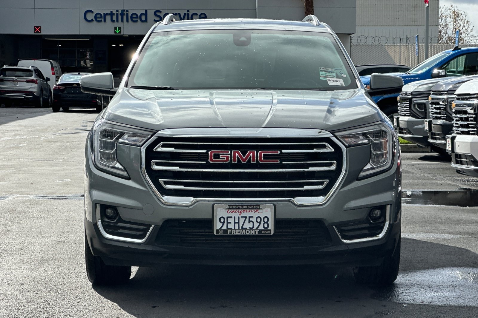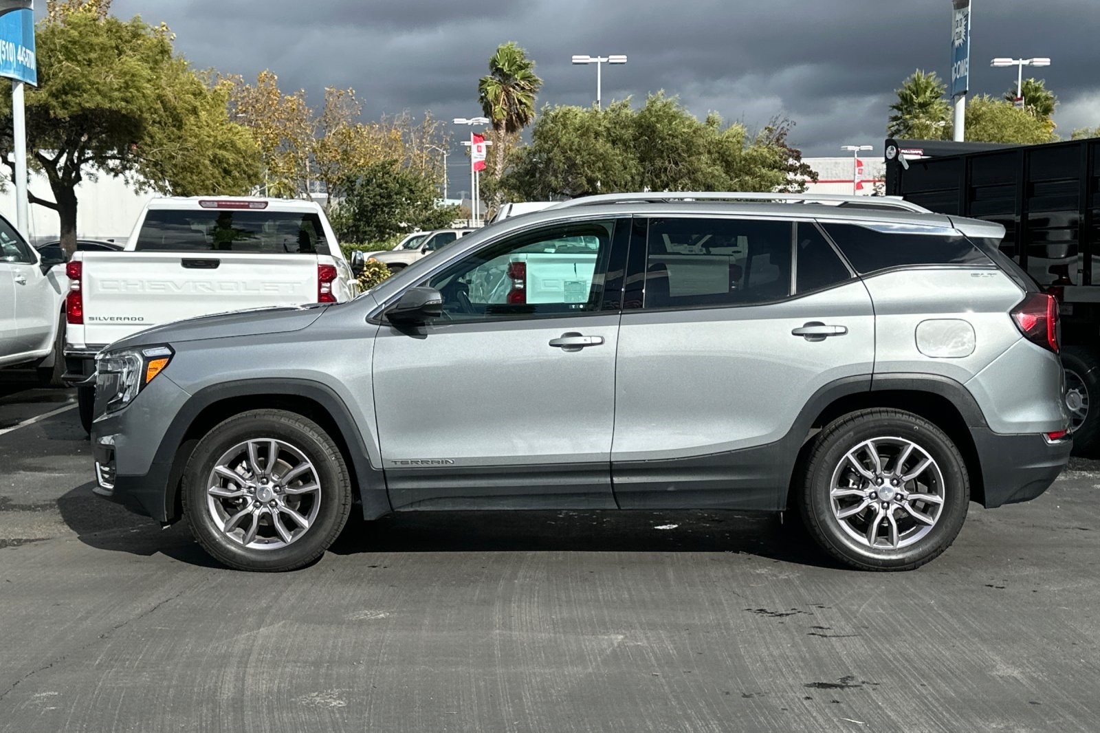 CARFAX One-Owner. Clean CARFAX. Sterling Metallic 2023 GMC Terrain SLT AWD 9-Speed Automatic 1.5L DOHC CARFAX ONE OWNER, NON-SMOKER, Alloy Wheels, Aluminum Wheels, Light Package, Power Mirror Package, Power Package, Remote Start, Terrain SLT, 4D Sport Utility, 1.5L DOHC, 9-Speed Automatic, AWD, Sterling Metallic, Jet Black w/Perforated Leather-Appointed Seat Trim, 2 USB Data Ports, 2 USB Data Ports w/SD Card Reader, 3.47 Axle Ratio, 4-Wheel Disc Brakes, 6 Speakers, 6-Speaker Audio System Feature, 6-Way Power Front Passenger Seat, 8-Way Power Driver Seat Adjuster, ABS brakes, Air Conditioning, Alloy wheels, AM/FM radio: SiriusXM, Auto High-beam Headlights, Auto-dimming Rear-View mirror, Automatic temperature control, Bluetooth® For Phone, Brake assist, Bumpers: body-color, Compass, Delay-off headlights, Driver & Front Passenger Heated Seats, Driver door bin, Driver vanity mirror, Dual front impact airbags, Dual front side impact airbags, Electronic Stability Control, Emergency communication system: OnStar and GMC connected services capable, Four wheel independent suspension, Front Bucket Seats, Front Center Armrest, Front dual zone A/C, Front fog lights, Front Passenger 2-Way Power Lumbar, Front reading lights, Fully automatic headlights, Garage door transmitter, Heated door mirrors, Heated front seats, Heated steering wheel, Illuminated entry, Lane Departure Warning System, License Plate Front Mounting Package, Low tire pressure warning, Memory seat, Occupant sensing airbag, Outside temperature display, Overhead airbag, Overhead console, Panic alarm, Passenger door bin, Passenger vanity mirror, Perforated Leather-Appointed Seat Trim, Power door mirrors, Power Driver Lumbar Control, Power driver seat, Power Liftgate, Power passenger seat, Power steering, Power windows, Preferred Equipment Group 4SA, Radio data system, Radio: GMC Infotainment Audio System w/8" Display, Rear seat center armrest, Rear window defroster, Rear window wiper, Remote keyless entry, Roof rack: rails only, Security system, SiriusXM Radio, Speed control, Speed-sensing steering, Split folding rear seat, Spoiler, Steering wheel mounted audio controls, Tachometer, Telescoping steering wheel, Tilt steering wheel, Traction control, Trip computer, Turn signal indicator mirrors, Variably intermittent wipers, Wheels: 18" x 7" Silver Painted Aluminum, Wireless Apple CarPlay/Wireless Android Auto.