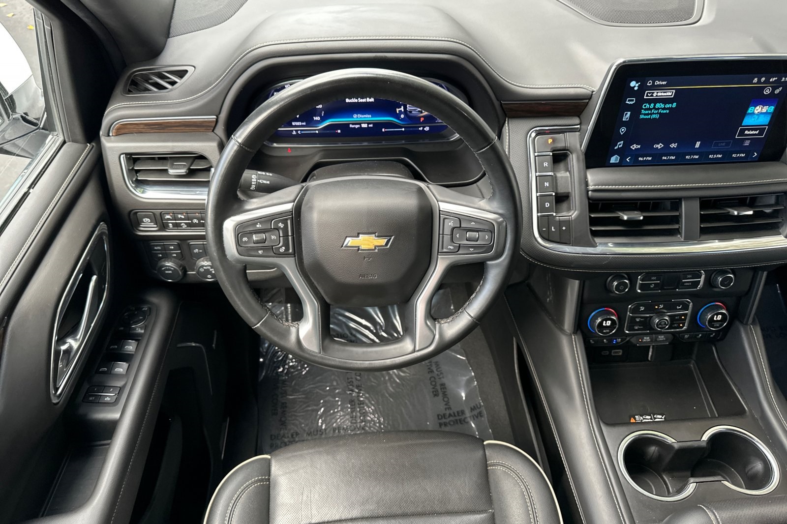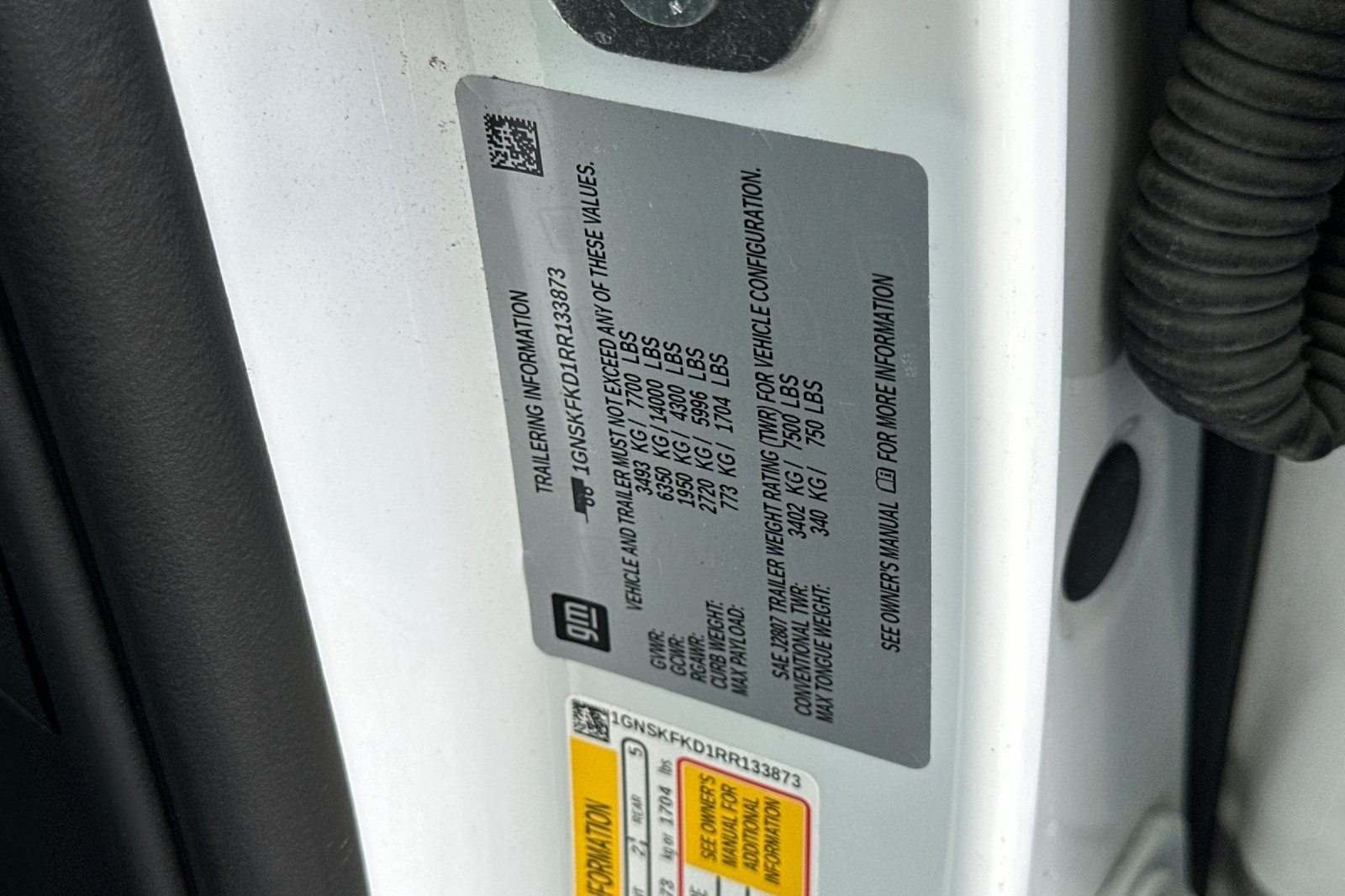 CARFAX One-Owner. Clean CARFAX. Summit White 2024 Chevrolet Suburban Premier 4WD 10-Speed Automatic with Overdrive EcoTec3 5.3L V8 CARFAX ONE OWNER, NON-SMOKER, 3RD ROW SEAT, Navigation System, Premium Sound Package, Leather Seats, Backup Camera, Bluetooth, Alloy Wheels, Aluminum Wheels, Audio Package, Climate Package, Heat Package, Light Package, Power Mirror Package, Power Package, Remote Start, Sound Package, Suburban Premier, 4D Sport Utility, EcoTec3 5.3L V8, 10-Speed Automatic with Overdrive, 4WD, Summit White, Jet Black w/Leather-Appointed Seating, 10 Speakers, 12-Way Power Driver & Passenger Seat Adjusters, 1st & 2nd Row Color-Keyed Carpeted Floor Mats, 2-Speed Active Electronic AutoTrac Transfer Case, 20" x 9" Polished Aluminum Wheels, 3.23 Rear Axle Ratio, 3rd Row 60/40 Power-Folding Split-Bench, 3rd row seats: split-bench, 4-Wheel Disc Brakes, ABS brakes, Adaptive suspension, Air Conditioning, Alloy wheels, AM/FM radio: SiriusXM with 360L, Apple CarPlay/Android Auto, Auto High-beam Headlights, Auto-dimming door mirrors, Auto-Dimming Inside Rear-View Mirror, Auto-dimming Rear-View mirror, Auto-leveling suspension, Automatic temperature control, Black Roof Rack Cross Rails, Bose 10-Speaker Surround w/CenterPoint, Brake assist, Bright Front & Rear Door Sill Plates, Bumpers: body-color, Chrome Door Handles w/Body-Color Strip, Chrome Mirror Caps, Color-Keyed Carpeting Floor Covering, Compass, Delay-off headlights, Deleted 3 Years of Remote Access, Driver & Front Outboard Passenger Airbags, Driver door bin, Driver vanity mirror, Dual Exhaust System, Dual front impact airbags, Dual front side impact airbags, Electronic Stability Control, Emergency communication system: OnStar and Chevrolet connected services capable, Enhanced Driver Information Center, Floor Console, Four wheel independent suspension, Front Bucket Seats, Front Center Armrest, Front dual zone A/C, Front reading lights, Fully automatic headlights, Garage door transmitter, Hands-Free Rear Power Programmable Liftgate, Heated 2nd Row Outboard Seats, Heated door mirrors, Heated Driver & Front Passenger Seats, Heated front seats, Heated rear seats, Heated Steering Wheel, Heated steering wheel, Hill Descent Control, Illuminated entry, Infotainment Display, Lane Change Alert w/Side Blind Zone Alert, LED Daytime Running Lamps, License Plate Front Mounting Package, Low tire pressure warning, Magnetic Ride Control Suspension, Memory seat, Memory Settings, Navigation System, Occupant sensing airbag, Outside Heated Power-Adjustable Mirrors, Outside temperature display, Overhead airbag, Overhead console, Panic alarm, Passenger door bin, Passenger vanity mirror, Perforated Heated & Ventilated Seats, Perforated Leather Seating Surfaces, Power door mirrors, Power driver seat, Power Liftgate, Power passenger seat, Power Release 2nd Row Bucket Seats, Power steering, Power Tilt & Telescopic Steering Column, Power windows, Preferred Equipment Group 1LZ, Premium audio system: Chevrolet Infotainment 3 Premium, Radio: Chevrolet Infotainment 3 Premium System, Rain sensing wipers, Rear air conditioning, Rear Cross Traffic Alert, Rear reading lights, Rear window defroster, Rear window wiper, Remote keyless entry, Remote Start, Roof rack: xxxxxx, Safety Alert Seat, Security system, SiriusXM w/360L, Speed control, Speed-sensing steering, Split folding rear seat, Spoiler, Steering wheel memory, Steering wheel mounted audio controls, Tachometer, Telescoping steering wheel, Tilt steering wheel, Traction control, Trip computer, Turn signal indicator mirrors, Universal Home Remote, Variably intermittent wipers, Ventilated front seats, Voltmeter, Wireless Charging, Wrapped Steering Wheel.
