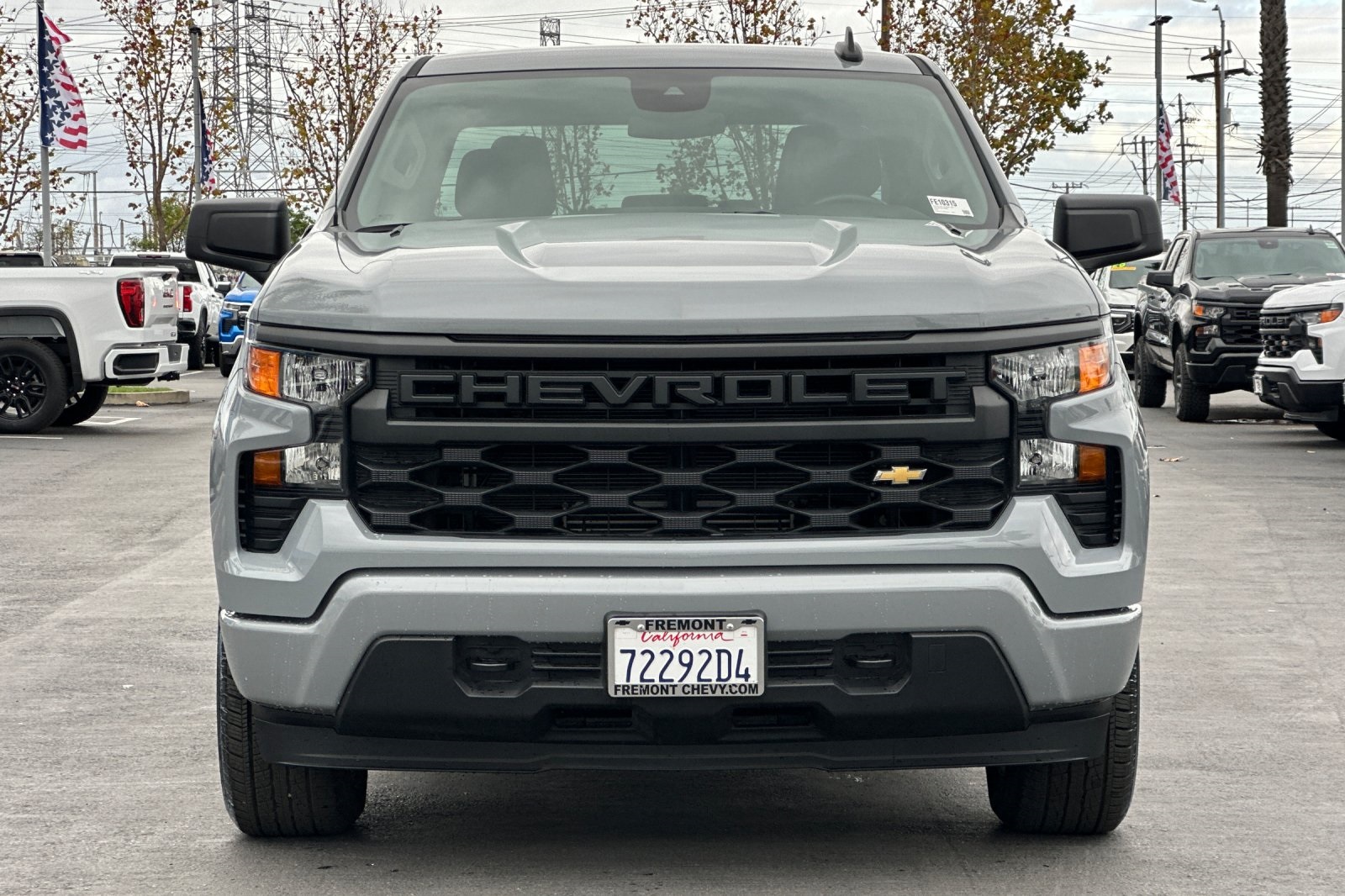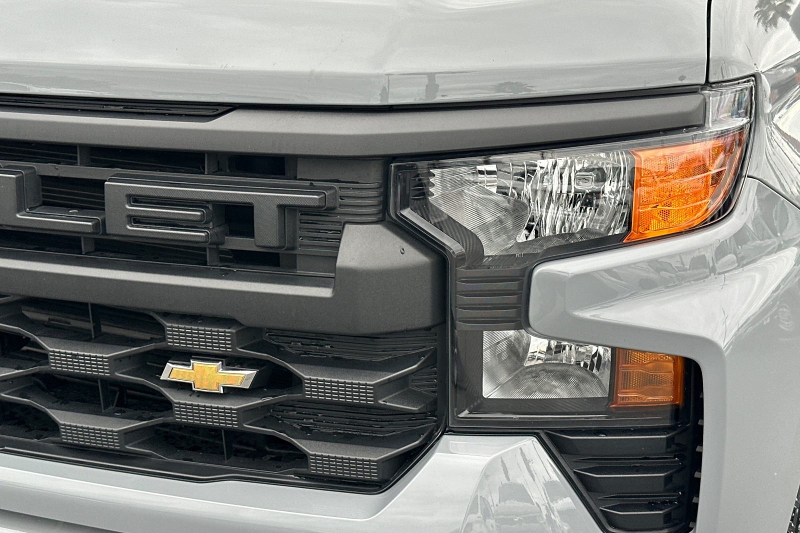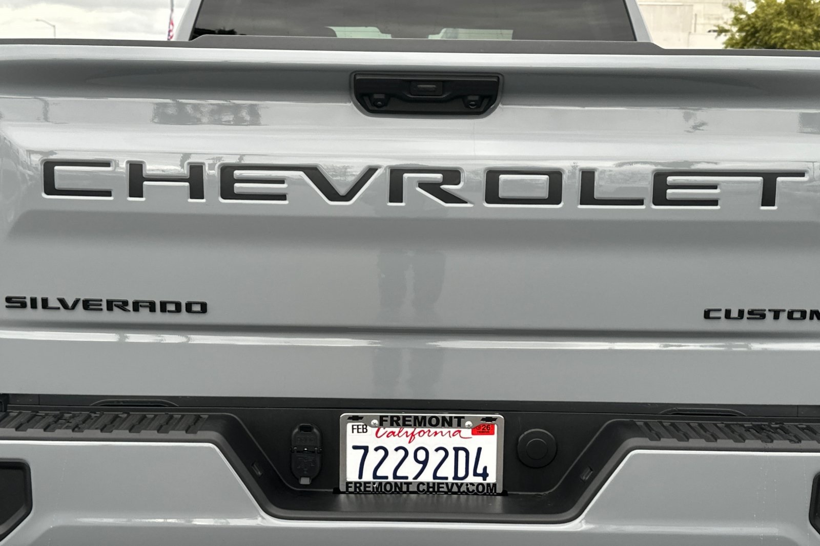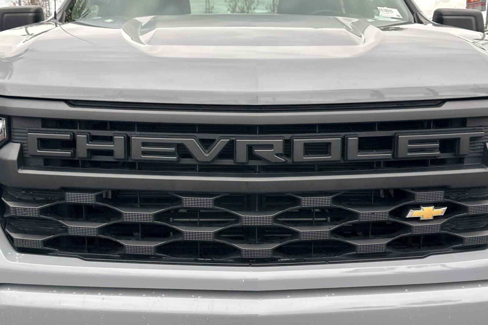 CARFAX One-Owner. Clean CARFAX. Slate Gray Metallic 2025 Chevrolet Silverado 1500 Custom RWD 8-Speed Automatic 2.7L I4 Turbocharged DOHC 16V LEV3-SULEV30 310hp CARFAX ONE OWNER, NON-SMOKER, Backup Camera, Bluetooth, Alloy Wheels, Aluminum Wheels, Light Package, Power Mirror Package, Power Package, Remote Start, Tow Package, Trailer Package, Silverado 1500 Custom, 4D Crew Cab, 2.7L I4 Turbocharged DOHC 16V LEV3-SULEV30 310hp, 8-Speed Automatic, RWD, Slate Gray Metallic, Jet Black w/Cloth Seat Trim, 10-Way Power Driver Seat w/Lumbar, 120-Volt Bed Mounted Power Outlet, 120-Volt Interior Power Outlet, 3.42 Rear Axle Ratio, 3.5" Monochromatic Display Driver Info Center, 4-Wheel Disc Brakes, 40/20/40 Front Split-Bench Seat, 6 Speakers, 6-Speaker Audio System, ABS brakes, Air Conditioning, All-Weather Floor Liner (LPO), Alloy wheels, AM/FM radio: SiriusXM, Apple CarPlay/Android Auto, Auto High-beam Headlights, Automatic Emergency Braking, Black Name Plates (LPO), Black Tailgate CHEVROLET Lettering (LPO), Bluetooth® For Phone, Brake assist, Bumpers: body-color, Cloth Seat Trim, Color-Keyed Carpeting Floor Covering, Compass, Custom Convenience Package, Custom Value Package, Dark Essentials Package (LPO), Deep-Tinted Glass, Delay-off headlights, Deleted Mobile Service Plus, Driver door bin, Driver vanity mirror, Dual front impact airbags, Dual front side impact airbags, Dual Rear USB Ports (Charge Only), Electric Rear-Window Defogger, Electronic Cruise Control, Electronic Stability Control, Emergency communication system: OnStar, EZ Lift Power Lock & Release Tailgate, Following Distance Indicator, Forward Collision Alert, Front Black Bowtie Emblem (LPO), Front Center Armrest w/Storage, Front Frame-Mounted Black Recovery Hooks, Front License Plate Kit, Front Pedestrian Braking, Front reading lights, Front Rubberized Vinyl Floor Mats, Front wheel independent suspension, Fully automatic headlights, HD Rear Vision Camera, Heated door mirrors, High Capacity Suspension Package, Hitch Guidance, Illuminated entry, Integrated Trailer Brake Controller, IntelliBeam Automatic High Beam On/Off, Lane Keep Assist w/Lane Departure Warning, LED Cargo Area Lighting, Low tire pressure warning, Manual Tilt Wheel Steering Column, Occupant sensing airbag, OnStar Services Capable, Outside temperature display, Overhead airbag, Overhead console, Panic alarm, Passenger door bin, Passenger vanity mirror, Power door mirrors, Power driver seat, Power Front Windows w/Driver Express Up/Down, Power Front Windows w/Passenger Express Down, Power Rear Windows w/Express Down, Power steering, Power windows, Preferred Equipment Group 1CX, Premium audio system: Chevrolet Infotainment 3, Radio data system, Radio: Chevrolet Infotainment 3 System, Rear 60/40 Folding Bench Seat (Folds Up), Rear reading lights, Rear Rubberized-Vinyl Floor Mats, Rear step bumper, Rear window defroster, Remote Keyless Entry, Remote keyless entry, Remote Vehicle Starter System, Security system, SiriusXM Trial Subscription, Speed control, Speed-sensing steering, Split folding rear seat, Standard Tailgate, Tachometer, Teen Driver, Theft Deterrent System (Unauthorized Entry), Tilt steering wheel, Tire Pressure Monitoring System, Traction control, Trailering Package, Trip computer, Variably intermittent wipers, Voltmeter, Wheels: 20" x 9" Bright Silver Painted Aluminum, Wi-Fi Hot Spot Capable.