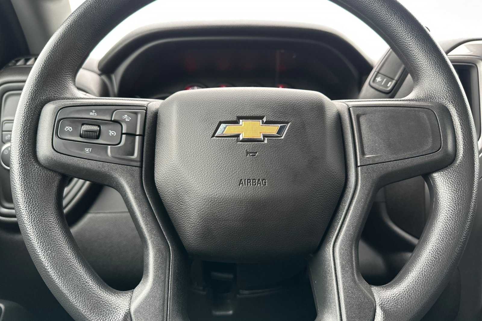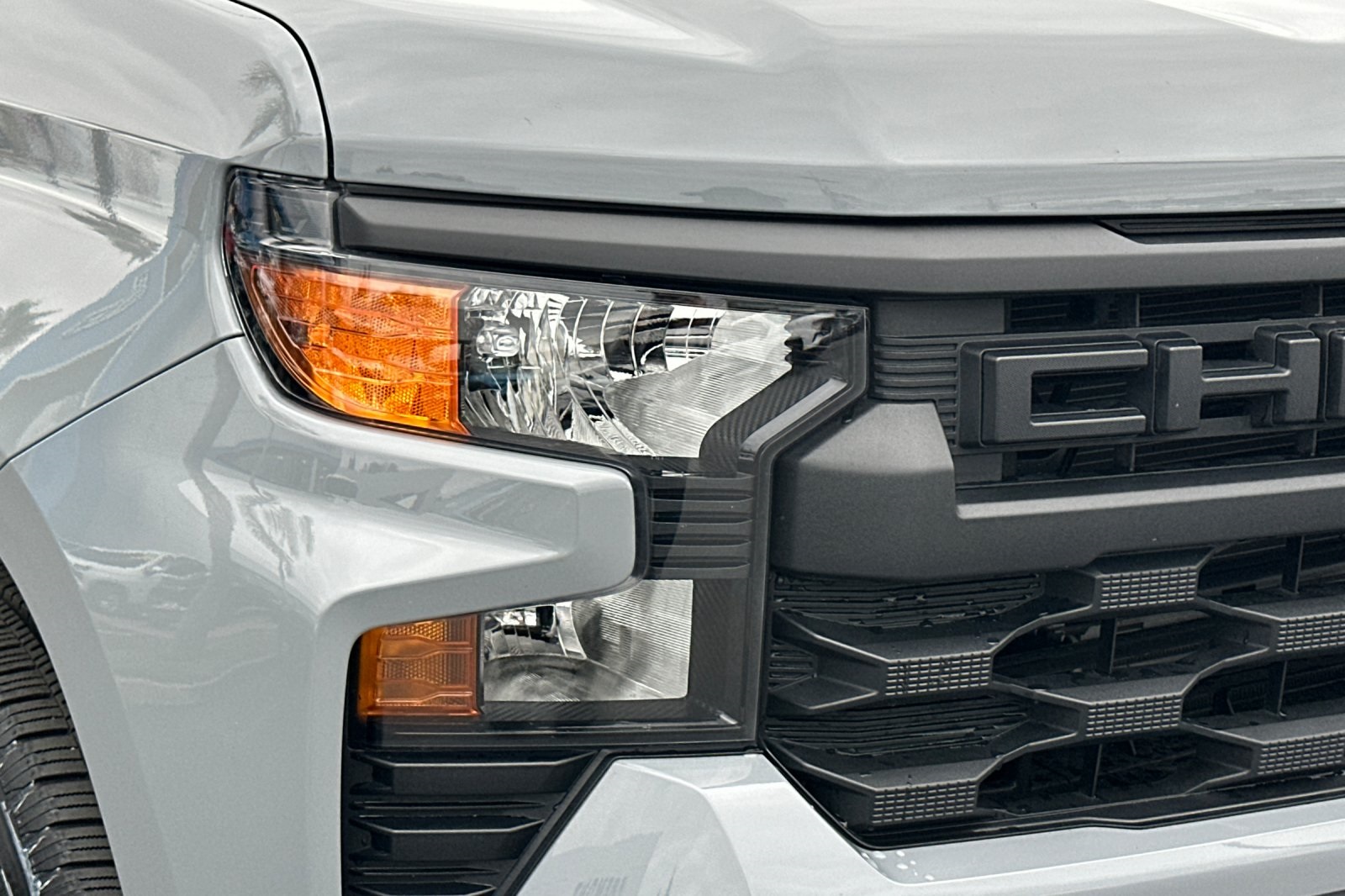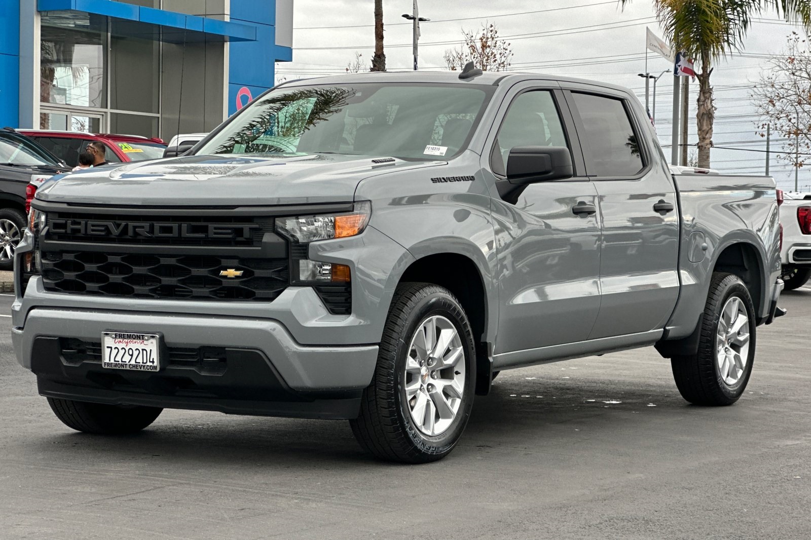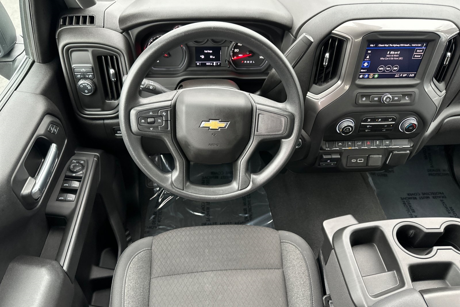 CARFAX One-Owner. Clean CARFAX. Slate Gray Metallic 2025 Chevrolet Silverado 1500 Custom RWD 8-Speed Automatic 2.7L I4 Turbocharged DOHC 16V LEV3-SULEV30 310hp CARFAX ONE OWNER, NON-SMOKER, Backup Camera, Bluetooth, Alloy Wheels, Aluminum Wheels, Light Package, Power Mirror Package, Power Package, Remote Start, Tow Package, Trailer Package, Silverado 1500 Custom, 4D Crew Cab, 2.7L I4 Turbocharged DOHC 16V LEV3-SULEV30 310hp, 8-Speed Automatic, RWD, Slate Gray Metallic, Jet Black w/Cloth Seat Trim, 10-Way Power Driver Seat w/Lumbar, 120-Volt Bed Mounted Power Outlet, 120-Volt Interior Power Outlet, 3.42 Rear Axle Ratio, 3.5" Monochromatic Display Driver Info Center, 4-Wheel Disc Brakes, 40/20/40 Front Split-Bench Seat, 6 Speakers, 6-Speaker Audio System, ABS brakes, Air Conditioning, All-Weather Floor Liner (LPO), Alloy wheels, AM/FM radio: SiriusXM, Apple CarPlay/Android Auto, Auto High-beam Headlights, Automatic Emergency Braking, Black Name Plates (LPO), Black Tailgate CHEVROLET Lettering (LPO), Bluetooth® For Phone, Brake assist, Bumpers: body-color, Cloth Seat Trim, Color-Keyed Carpeting Floor Covering, Compass, Custom Convenience Package, Custom Value Package, Dark Essentials Package (LPO), Deep-Tinted Glass, Delay-off headlights, Deleted Mobile Service Plus, Driver door bin, Driver vanity mirror, Dual front impact airbags, Dual front side impact airbags, Dual Rear USB Ports (Charge Only), Electric Rear-Window Defogger, Electronic Cruise Control, Electronic Stability Control, Emergency communication system: OnStar, EZ Lift Power Lock & Release Tailgate, Following Distance Indicator, Forward Collision Alert, Front Black Bowtie Emblem (LPO), Front Center Armrest w/Storage, Front Frame-Mounted Black Recovery Hooks, Front License Plate Kit, Front Pedestrian Braking, Front reading lights, Front Rubberized Vinyl Floor Mats, Front wheel independent suspension, Fully automatic headlights, HD Rear Vision Camera, Heated door mirrors, High Capacity Suspension Package, Hitch Guidance, Illuminated entry, Integrated Trailer Brake Controller, IntelliBeam Automatic High Beam On/Off, Lane Keep Assist w/Lane Departure Warning, LED Cargo Area Lighting, Low tire pressure warning, Manual Tilt Wheel Steering Column, Occupant sensing airbag, OnStar Services Capable, Outside temperature display, Overhead airbag, Overhead console, Panic alarm, Passenger door bin, Passenger vanity mirror, Power door mirrors, Power driver seat, Power Front Windows w/Driver Express Up/Down, Power Front Windows w/Passenger Express Down, Power Rear Windows w/Express Down, Power steering, Power windows, Preferred Equipment Group 1CX, Premium audio system: Chevrolet Infotainment 3, Radio data system, Radio: Chevrolet Infotainment 3 System, Rear 60/40 Folding Bench Seat (Folds Up), Rear reading lights, Rear Rubberized-Vinyl Floor Mats, Rear step bumper, Rear window defroster, Remote Keyless Entry, Remote keyless entry, Remote Vehicle Starter System, Security system, SiriusXM Trial Subscription, Speed control, Speed-sensing steering, Split folding rear seat, Standard Tailgate, Tachometer, Teen Driver, Theft Deterrent System (Unauthorized Entry), Tilt steering wheel, Tire Pressure Monitoring System, Traction control, Trailering Package, Trip computer, Variably intermittent wipers, Voltmeter, Wheels: 20" x 9" Bright Silver Painted Aluminum, Wi-Fi Hot Spot Capable.