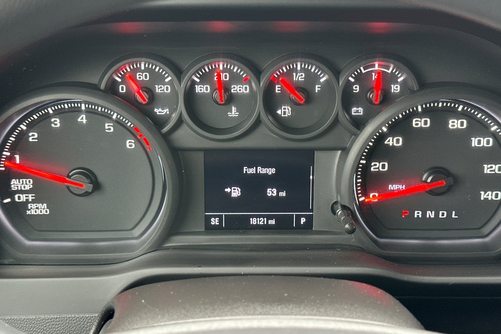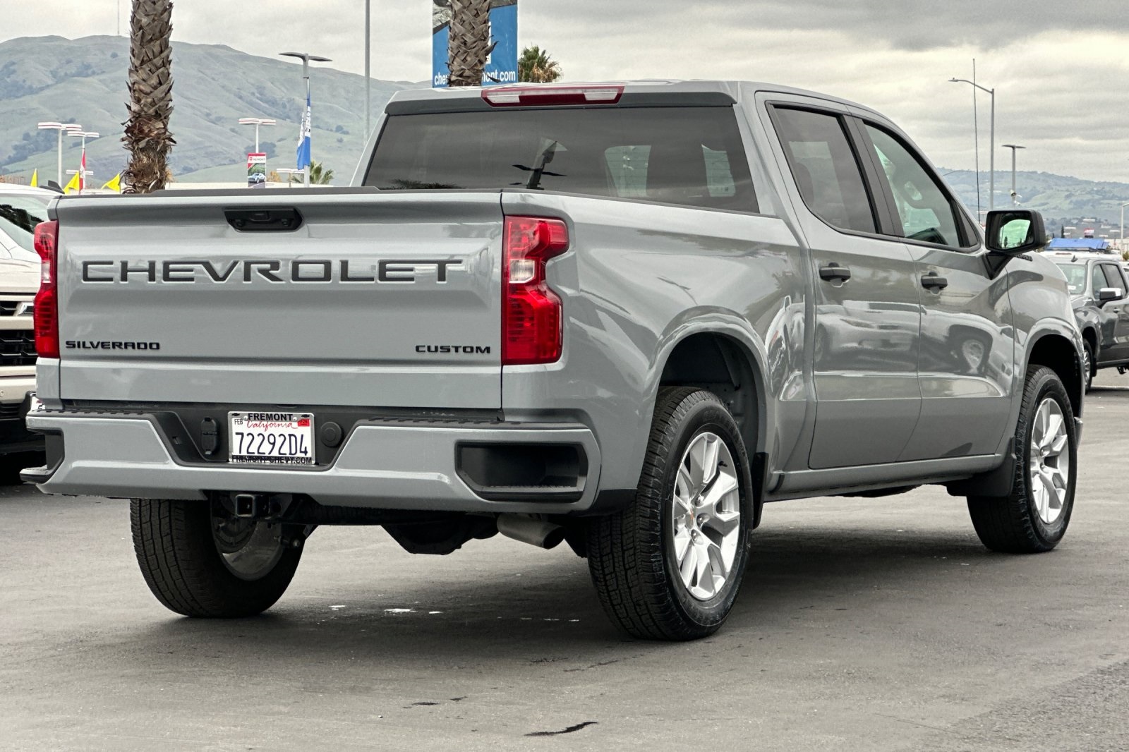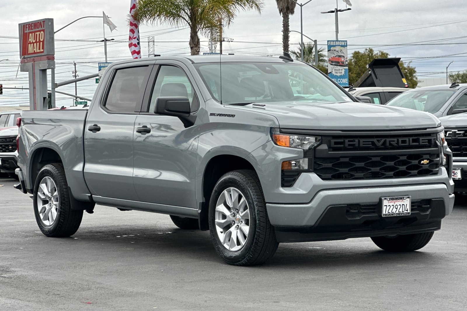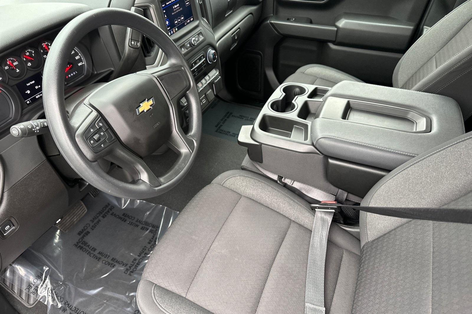 CARFAX One-Owner. Clean CARFAX. Slate Gray Metallic 2025 Chevrolet Silverado 1500 Custom RWD 8-Speed Automatic 2.7L I4 Turbocharged DOHC 16V LEV3-SULEV30 310hp CARFAX ONE OWNER, NON-SMOKER, Backup Camera, Bluetooth, Alloy Wheels, Aluminum Wheels, Light Package, Power Mirror Package, Power Package, Remote Start, Tow Package, Trailer Package, Silverado 1500 Custom, 4D Crew Cab, 2.7L I4 Turbocharged DOHC 16V LEV3-SULEV30 310hp, 8-Speed Automatic, RWD, Slate Gray Metallic, Jet Black w/Cloth Seat Trim, 10-Way Power Driver Seat w/Lumbar, 120-Volt Bed Mounted Power Outlet, 120-Volt Interior Power Outlet, 3.42 Rear Axle Ratio, 3.5" Monochromatic Display Driver Info Center, 4-Wheel Disc Brakes, 40/20/40 Front Split-Bench Seat, 6 Speakers, 6-Speaker Audio System, ABS brakes, Air Conditioning, All-Weather Floor Liner (LPO), Alloy wheels, AM/FM radio: SiriusXM, Apple CarPlay/Android Auto, Auto High-beam Headlights, Automatic Emergency Braking, Black Name Plates (LPO), Black Tailgate CHEVROLET Lettering (LPO), Bluetooth® For Phone, Brake assist, Bumpers: body-color, Cloth Seat Trim, Color-Keyed Carpeting Floor Covering, Compass, Custom Convenience Package, Custom Value Package, Dark Essentials Package (LPO), Deep-Tinted Glass, Delay-off headlights, Deleted Mobile Service Plus, Driver door bin, Driver vanity mirror, Dual front impact airbags, Dual front side impact airbags, Dual Rear USB Ports (Charge Only), Electric Rear-Window Defogger, Electronic Cruise Control, Electronic Stability Control, Emergency communication system: OnStar, EZ Lift Power Lock & Release Tailgate, Following Distance Indicator, Forward Collision Alert, Front Black Bowtie Emblem (LPO), Front Center Armrest w/Storage, Front Frame-Mounted Black Recovery Hooks, Front License Plate Kit, Front Pedestrian Braking, Front reading lights, Front Rubberized Vinyl Floor Mats, Front wheel independent suspension, Fully automatic headlights, HD Rear Vision Camera, Heated door mirrors, High Capacity Suspension Package, Hitch Guidance, Illuminated entry, Integrated Trailer Brake Controller, IntelliBeam Automatic High Beam On/Off, Lane Keep Assist w/Lane Departure Warning, LED Cargo Area Lighting, Low tire pressure warning, Manual Tilt Wheel Steering Column, Occupant sensing airbag, OnStar Services Capable, Outside temperature display, Overhead airbag, Overhead console, Panic alarm, Passenger door bin, Passenger vanity mirror, Power door mirrors, Power driver seat, Power Front Windows w/Driver Express Up/Down, Power Front Windows w/Passenger Express Down, Power Rear Windows w/Express Down, Power steering, Power windows, Preferred Equipment Group 1CX, Premium audio system: Chevrolet Infotainment 3, Radio data system, Radio: Chevrolet Infotainment 3 System, Rear 60/40 Folding Bench Seat (Folds Up), Rear reading lights, Rear Rubberized-Vinyl Floor Mats, Rear step bumper, Rear window defroster, Remote Keyless Entry, Remote keyless entry, Remote Vehicle Starter System, Security system, SiriusXM Trial Subscription, Speed control, Speed-sensing steering, Split folding rear seat, Standard Tailgate, Tachometer, Teen Driver, Theft Deterrent System (Unauthorized Entry), Tilt steering wheel, Tire Pressure Monitoring System, Traction control, Trailering Package, Trip computer, Variably intermittent wipers, Voltmeter, Wheels: 20" x 9" Bright Silver Painted Aluminum, Wi-Fi Hot Spot Capable.