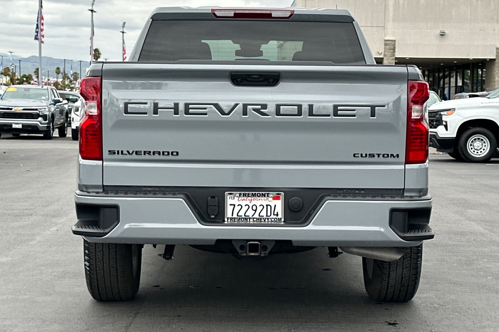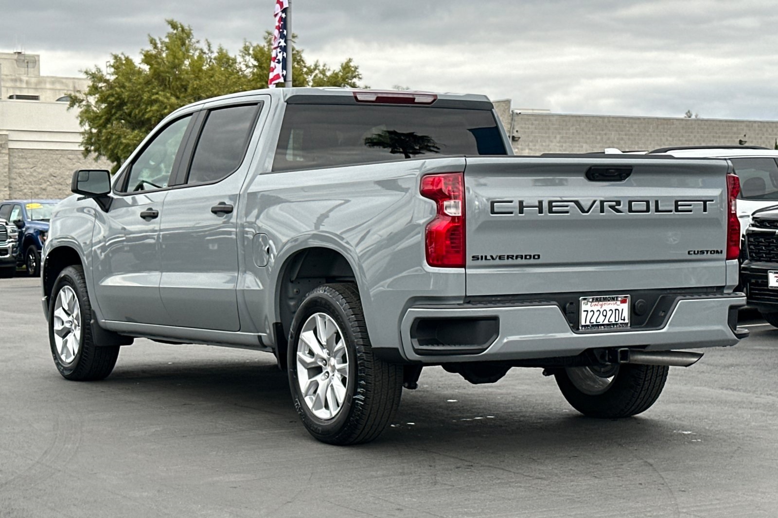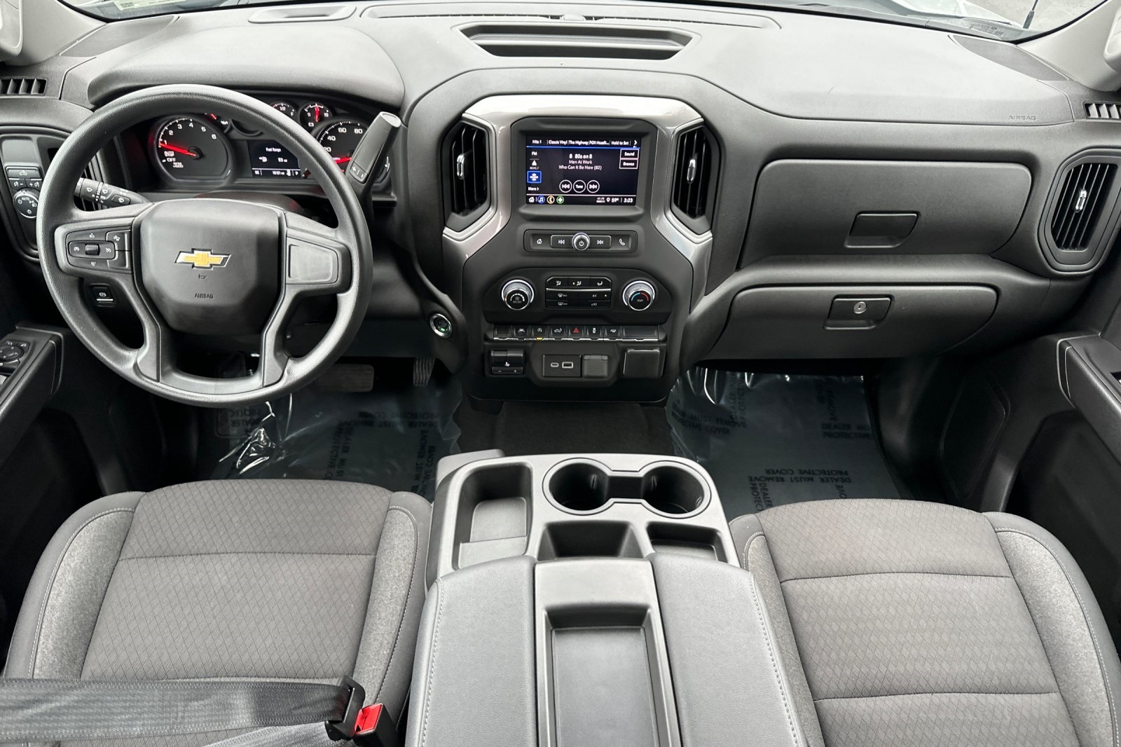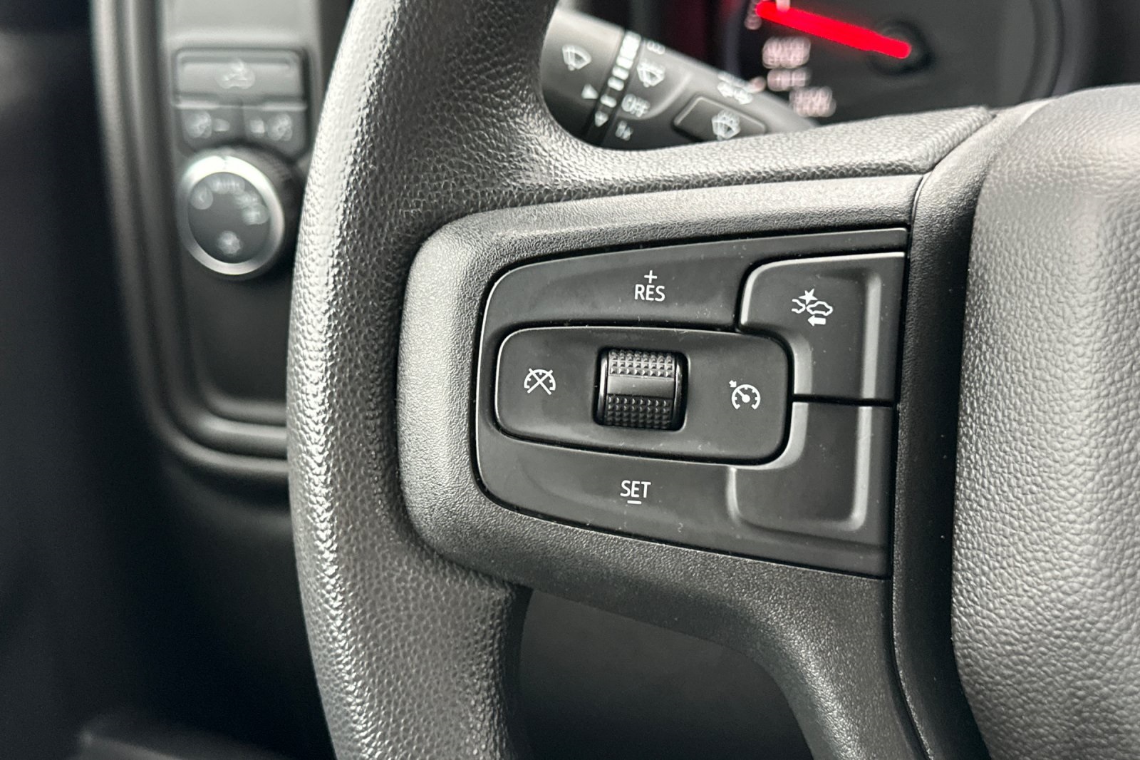CARFAX One-Owner. Clean CARFAX. Slate Gray Metallic 2025 Chevrolet Silverado 1500 Custom RWD 8-Speed Automatic 2.7L I4 Turbocharged DOHC 16V LEV3-SULEV30 310hp CARFAX ONE OWNER, NON-SMOKER, Backup Camera, Bluetooth, Alloy Wheels, Aluminum Wheels, Light Package, Power Mirror Package, Power Package, Remote Start, Tow Package, Trailer Package, Silverado 1500 Custom, 4D Crew Cab, 2.7L I4 Turbocharged DOHC 16V LEV3-SULEV30 310hp, 8-Speed Automatic, RWD, Slate Gray Metallic, Jet Black w/Cloth Seat Trim, 10-Way Power Driver Seat w/Lumbar, 120-Volt Bed Mounted Power Outlet, 120-Volt Interior Power Outlet, 3.42 Rear Axle Ratio, 3.5" Monochromatic Display Driver Info Center, 4-Wheel Disc Brakes, 40/20/40 Front Split-Bench Seat, 6 Speakers, 6-Speaker Audio System, ABS brakes, Air Conditioning, All-Weather Floor Liner (LPO), Alloy wheels, AM/FM radio: SiriusXM, Apple CarPlay/Android Auto, Auto High-beam Headlights, Automatic Emergency Braking, Black Name Plates (LPO), Black Tailgate CHEVROLET Lettering (LPO), Bluetooth® For Phone, Brake assist, Bumpers: body-color, Cloth Seat Trim, Color-Keyed Carpeting Floor Covering, Compass, Custom Convenience Package, Custom Value Package, Dark Essentials Package (LPO), Deep-Tinted Glass, Delay-off headlights, Deleted Mobile Service Plus, Driver door bin, Driver vanity mirror, Dual front impact airbags, Dual front side impact airbags, Dual Rear USB Ports (Charge Only), Electric Rear-Window Defogger, Electronic Cruise Control, Electronic Stability Control, Emergency communication system: OnStar, EZ Lift Power Lock & Release Tailgate, Following Distance Indicator, Forward Collision Alert, Front Black Bowtie Emblem (LPO), Front Center Armrest w/Storage, Front Frame-Mounted Black Recovery Hooks, Front License Plate Kit, Front Pedestrian Braking, Front reading lights, Front Rubberized Vinyl Floor Mats, Front wheel independent suspension, Fully automatic headlights, HD Rear Vision Camera, Heated door mirrors, High Capacity Suspension Package, Hitch Guidance, Illuminated entry, Integrated Trailer Brake Controller, IntelliBeam Automatic High Beam On/Off, Lane Keep Assist w/Lane Departure Warning, LED Cargo Area Lighting, Low tire pressure warning, Manual Tilt Wheel Steering Column, Occupant sensing airbag, OnStar Services Capable, Outside temperature display, Overhead airbag, Overhead console, Panic alarm, Passenger door bin, Passenger vanity mirror, Power door mirrors, Power driver seat, Power Front Windows w/Driver Express Up/Down, Power Front Windows w/Passenger Express Down, Power Rear Windows w/Express Down, Power steering, Power windows, Preferred Equipment Group 1CX, Premium audio system: Chevrolet Infotainment 3, Radio data system, Radio: Chevrolet Infotainment 3 System, Rear 60/40 Folding Bench Seat (Folds Up), Rear reading lights, Rear Rubberized-Vinyl Floor Mats, Rear step bumper, Rear window defroster, Remote Keyless Entry, Remote keyless entry, Remote Vehicle Starter System, Security system, SiriusXM Trial Subscription, Speed control, Speed-sensing steering, Split folding rear seat, Standard Tailgate, Tachometer, Teen Driver, Theft Deterrent System (Unauthorized Entry), Tilt steering wheel, Tire Pressure Monitoring System, Traction control, Trailering Package, Trip computer, Variably intermittent wipers, Voltmeter, Wheels: 20" x 9" Bright Silver Painted Aluminum, Wi-Fi Hot Spot Capable.