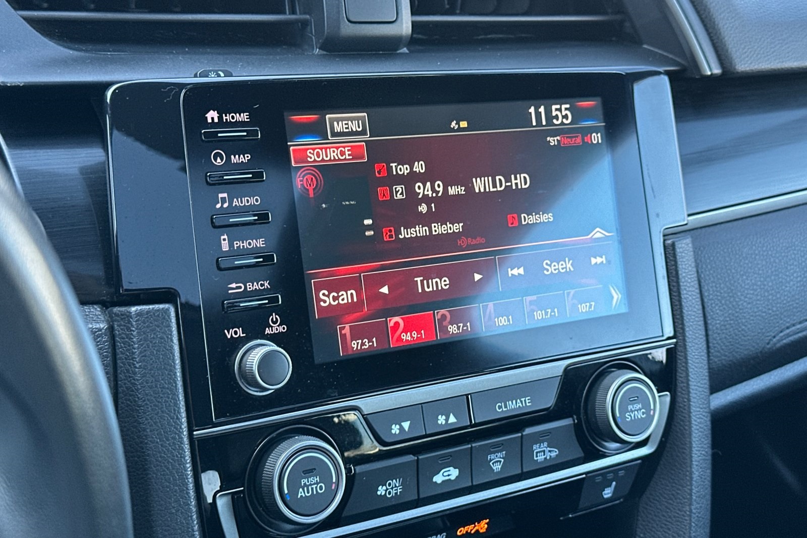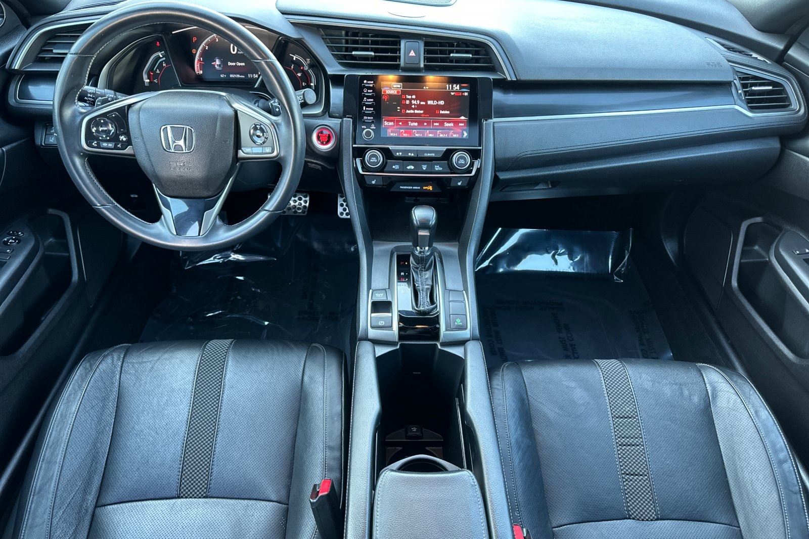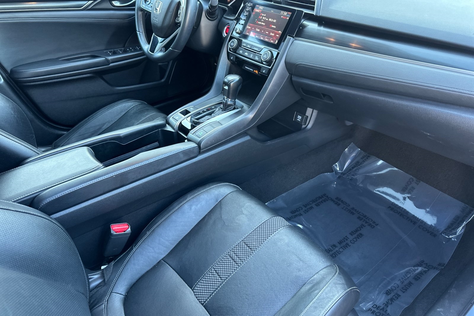 Sonic Gray Pearl 2020 Honda Civic Sport Touring FWD CVT 1.5L I4 DOHC 16V NON-SMOKER, Leather Seats, Backup Camera, Bluetooth, Moonroof, Alloy Wheels, Aluminum Wheels, Heat Package, Light Package, Power Mirror Package, Power Package, Sunroof/Moonroof, Civic Sport Touring, 4D Hatchback, 1.5L I4 DOHC 16V, CVT, FWD, Sonic Gray Pearl, Black w/Leather Seat Trim, 12 Speakers, 18" Alloy Wheels, 4-Wheel Disc Brakes, ABS brakes, Adaptive Cruise Control: Adaptive Cruise Control (ACC) with Low-Speed Follow, Air Conditioning, Alloy wheels, AM/FM radio: SiriusXM, Apple CarPlay/Android Auto, Auto High-beam Headlights, Auto-dimming Rear-View mirror, Automatic temperature control, Brake assist, Bumpers: body-color, Compass, Delay-off headlights, Driver door bin, Driver vanity mirror, Dual front impact airbags, Dual front side impact airbags, Electronic Stability Control, Emergency communication system: HondaLink, Exterior Parking Camera Rear, Forward collision: Collision Mitigation Braking System (CMBS) + FCW mitigation, Four wheel independent suspension, Front Bucket Seats, Front Center Armrest, Front dual zone A/C, Front fog lights, Front reading lights, Fully automatic headlights, Garage door transmitter: HomeLink, Heated door mirrors, Heated front seats, Heated rear seats, Illuminated entry, Lane departure: Lane Keeping Assist System (LKAS) active, Leather Shift Knob, Leather-Trimmed Seating Surfaces, Low tire pressure warning, Navigation System, Occupant sensing airbag, Outside temperature display, Overhead airbag, Overhead console, Panic alarm, Passenger door bin, Passenger vanity mirror, Power door mirrors, Power driver seat, Power moonroof, Power passenger seat, Power steering, Power windows, Radio data system, Radio: 540-Watt HD Premium Audio w/Navigation, Rain sensing wipers, Rear seat center armrest, Rear window defroster, Rear window wiper, Reclining Heated Front Bucket Seats, Remote keyless entry, Security system, Speed control, Speed-sensing steering, Speed-Sensitive Wipers, Split folding rear seat, Spoiler, Steering wheel mounted audio controls, Tachometer, Telescoping steering wheel, Tilt steering wheel, Traction control, Trip computer, Turn signal indicator mirrors, Variably intermittent wipers.