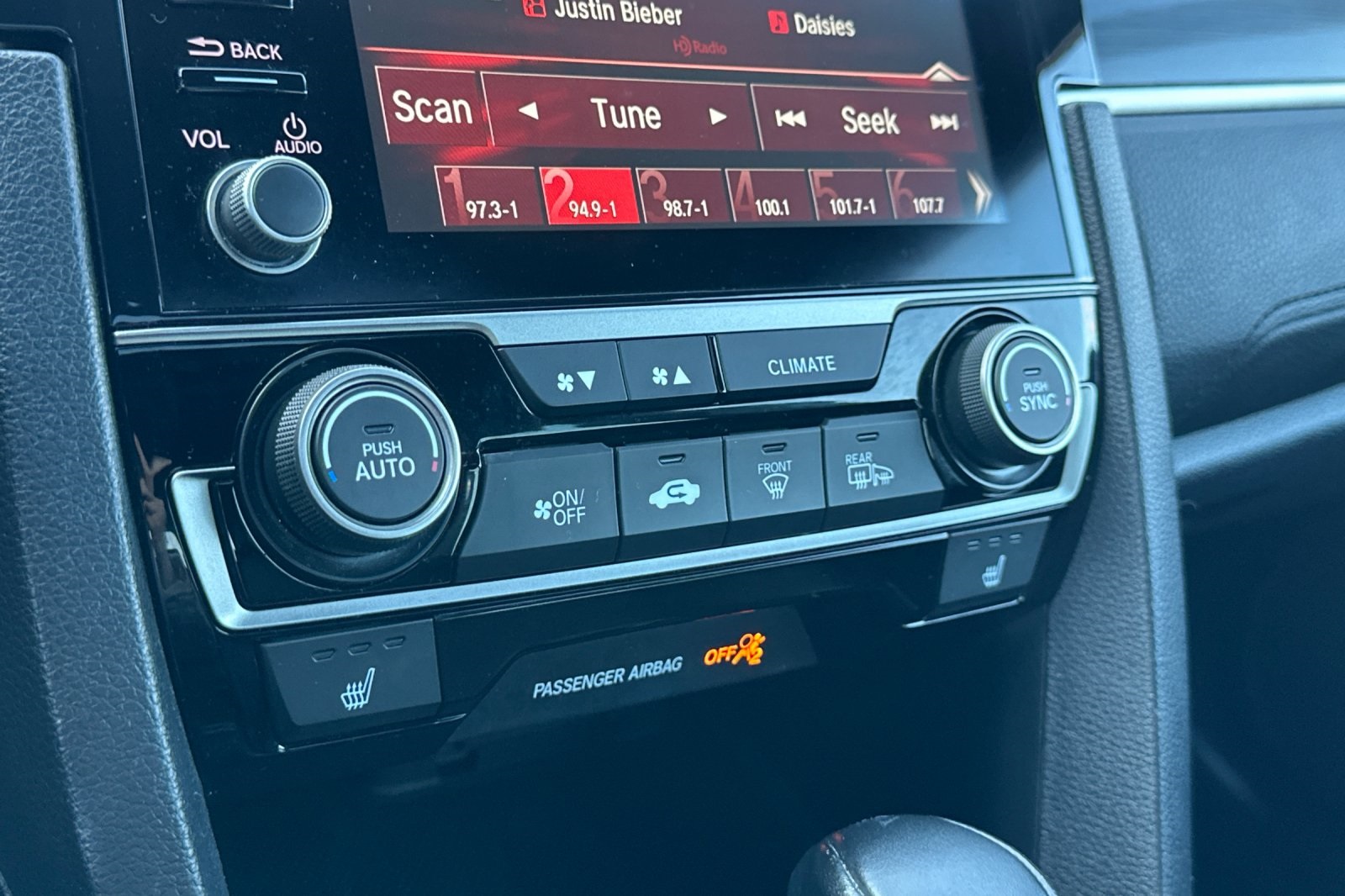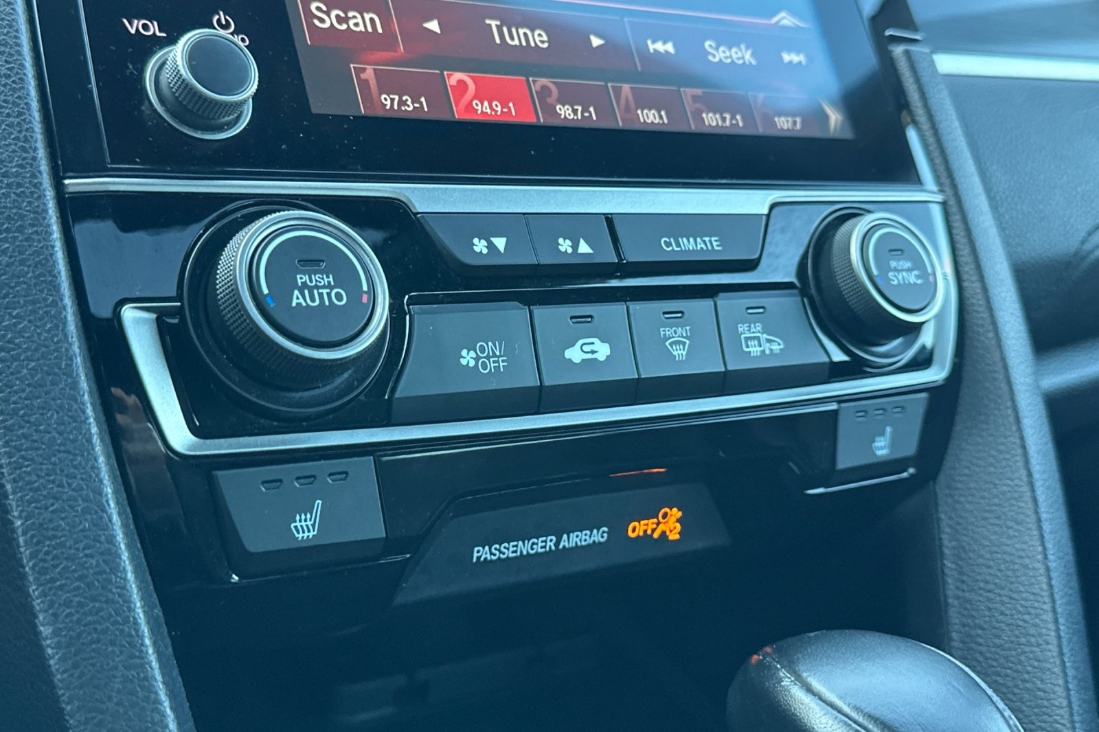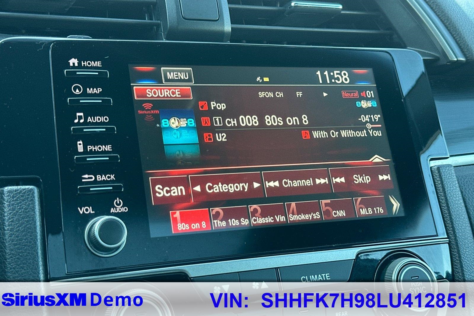 Sonic Gray Pearl 2020 Honda Civic Sport Touring FWD CVT 1.5L I4 DOHC 16V NON-SMOKER, Leather Seats, Backup Camera, Bluetooth, Moonroof, Alloy Wheels, Aluminum Wheels, Heat Package, Light Package, Power Mirror Package, Power Package, Sunroof/Moonroof, Civic Sport Touring, 4D Hatchback, 1.5L I4 DOHC 16V, CVT, FWD, Sonic Gray Pearl, Black w/Leather Seat Trim, 12 Speakers, 18" Alloy Wheels, 4-Wheel Disc Brakes, ABS brakes, Adaptive Cruise Control: Adaptive Cruise Control (ACC) with Low-Speed Follow, Air Conditioning, Alloy wheels, AM/FM radio: SiriusXM, Apple CarPlay/Android Auto, Auto High-beam Headlights, Auto-dimming Rear-View mirror, Automatic temperature control, Brake assist, Bumpers: body-color, Compass, Delay-off headlights, Driver door bin, Driver vanity mirror, Dual front impact airbags, Dual front side impact airbags, Electronic Stability Control, Emergency communication system: HondaLink, Exterior Parking Camera Rear, Forward collision: Collision Mitigation Braking System (CMBS) + FCW mitigation, Four wheel independent suspension, Front Bucket Seats, Front Center Armrest, Front dual zone A/C, Front fog lights, Front reading lights, Fully automatic headlights, Garage door transmitter: HomeLink, Heated door mirrors, Heated front seats, Heated rear seats, Illuminated entry, Lane departure: Lane Keeping Assist System (LKAS) active, Leather Shift Knob, Leather-Trimmed Seating Surfaces, Low tire pressure warning, Navigation System, Occupant sensing airbag, Outside temperature display, Overhead airbag, Overhead console, Panic alarm, Passenger door bin, Passenger vanity mirror, Power door mirrors, Power driver seat, Power moonroof, Power passenger seat, Power steering, Power windows, Radio data system, Radio: 540-Watt HD Premium Audio w/Navigation, Rain sensing wipers, Rear seat center armrest, Rear window defroster, Rear window wiper, Reclining Heated Front Bucket Seats, Remote keyless entry, Security system, Speed control, Speed-sensing steering, Speed-Sensitive Wipers, Split folding rear seat, Spoiler, Steering wheel mounted audio controls, Tachometer, Telescoping steering wheel, Tilt steering wheel, Traction control, Trip computer, Turn signal indicator mirrors, Variably intermittent wipers.