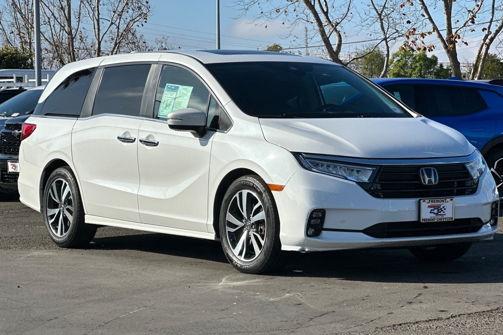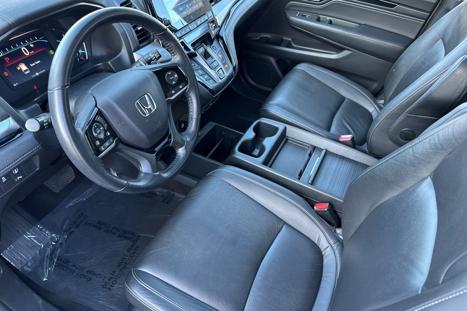 CARFAX One-Owner. Clean CARFAX. Platinum White Pearl 2023 Honda Odyssey Touring FWD 10-Speed Automatic 3.5L V6 SOHC i-VTEC 24V NON-SMOKER, Leather Seats, Backup Camera, Bluetooth, Moonroof, Alloy Wheels, Aluminum Wheels, Climate Package, Heat Package, Light Package, Power Mirror Package, Power Package, Sunroof/Moonroof, Odyssey Touring, 4D Passenger Van, 3.5L V6 SOHC i-VTEC 24V, 10-Speed Automatic, FWD, Platinum White Pearl, Black w/Leather Seat Trim, 3.61 Axle Ratio, 3rd row seats: split-bench, 4-Wheel Disc Brakes, 7 Speakers, A/V remote: CabinControl, ABS brakes, Adaptive Cruise Control: Adaptive Cruise Control (ACC) with Low-Speed Follow, Air Conditioning, Alloy wheels, AM/FM radio: SiriusXM, Anti-whiplash front head restraints, Apple CarPlay/Android Auto, Auto High-beam Headlights, Auto-dimming Rear-View mirror, Automatic temperature control, Blind Spot Information (BSI) System warning, Brake assist, Bumpers: body-color, CD player, Compass, Delay-off headlights, Driver door bin, Driver vanity mirror, Driver's Seat Mounted Armrest, Dual front impact airbags, Dual front side impact airbags, DVD-Audio, Electronic Stability Control, Emergency communication system: HondaLink, Exterior Parking Camera Rear, Four wheel independent suspension, Front Bucket Seats, Front dual zone A/C, Front fog lights, Front reading lights, Fully automatic headlights, Garage door transmitter: HomeLink, Headphones, Heated door mirrors, Heated Front Bucket Seats, Heated front seats, Illuminated entry, Knee airbag, Lane departure: Lane Keeping Assist System (LKAS) active, Leather Seat Trim, Leather steering wheel, Low tire pressure warning, Memory seat, Navigation system: Honda Satellite-Linked Navigation System, Occupant sensing airbag, Outside temperature display, Overhead airbag, Overhead console, Panic alarm, Passenger door bin, Passenger seat mounted armrest, Passenger vanity mirror, Power door mirrors, Power driver seat, Power Liftgate, Power moonroof, Power passenger seat, Power steering, Power windows, Radio data system, Radio: 160-Watt AM/FM/HD/SiriusXM Audio System, Rear air conditioning, Rear audio controls, Rear reading lights, Rear seat center armrest, Rear window defroster, Rear window wiper, Reclining 3rd row seat, Remote keyless entry, Security system, Speed control, Speed-sensing steering, Speed-Sensitive Wipers, Split folding rear seat, Spoiler, Steering wheel mounted audio controls, Tachometer, Telescoping steering wheel, Tilt steering wheel, Traction control, Trip computer, Turn signal indicator mirrors, Variably intermittent wipers, Wheels: 19" Machine-Finished Alloy.