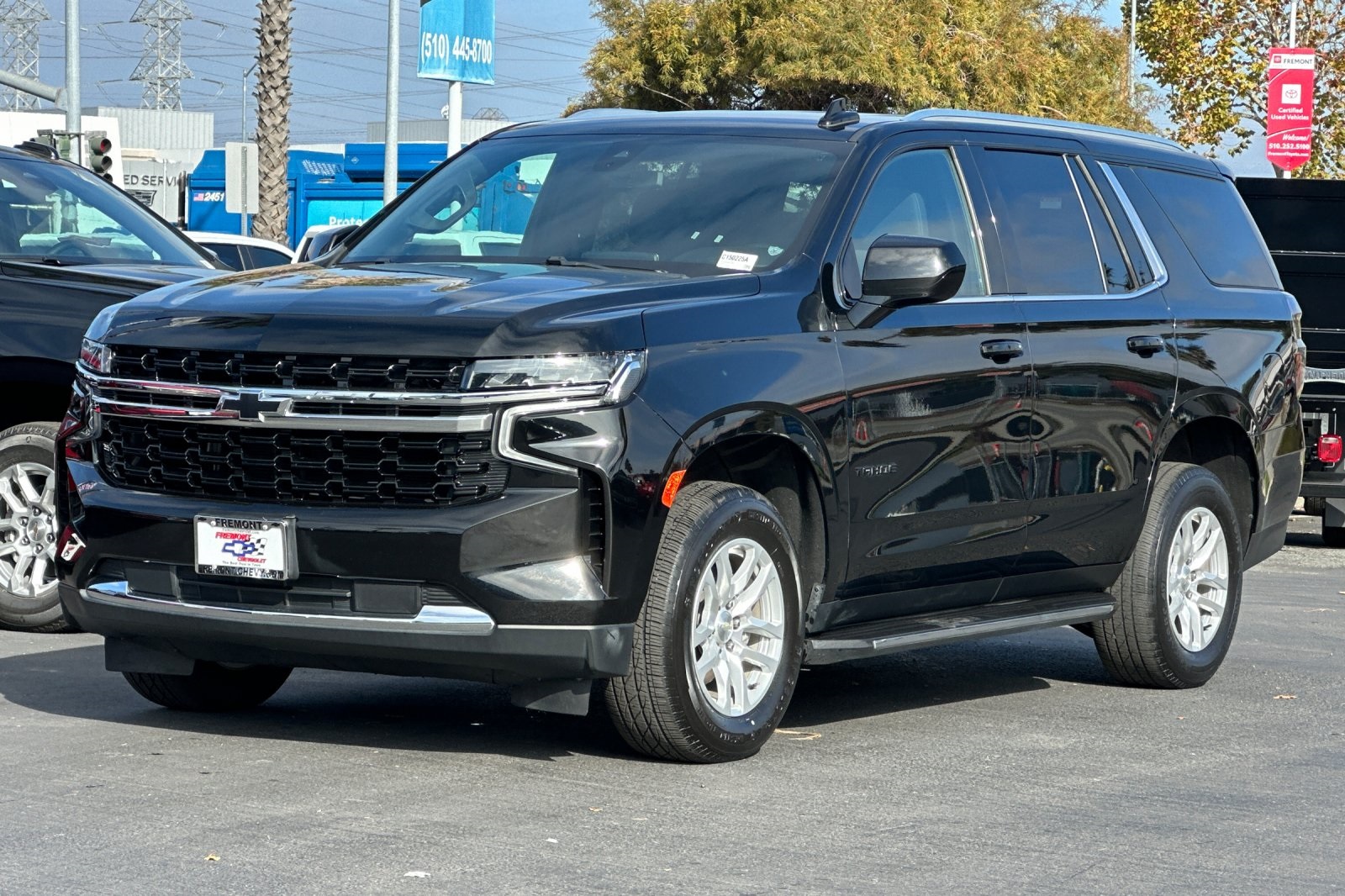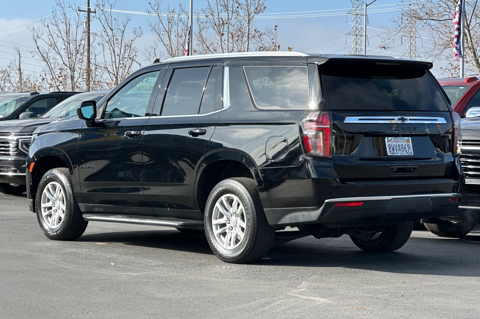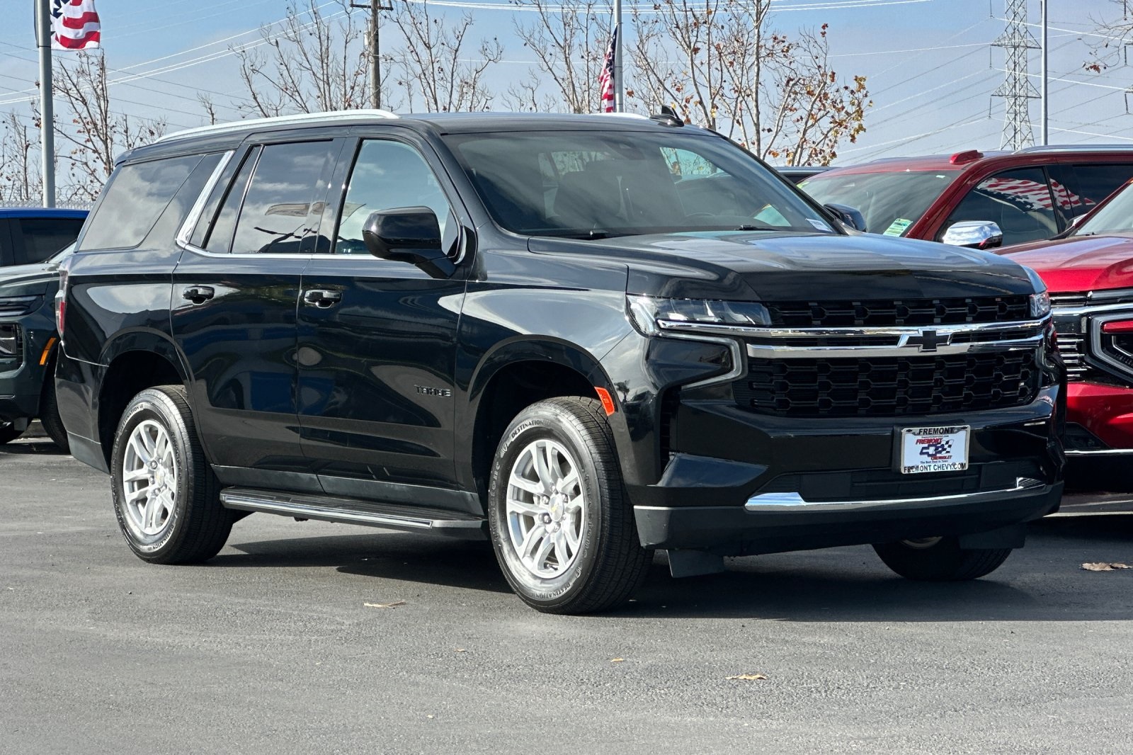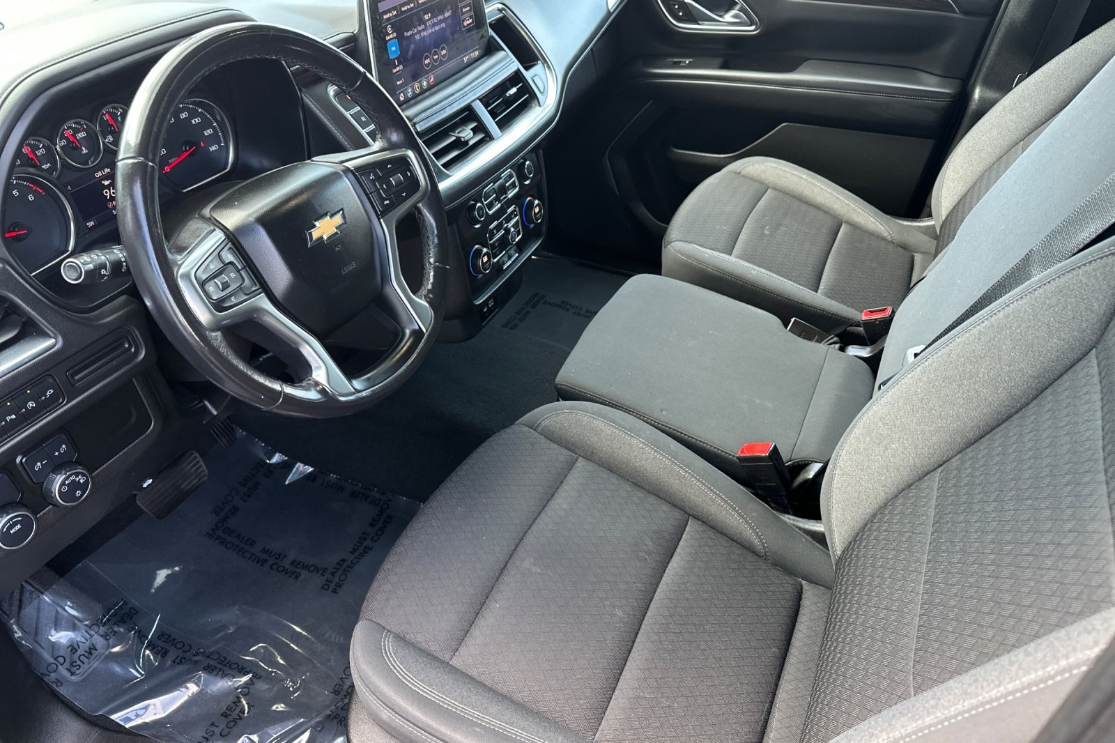 CARFAX One-Owner. Clean CARFAX. Black 2021 Chevrolet Tahoe LS RWD 10-Speed Automatic with Overdrive EcoTec3 5.3L V8 CARFAX ONE OWNER, NON-SMOKER, Backup Camera, Bluetooth, Alloy Wheels, Aluminum Wheels, Light Package, Power Mirror Package, Power Package, Remote Start, Tow Package, Trailer Package, Tahoe LS, 4D Sport Utility, EcoTec3 5.3L V8, 10-Speed Automatic with Overdrive, RWD, Black, Jet Black w/Cloth Seat Trim, 1st & 2nd Row Color-Keyed Carpeted Floor Mats, 2 USB Data Ports, 3.23 Rear Axle Ratio, 3rd row seats: split-bench, 4-Wheel Disc Brakes, 6 Speakers, 6-Speaker Audio System Feature, ABS brakes, Air Conditioning, Alloy wheels, AM/FM radio: SiriusXM with 360L, Apple CarPlay/Android Auto, Auto High-beam Headlights, Automatic temperature control, Black Name Plates (LPO), Brake assist, Bumpers: body-color, Color-Keyed Carpeting Floor Covering, Compass, Delay-off headlights, Driver & Front Outboard Passenger Airbags, Driver door bin, Driver vanity mirror, Dual front impact airbags, Dual front side impact airbags, Electronic Stability Control, Emergency communication system: OnStar and Chevrolet connected services capable, Floor Console w/Storage Area, Four wheel independent suspension, Front & Rear Black Bowtie Emblems (LPO), Front 40/20/40 Split-Bench Seat, Front Bucket Seats, Front Center Armrest, Front dual zone A/C, Front High-Back Reclining Bucket Seats, Front reading lights, Frontal Airbags, Fully automatic headlights, HD Radio, Heated door mirrors, Illuminated entry, Infotainment Display, Leather steering wheel, Leather-Wrapped Steering Wheel, LED Daytime Running Lamps, License Plate Front Mounting Package, Low tire pressure warning, Occupant sensing airbag, Outside temperature display, Overhead airbag, Overhead console, Panic alarm, Passenger door bin, Passenger vanity mirror, Power door mirrors, Power driver seat, Power passenger seat, Power steering, Power windows, Preferred Equipment Group 1LS, Premium audio system: Chevrolet Infotainment 3, Premium Cloth Seat Trim, Premium Smooth Ride Suspension, Radio: Chevrolet Infotainment 3 Plus System, Rain sensing wipers, Rear air conditioning, Rear reading lights, Rear seat center armrest, Rear window defroster, Rear window wiper, Remote keyless entry, Remote Start, Roof rack: rails only, Security system, SiriusXM Radio w/360L, Speed control, Speed-sensing steering, Split folding rear seat, Spoiler, Steering wheel mounted audio controls, Tachometer, Telescoping steering wheel, Tilt steering wheel, Traction control, Trip computer, Variably intermittent wipers, Voltmeter, Wheels: 18" x 8.5" Bright Silver Painted Aluminum.