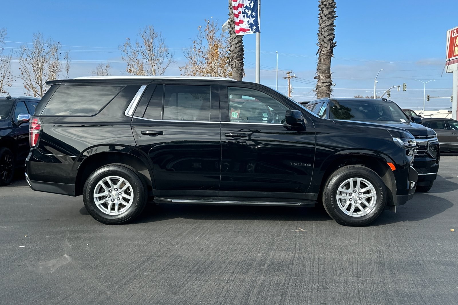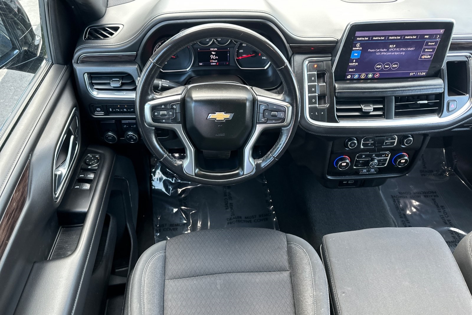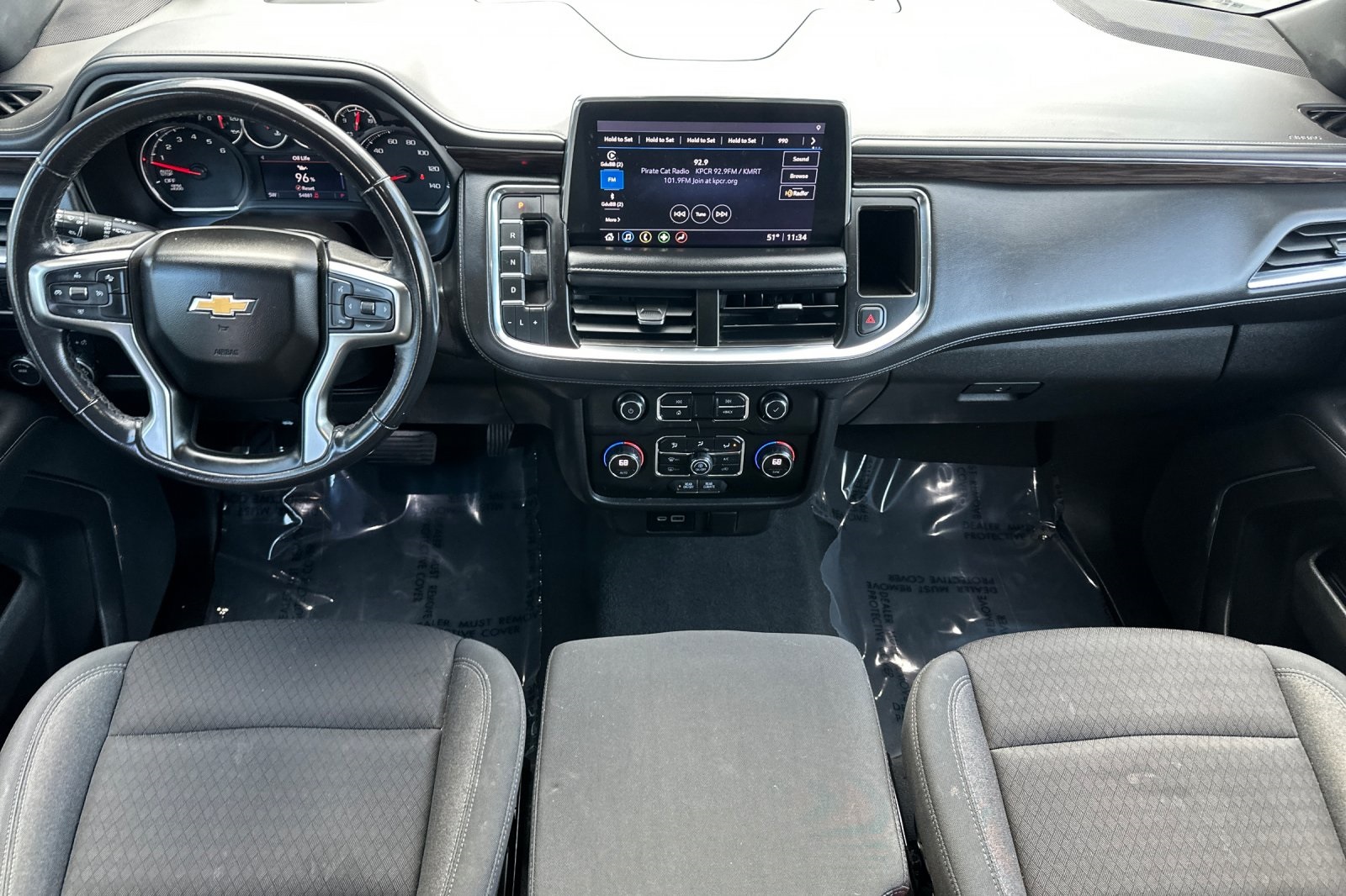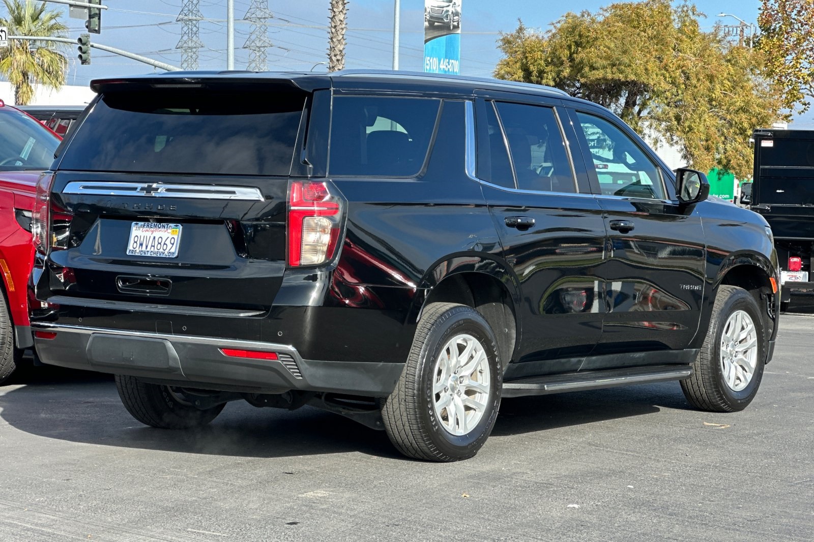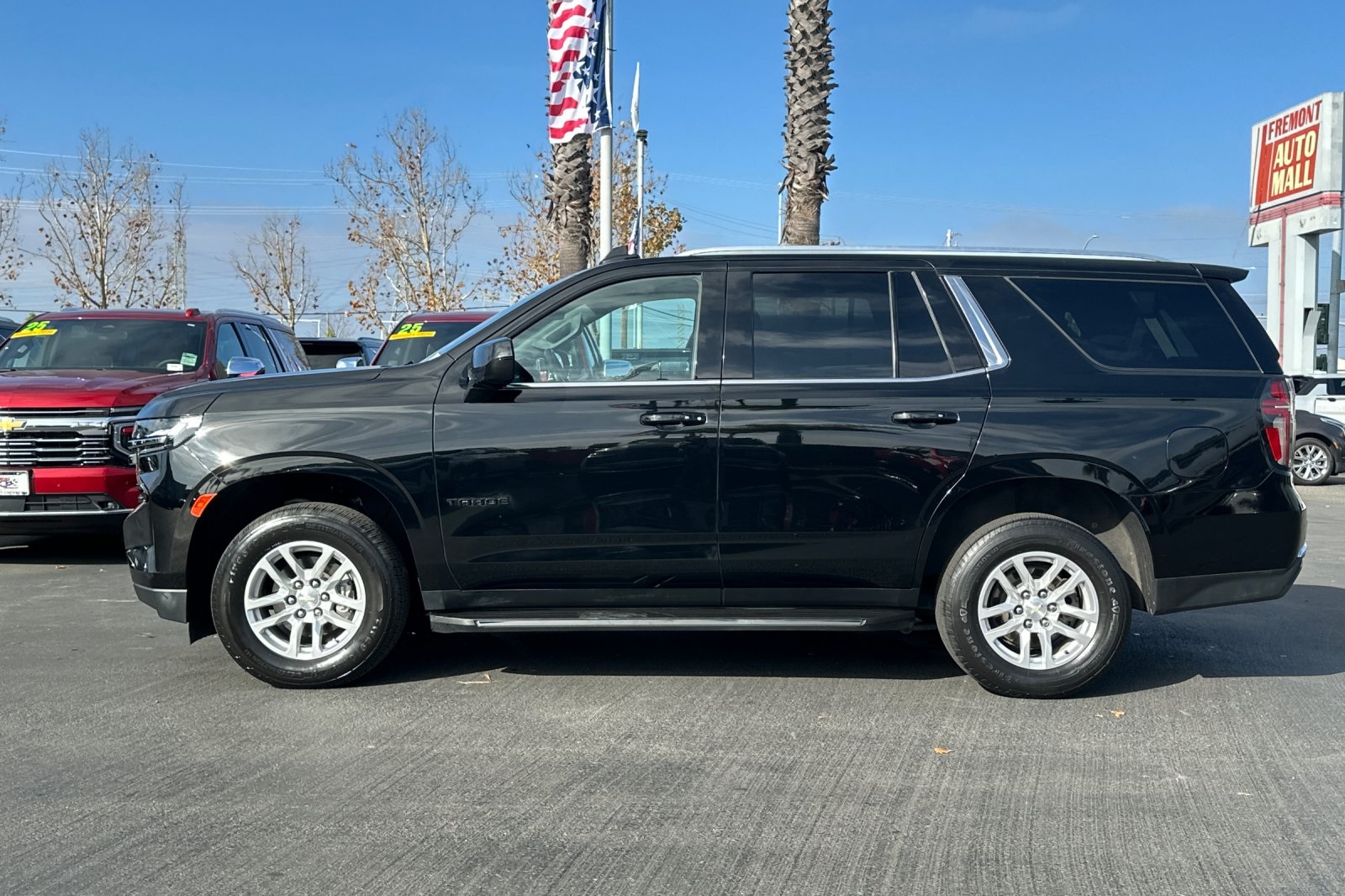 CARFAX One-Owner. Clean CARFAX. Black 2021 Chevrolet Tahoe LS RWD 10-Speed Automatic with Overdrive EcoTec3 5.3L V8 CARFAX ONE OWNER, NON-SMOKER, Backup Camera, Bluetooth, Alloy Wheels, Aluminum Wheels, Light Package, Power Mirror Package, Power Package, Remote Start, Tow Package, Trailer Package, Tahoe LS, 4D Sport Utility, EcoTec3 5.3L V8, 10-Speed Automatic with Overdrive, RWD, Black, Jet Black w/Cloth Seat Trim, 1st & 2nd Row Color-Keyed Carpeted Floor Mats, 2 USB Data Ports, 3.23 Rear Axle Ratio, 3rd row seats: split-bench, 4-Wheel Disc Brakes, 6 Speakers, 6-Speaker Audio System Feature, ABS brakes, Air Conditioning, Alloy wheels, AM/FM radio: SiriusXM with 360L, Apple CarPlay/Android Auto, Auto High-beam Headlights, Automatic temperature control, Black Name Plates (LPO), Brake assist, Bumpers: body-color, Color-Keyed Carpeting Floor Covering, Compass, Delay-off headlights, Driver & Front Outboard Passenger Airbags, Driver door bin, Driver vanity mirror, Dual front impact airbags, Dual front side impact airbags, Electronic Stability Control, Emergency communication system: OnStar and Chevrolet connected services capable, Floor Console w/Storage Area, Four wheel independent suspension, Front & Rear Black Bowtie Emblems (LPO), Front 40/20/40 Split-Bench Seat, Front Bucket Seats, Front Center Armrest, Front dual zone A/C, Front High-Back Reclining Bucket Seats, Front reading lights, Frontal Airbags, Fully automatic headlights, HD Radio, Heated door mirrors, Illuminated entry, Infotainment Display, Leather steering wheel, Leather-Wrapped Steering Wheel, LED Daytime Running Lamps, License Plate Front Mounting Package, Low tire pressure warning, Occupant sensing airbag, Outside temperature display, Overhead airbag, Overhead console, Panic alarm, Passenger door bin, Passenger vanity mirror, Power door mirrors, Power driver seat, Power passenger seat, Power steering, Power windows, Preferred Equipment Group 1LS, Premium audio system: Chevrolet Infotainment 3, Premium Cloth Seat Trim, Premium Smooth Ride Suspension, Radio: Chevrolet Infotainment 3 Plus System, Rain sensing wipers, Rear air conditioning, Rear reading lights, Rear seat center armrest, Rear window defroster, Rear window wiper, Remote keyless entry, Remote Start, Roof rack: rails only, Security system, SiriusXM Radio w/360L, Speed control, Speed-sensing steering, Split folding rear seat, Spoiler, Steering wheel mounted audio controls, Tachometer, Telescoping steering wheel, Tilt steering wheel, Traction control, Trip computer, Variably intermittent wipers, Voltmeter, Wheels: 18" x 8.5" Bright Silver Painted Aluminum.