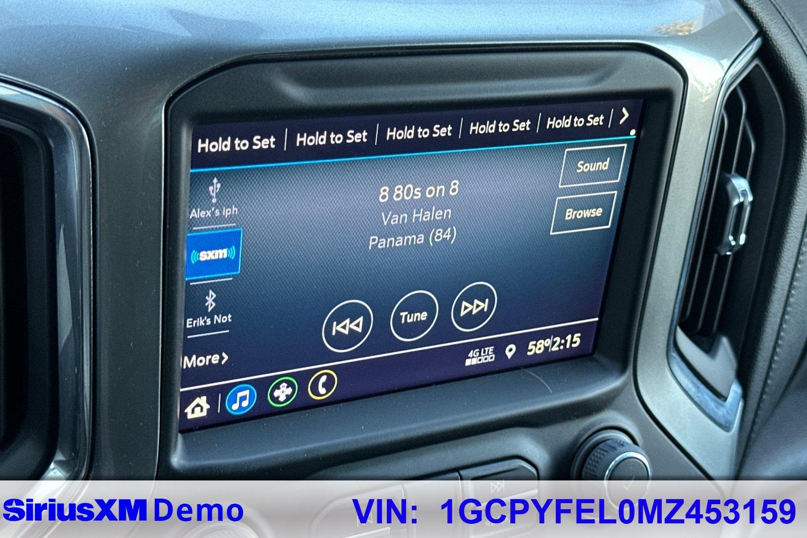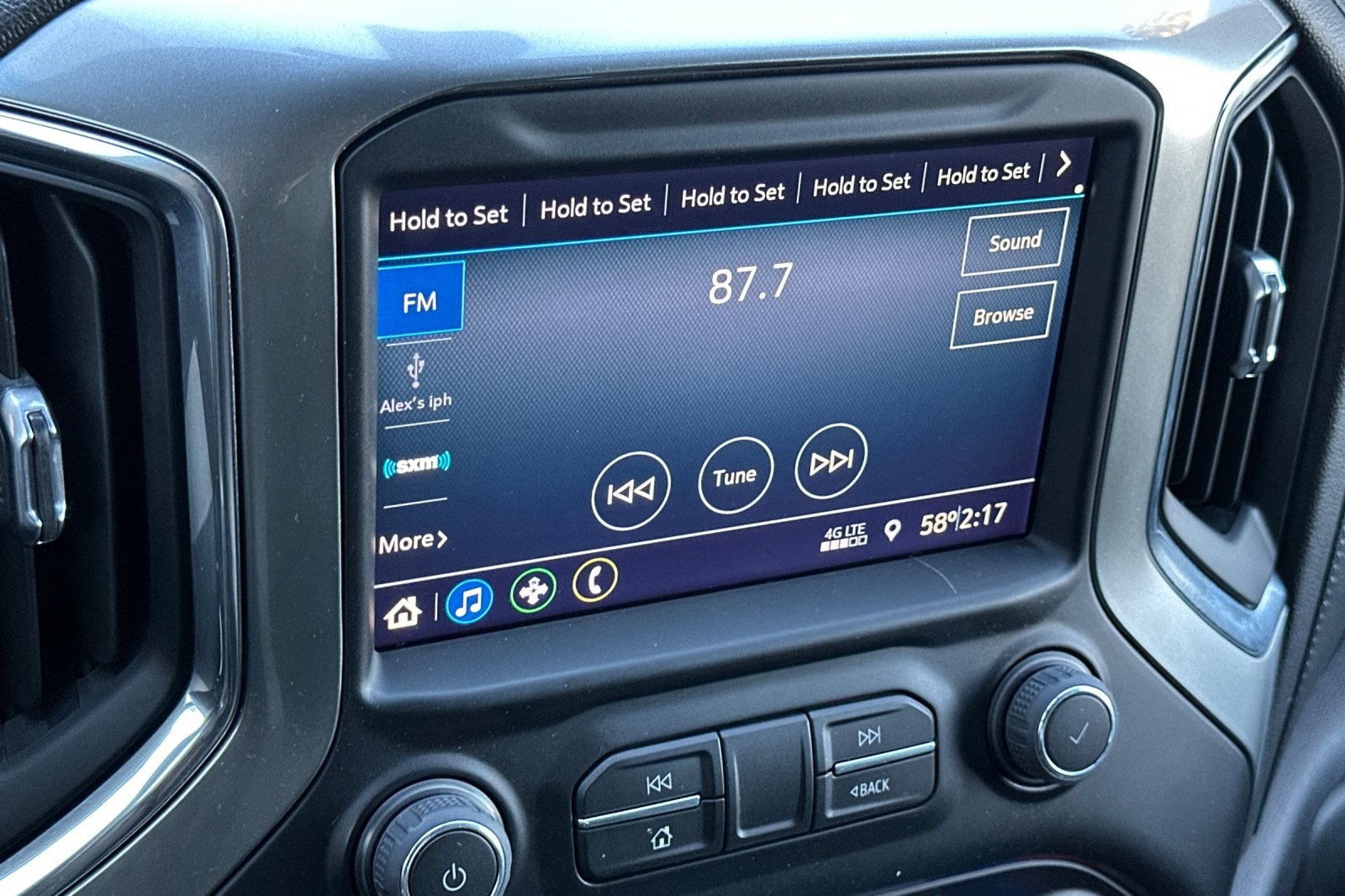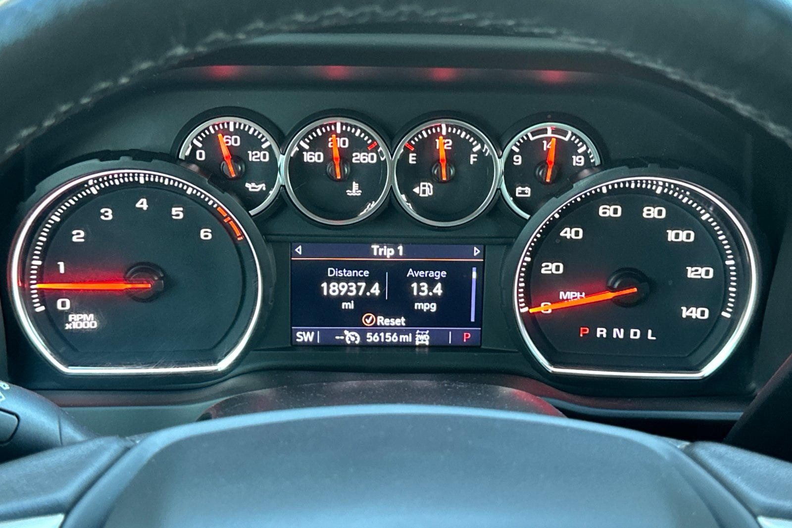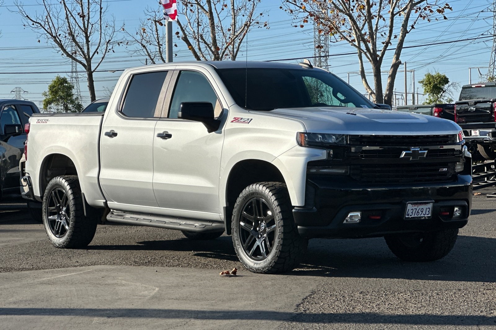 New Price! CARFAX One-Owner. Clean CARFAX. Silver Ice Metallic 2021 Chevrolet Silverado 1500 LT Trail Boss 4WD 10-Speed Automatic EcoTec3 6.2L V8 CARFAX ONE OWNER, NON-SMOKER, Backup Camera, Bluetooth, Alloy Wheels, Aluminum Wheels, Climate Package, Heat Package, Light Package, Power Mirror Package, Power Package, Tow Package, Trailer Package, Silverado 1500 LT Trail Boss, 4D Crew Cab, EcoTec3 6.2L V8, 10-Speed Automatic, 4WD, Silver Ice Metallic, Jet Black w/Cloth Seat Trim, 10-Way Power Driver Seat w/Lumbar, 12-Volt Rear Auxiliary Power Outlet, 170 Amp Alternator, 2 USB Ports (First Row), 3.23 Rear Axle Ratio, 4-Wheel Disc Brakes, 4.2" Diagonal Color Display Driver Info Center, 4G LTE Wi-Fi Hot Spot Capable, 6 Speakers, 6-Speaker Audio System, ABS brakes, Air Conditioning, All-Weather Floor Liner (LPO) (AAK), Alloy wheels, AM/FM radio: SiriusXM, Apple CarPlay/Android Auto, Auto-Locking Rear Differential, Automatic temperature control, Auxiliary External Transmission Oil Cooler, Black Name Plates (LPO), Black Tailgate CHEVROLET Lettering (LPO), Bluetooth® For Phone, Brake assist, Chevrolet Connected Access Capable, Cloth Rear Seat w/Storage Package, Cloth Seat Trim, Color-Keyed Carpeting Floor Covering, Compass, Convenience Package w/Buckets Seats, Dark Essentials Package (LPO), Deep-Tinted Glass, Delay-off headlights, Driver door bin, Driver vanity mirror, Dual Exhaust w/Polished Outlets, Dual front impact airbags, Dual front side impact airbags, Dual-Zone Automatic Climate Control, Electric Rear-Window Defogger, Electrical Lock Control Steering Column, Electronic Cruise Control, Electronic Stability Control, EZ Lift Power Lock & Release Tailgate, Floor Mounted Center Console, Front Bucket Seats, Front Center Armrest w/Storage, Front dual zone A/C, Front fog lights, Front LED Fog Lamps, Front License Plate Kit, Front reading lights, Front wheel independent suspension, Fully automatic headlights, Heated door mirrors, Heated Driver & Front Outboard Passenger Seats, Heated front seats, Heated Steering Wheel, Heated steering wheel, Heavy-Duty Air Filter, High Gloss Black Grille, High Gloss Black Mirror Caps, Hill Descent Control, Hitch Guidance, Illuminated entry, Keyless Open & Start, Leather Wrapped Steering Wheel, LED Cargo Area Lighting, LED Reflector Headlamps, Low tire pressure warning, Manual Tilt/Telescoping Steering Column, Not Equipped w/Automatic Stop/Start, Occupant sensing airbag, Off-Road Assist Steps (LPO), Off-Road Suspension w/2" Lift, OnStar & Chevrolet Connected Services Capable, Outside temperature display, Overhead airbag, Overhead console, Panic alarm, Passenger door bin, Passenger vanity mirror, Performance Red Recovery Hooks, Power Door Locks, Power door mirrors, Power driver seat, Power Front Windows w/Driver Express Up/Down, Power Front Windows w/Passenger Express Down, Power Rear Windows w/Express Down, Power steering, Power windows, Preferred Equipment Group 2LT, Premium audio system: Chevrolet Infotainment 3, Radio data system, Radio: Chevrolet Infotainment 3 System, Rear Dual USB Charging-Only Ports, Rear reading lights, Rear seat center armrest, Rear step bumper, Rear Vision Camera, Rear window defroster, Remote keyless entry, Remote Vehicle Starter System, Security system, SiriusXM Radio, Speed control, Speed-sensing steering, Split folding rear seat, Standard Tailgate, Steering Wheel Audio Controls, Steering wheel mounted audio controls, Suspension Package, Tachometer, Telescoping steering wheel, Theft Deterrent System (Unauthorized Entry), Tilt steering wheel, Traction control, Trailering Package, Trip computer, Underseat Storage (LPO), Variably intermittent wipers, Voltmeter, Wheel Locks (Set of 4) (LPO), Wheels: 18" x 8.5" Black Painted Aluminum, Wheels: 20" x 9" High Gloss Black Painted Alum.