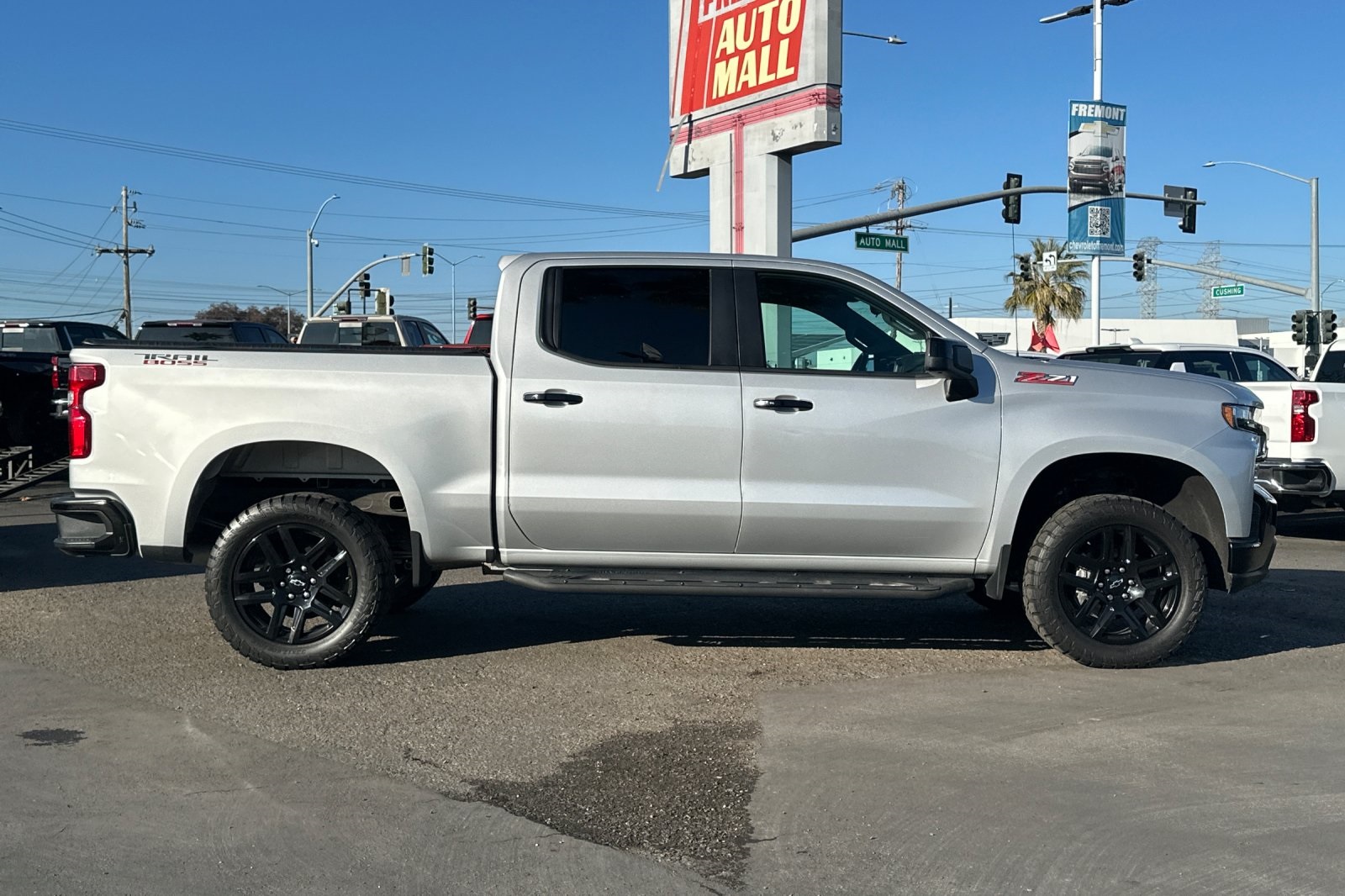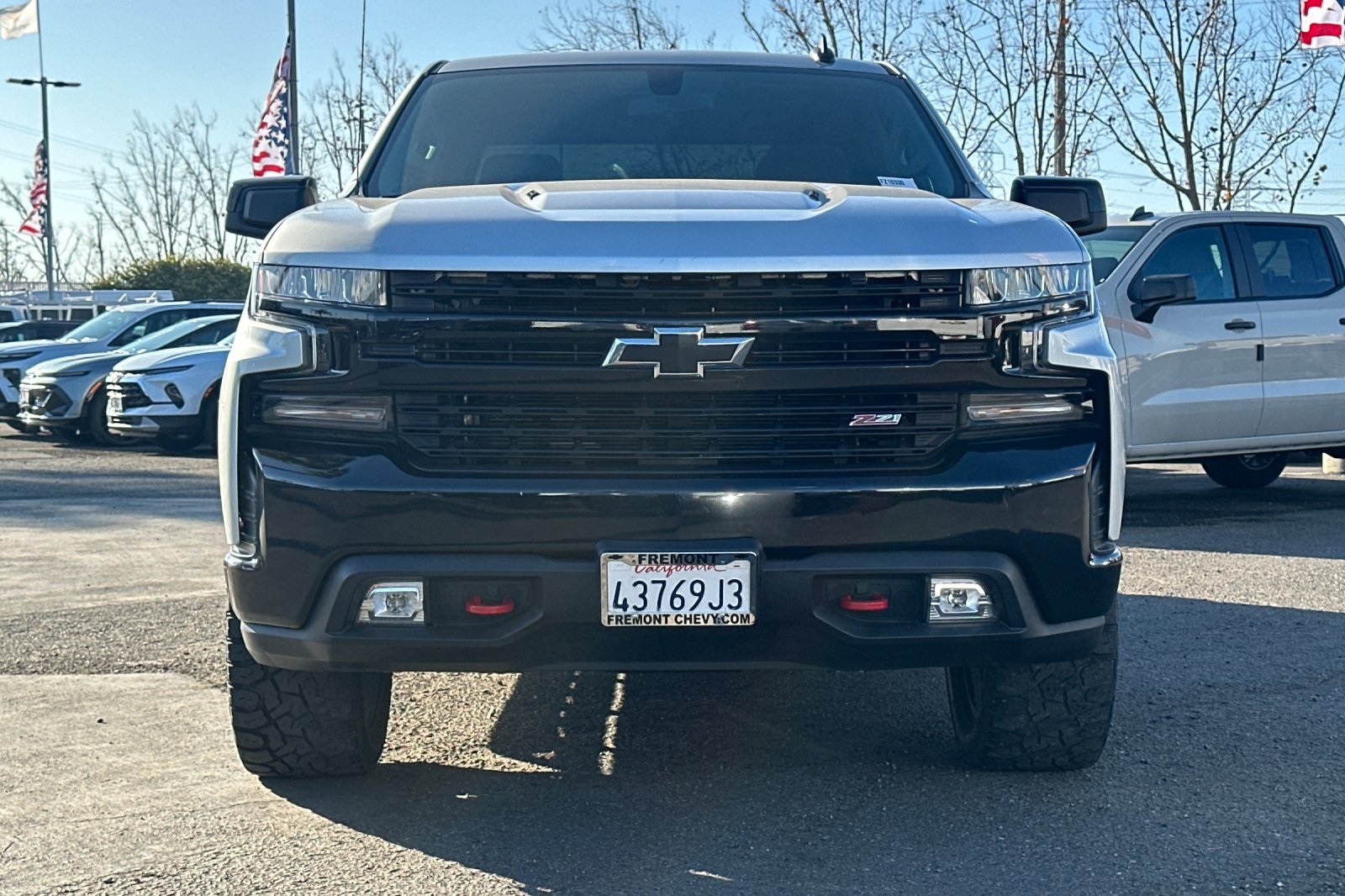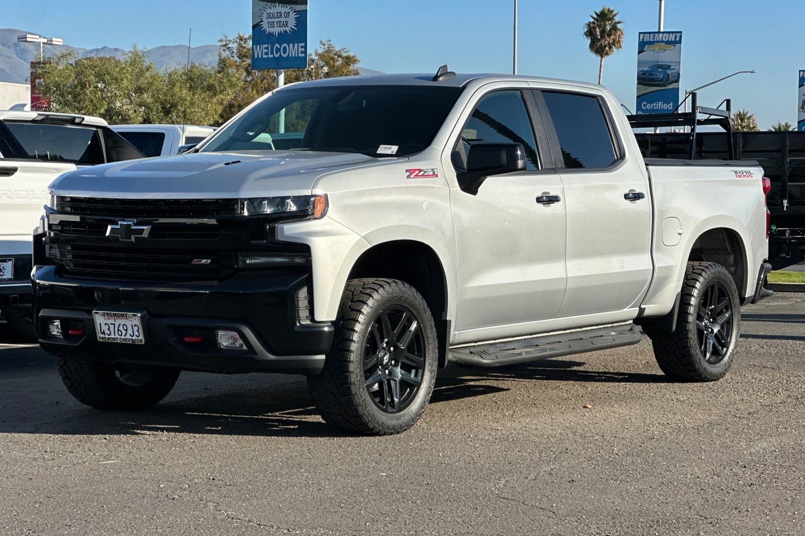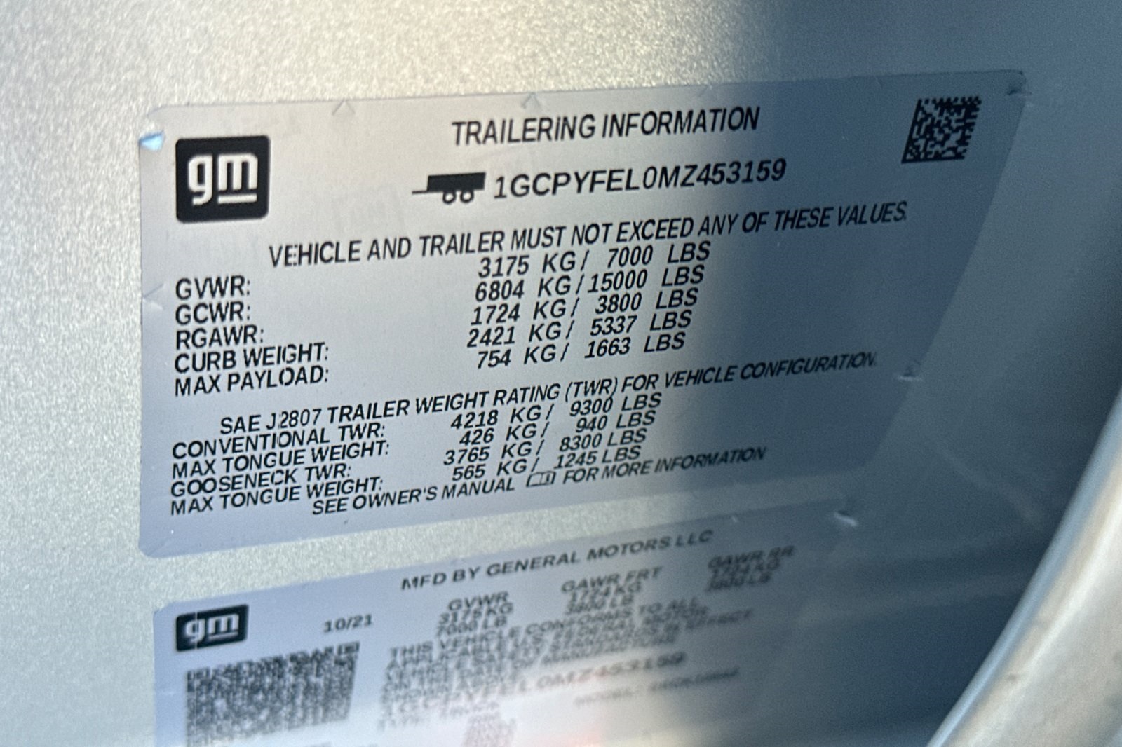 New Price! CARFAX One-Owner. Clean CARFAX. Silver Ice Metallic 2021 Chevrolet Silverado 1500 LT Trail Boss 4WD 10-Speed Automatic EcoTec3 6.2L V8 CARFAX ONE OWNER, NON-SMOKER, Backup Camera, Bluetooth, Alloy Wheels, Aluminum Wheels, Climate Package, Heat Package, Light Package, Power Mirror Package, Power Package, Tow Package, Trailer Package, Silverado 1500 LT Trail Boss, 4D Crew Cab, EcoTec3 6.2L V8, 10-Speed Automatic, 4WD, Silver Ice Metallic, Jet Black w/Cloth Seat Trim, 10-Way Power Driver Seat w/Lumbar, 12-Volt Rear Auxiliary Power Outlet, 170 Amp Alternator, 2 USB Ports (First Row), 3.23 Rear Axle Ratio, 4-Wheel Disc Brakes, 4.2" Diagonal Color Display Driver Info Center, 4G LTE Wi-Fi Hot Spot Capable, 6 Speakers, 6-Speaker Audio System, ABS brakes, Air Conditioning, All-Weather Floor Liner (LPO) (AAK), Alloy wheels, AM/FM radio: SiriusXM, Apple CarPlay/Android Auto, Auto-Locking Rear Differential, Automatic temperature control, Auxiliary External Transmission Oil Cooler, Black Name Plates (LPO), Black Tailgate CHEVROLET Lettering (LPO), Bluetooth® For Phone, Brake assist, Chevrolet Connected Access Capable, Cloth Rear Seat w/Storage Package, Cloth Seat Trim, Color-Keyed Carpeting Floor Covering, Compass, Convenience Package w/Buckets Seats, Dark Essentials Package (LPO), Deep-Tinted Glass, Delay-off headlights, Driver door bin, Driver vanity mirror, Dual Exhaust w/Polished Outlets, Dual front impact airbags, Dual front side impact airbags, Dual-Zone Automatic Climate Control, Electric Rear-Window Defogger, Electrical Lock Control Steering Column, Electronic Cruise Control, Electronic Stability Control, EZ Lift Power Lock & Release Tailgate, Floor Mounted Center Console, Front Bucket Seats, Front Center Armrest w/Storage, Front dual zone A/C, Front fog lights, Front LED Fog Lamps, Front License Plate Kit, Front reading lights, Front wheel independent suspension, Fully automatic headlights, Heated door mirrors, Heated Driver & Front Outboard Passenger Seats, Heated front seats, Heated Steering Wheel, Heated steering wheel, Heavy-Duty Air Filter, High Gloss Black Grille, High Gloss Black Mirror Caps, Hill Descent Control, Hitch Guidance, Illuminated entry, Keyless Open & Start, Leather Wrapped Steering Wheel, LED Cargo Area Lighting, LED Reflector Headlamps, Low tire pressure warning, Manual Tilt/Telescoping Steering Column, Not Equipped w/Automatic Stop/Start, Occupant sensing airbag, Off-Road Assist Steps (LPO), Off-Road Suspension w/2" Lift, OnStar & Chevrolet Connected Services Capable, Outside temperature display, Overhead airbag, Overhead console, Panic alarm, Passenger door bin, Passenger vanity mirror, Performance Red Recovery Hooks, Power Door Locks, Power door mirrors, Power driver seat, Power Front Windows w/Driver Express Up/Down, Power Front Windows w/Passenger Express Down, Power Rear Windows w/Express Down, Power steering, Power windows, Preferred Equipment Group 2LT, Premium audio system: Chevrolet Infotainment 3, Radio data system, Radio: Chevrolet Infotainment 3 System, Rear Dual USB Charging-Only Ports, Rear reading lights, Rear seat center armrest, Rear step bumper, Rear Vision Camera, Rear window defroster, Remote keyless entry, Remote Vehicle Starter System, Security system, SiriusXM Radio, Speed control, Speed-sensing steering, Split folding rear seat, Standard Tailgate, Steering Wheel Audio Controls, Steering wheel mounted audio controls, Suspension Package, Tachometer, Telescoping steering wheel, Theft Deterrent System (Unauthorized Entry), Tilt steering wheel, Traction control, Trailering Package, Trip computer, Underseat Storage (LPO), Variably intermittent wipers, Voltmeter, Wheel Locks (Set of 4) (LPO), Wheels: 18" x 8.5" Black Painted Aluminum, Wheels: 20" x 9" High Gloss Black Painted Alum.