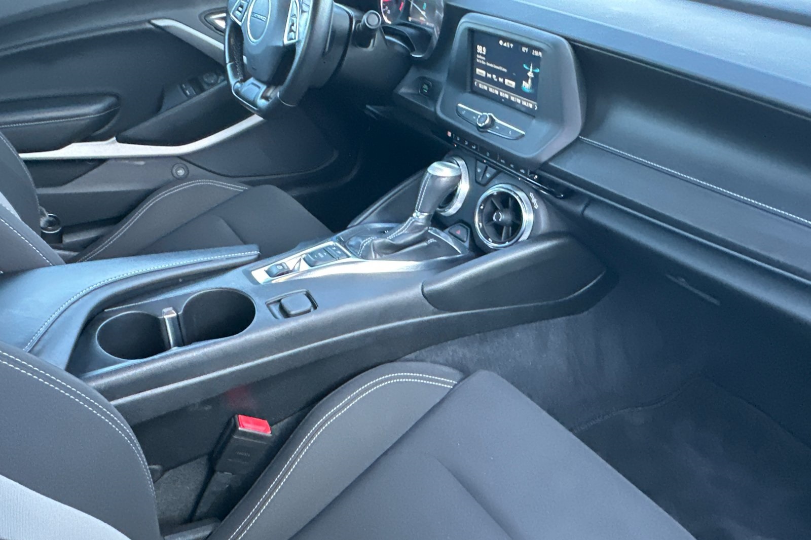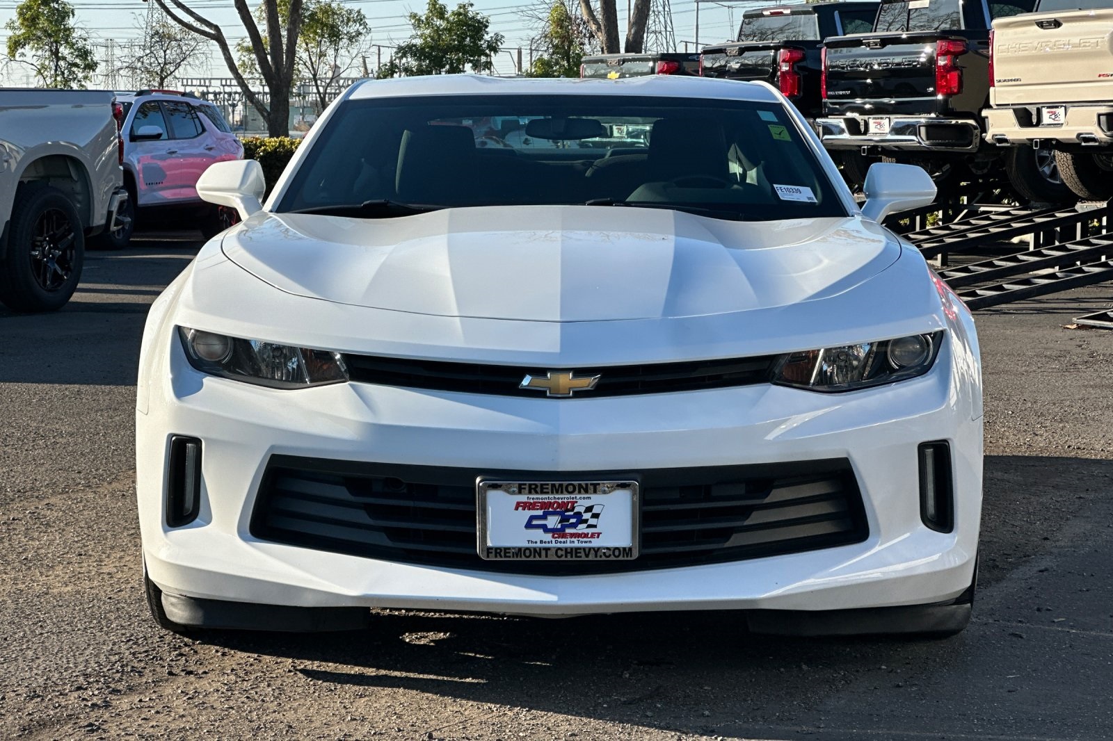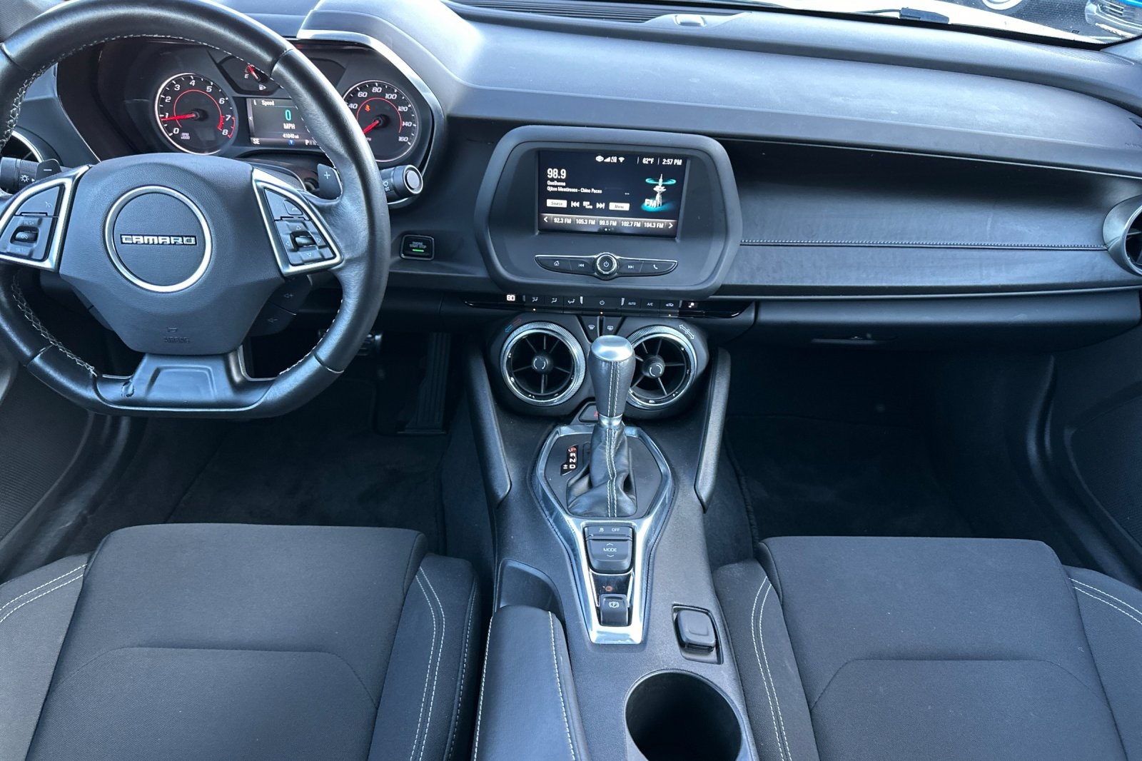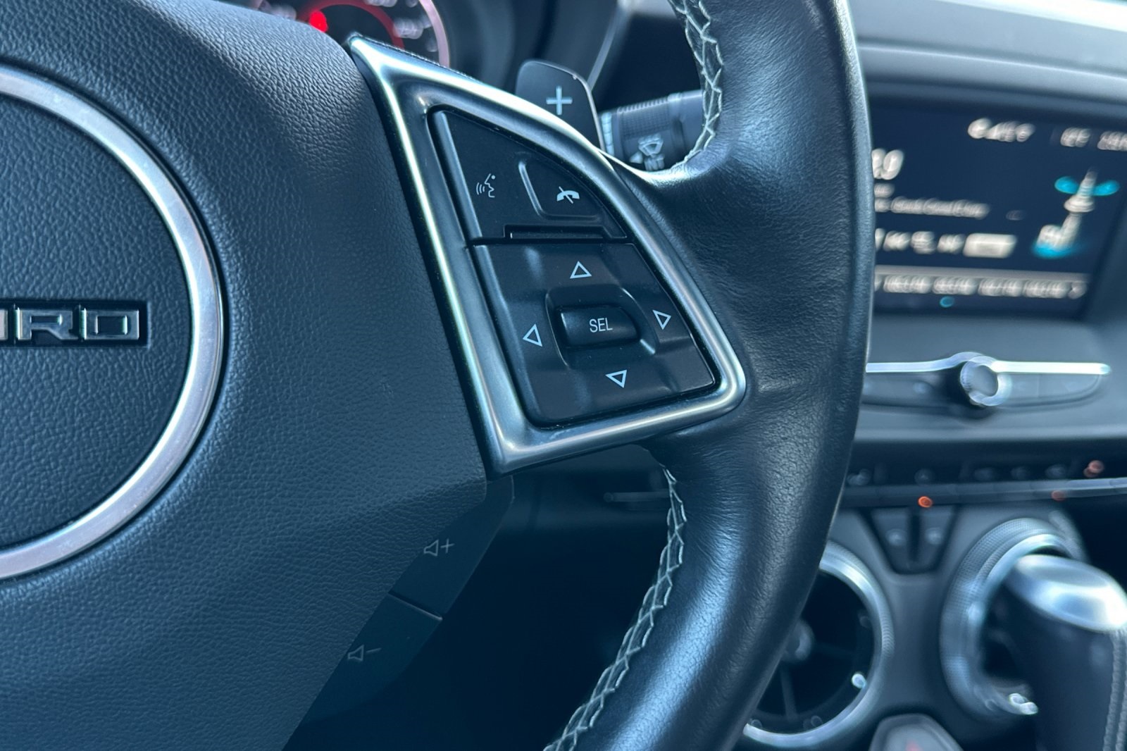 Clean CARFAX. Summit White 2018 Chevrolet Camaro 1LT RWD 8-Speed Automatic 2.0L Turbocharged NON-SMOKER, Backup Camera, Bluetooth, Alloy Wheels, Aluminum Wheels, Light Package, Power Mirror Package, Power Package, Remote Start, Camaro 1LT, 2D Coupe, 2.0L Turbocharged, 8-Speed Automatic, RWD, Summit White, Jet Black w/Cloth Seat Trim, 18" Silver-Painted Aluminum Wheels, 2 USB Ports & Auxiliary Input Jack, 4-Wheel Disc Brakes, 6 Speakers, 6-Speaker Audio System Feature, 6-Way Power Front Passenger Seat Adjuster, 8-Way Power Driver Seat Adjuster, ABS brakes, Air Conditioning, All-Weather Cargo Mat w/Camaro Logo (LPO), Alloy wheels, AM/FM radio: SiriusXM, Apple CarPlay/Android Auto, Automatic temperature control, Brake assist, Bumpers: body-color, Cargo Net, Cloth Seat Trim, Compass, Delay-off headlights, Driver door bin, Driver vanity mirror, Dual front impact airbags, Dual front side impact airbags, Electronic Stability Control, Emergency communication system: OnStar Guidance, Exterior Parking Camera Rear, Four wheel independent suspension, Front Bucket Seats, Front Center Armrest, Front fog lights, Front License Plate Bracket, Front reading lights, Front Sport Bucket Seats, Fully automatic headlights, Illuminated entry, Knee airbag, Leather Shift Knob, Low tire pressure warning, Occupant sensing airbag, Overhead airbag, Panic alarm, Passenger door bin, Passenger vanity mirror, Power door mirrors, Power driver seat, Power passenger seat, Power steering, Power windows, Preferred Equipment Group 1LT, Premium audio system: Chevrolet MyLink, Radio data system, Radio: AM/FM w/Chevrolet MyLink, Rear window defroster, Remote keyless entry, Security system, SiriusXM Satellite Radio, Speed control, Speed-sensing steering, Steering wheel mounted audio controls, Tachometer, Telescoping steering wheel, Tilt steering wheel, Tire Inflation Kit, Traction control, Trip computer, Variably intermittent wipers, Voltmeter.