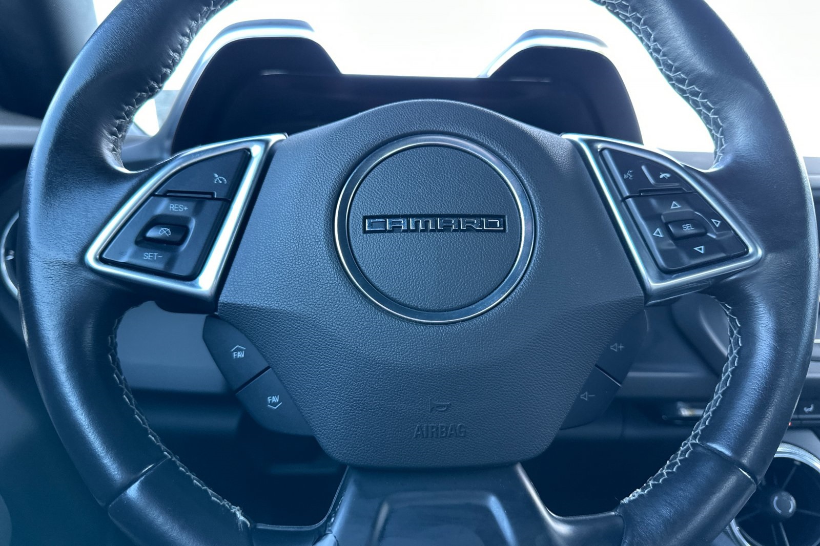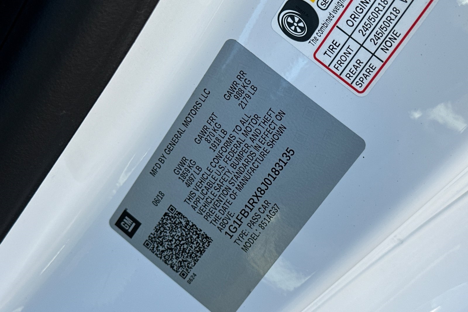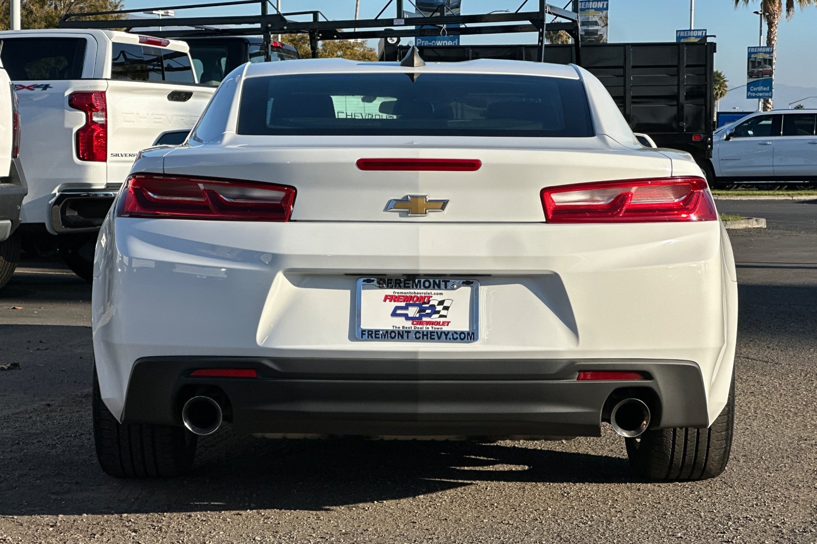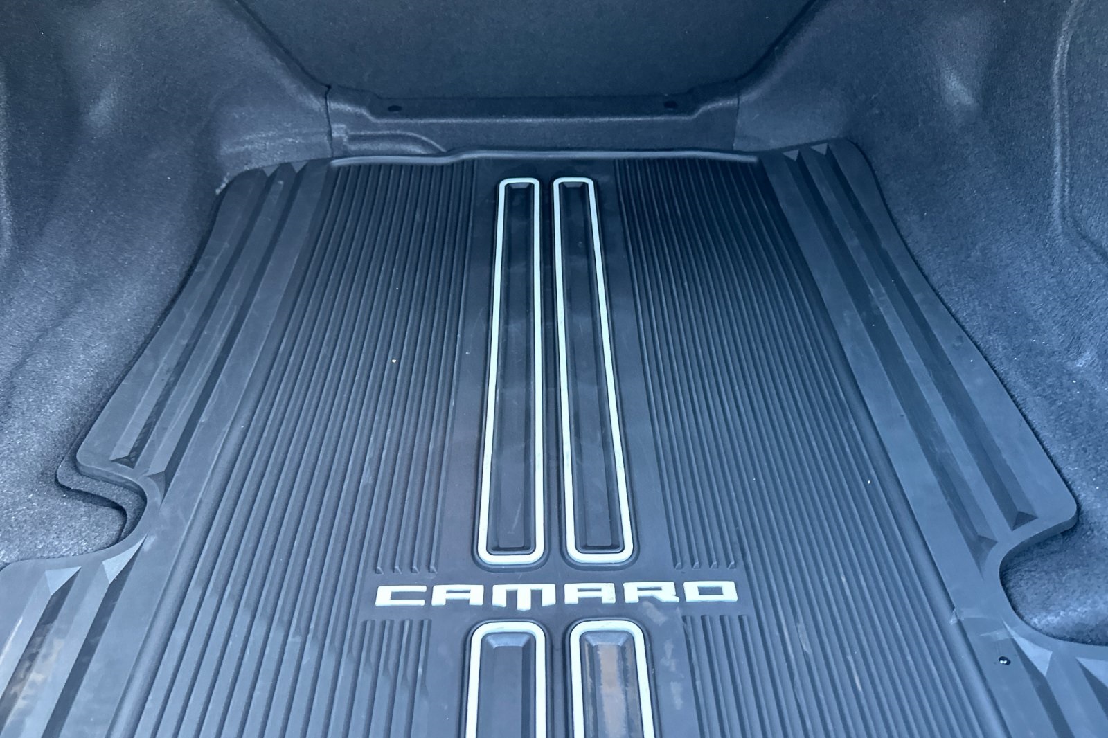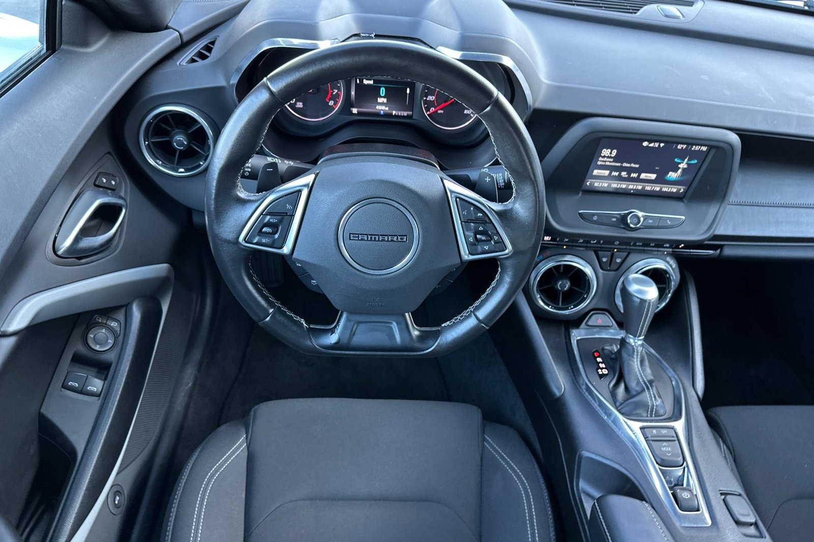 Clean CARFAX. Summit White 2018 Chevrolet Camaro 1LT RWD 8-Speed Automatic 2.0L Turbocharged NON-SMOKER, Backup Camera, Bluetooth, Alloy Wheels, Aluminum Wheels, Light Package, Power Mirror Package, Power Package, Remote Start, Camaro 1LT, 2D Coupe, 2.0L Turbocharged, 8-Speed Automatic, RWD, Summit White, Jet Black w/Cloth Seat Trim, 18" Silver-Painted Aluminum Wheels, 2 USB Ports & Auxiliary Input Jack, 4-Wheel Disc Brakes, 6 Speakers, 6-Speaker Audio System Feature, 6-Way Power Front Passenger Seat Adjuster, 8-Way Power Driver Seat Adjuster, ABS brakes, Air Conditioning, All-Weather Cargo Mat w/Camaro Logo (LPO), Alloy wheels, AM/FM radio: SiriusXM, Apple CarPlay/Android Auto, Automatic temperature control, Brake assist, Bumpers: body-color, Cargo Net, Cloth Seat Trim, Compass, Delay-off headlights, Driver door bin, Driver vanity mirror, Dual front impact airbags, Dual front side impact airbags, Electronic Stability Control, Emergency communication system: OnStar Guidance, Exterior Parking Camera Rear, Four wheel independent suspension, Front Bucket Seats, Front Center Armrest, Front fog lights, Front License Plate Bracket, Front reading lights, Front Sport Bucket Seats, Fully automatic headlights, Illuminated entry, Knee airbag, Leather Shift Knob, Low tire pressure warning, Occupant sensing airbag, Overhead airbag, Panic alarm, Passenger door bin, Passenger vanity mirror, Power door mirrors, Power driver seat, Power passenger seat, Power steering, Power windows, Preferred Equipment Group 1LT, Premium audio system: Chevrolet MyLink, Radio data system, Radio: AM/FM w/Chevrolet MyLink, Rear window defroster, Remote keyless entry, Security system, SiriusXM Satellite Radio, Speed control, Speed-sensing steering, Steering wheel mounted audio controls, Tachometer, Telescoping steering wheel, Tilt steering wheel, Tire Inflation Kit, Traction control, Trip computer, Variably intermittent wipers, Voltmeter.