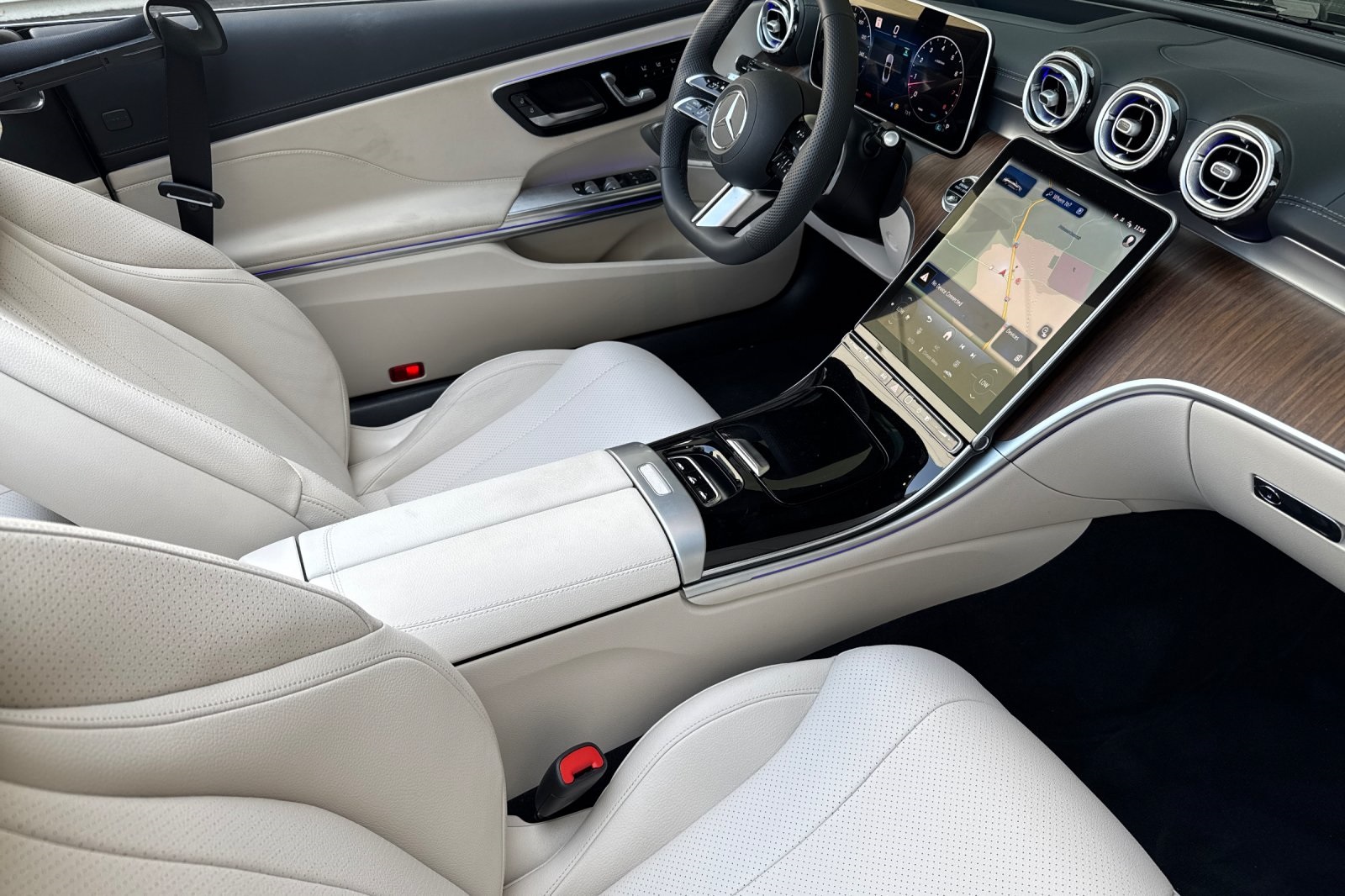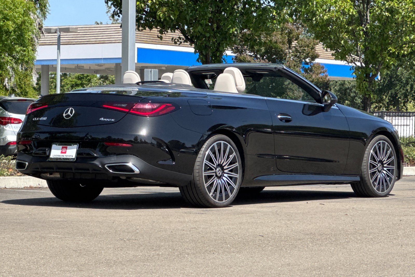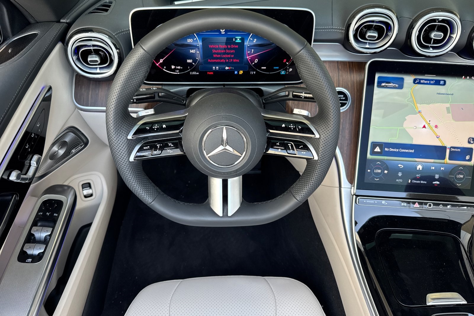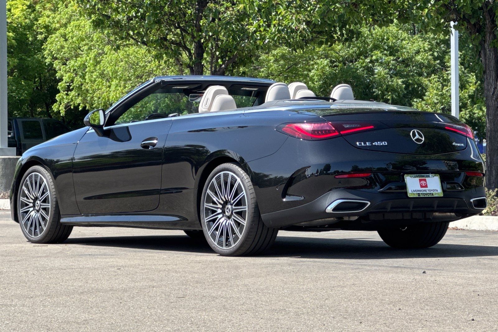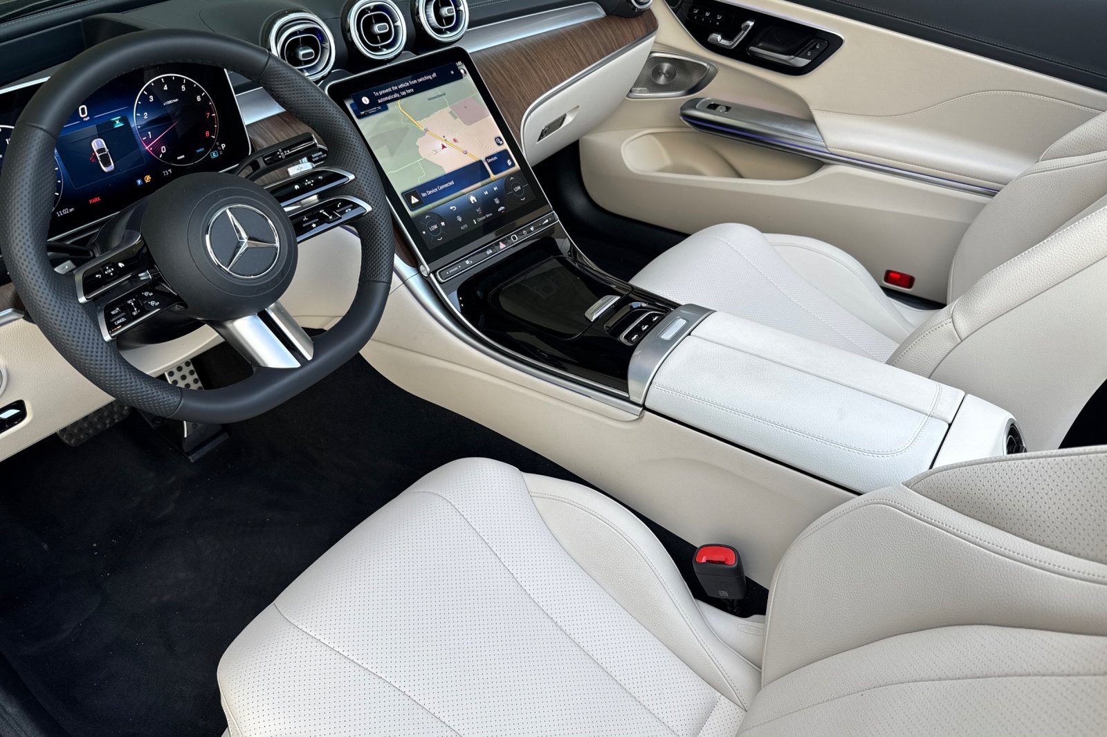 CARFAX One-Owner. Clean CARFAX. Obsidian Black Metallic 2024 Mercedes-Benz CLE CLE 450 4MATIC® 4MATIC® 9-Speed Automatic I6 CARFAX ONE OWNER, NON-SMOKER, Backup Camera, Bluetooth, Moonroof, Alloy Wheels, Aluminum Wheels, Climate Package, Heat Package, Light Package, Power Mirror Package, Power Package, Sunroof/Moonroof, CLE CLE 450 4MATIC®, 2D Convertible, I6, 9-Speed Automatic, 4MATIC®, Obsidian Black Metallic, Macchiato Beige w/MB-Tex Seat Trim, 15 Speakers, 4-Wheel Disc Brakes, ABS brakes, Air Conditioning, Alloy wheels, AM/FM radio: SiriusXM w/360L, Apple CarPlay®/Android Auto®, Auto High-beam Headlights, Auto tilt-away steering wheel, Auto-dimming door mirrors, Auto-dimming Rear-View mirror, Automatic temperature control, Brake assist, Bumpers: body-color, Child-Seat-Sensing Airbag, Compass, Convertible roof lining, Convertible roof wind blocker, Delay-off headlights, DIGITAL LIGHT w/Projections, Driver door bin, Driver vanity mirror, Dual front impact airbags, Dual front side impact airbags, Electronic Stability Control, Emergency communication system: Mercedes-Benz Emergency Call Service, Exterior Parking Camera Rear, Four wheel independent suspension, Front Bucket Seats, Front Center Armrest, Front dual zone A/C, Front reading lights, Front Sport Seats w/Memory, Fully automatic headlights, Garage door transmitter: HomeLink, Glass rear window, GUARD 360 w/Picture Taking Functionality, Head restraints memory, Head-Up Display, Heated door mirrors, Heated Front Seats, Heated front seats, High-Gloss Black Elements, Illuminated entry, Integrated roll-over protection, Knee airbag, Leather steering wheel, Low tire pressure warning, MB-Tex Seat Trim, MBUX Augmented Reality for Navigation, MBUX Entertainment Plus, Memory seat, Navigation system: MBUX, Night Package, Occupant sensing airbag, Outside temperature display, Overhead airbag, Overhead console, Panic alarm, Parking Package w/360 Camera, Passenger door bin, Passenger vanity mirror, Pinnacle Trim, Power adjustable front head restraints, Power convertible roof, Power door mirrors, Power driver seat, Power passenger seat, Power steering, Power windows, Radio data system, Radio: 3rd Generation MBUX Multimedia System, Rain sensing wipers, Rear fog lights, Rear window defroster, Remote keyless entry, Security system, SiriusXM Satellite Radio, Speed control, Speed-sensing steering, Split folding rear seat, Sport steering wheel, Steering wheel memory, Steering wheel mounted audio controls, Tachometer, Telescoping steering wheel, Tilt steering wheel, Traction control, Trip computer, Turn signal indicator mirrors, Variably intermittent wipers, Wheels: 19" AMG® Multispoke w/Black Accents.